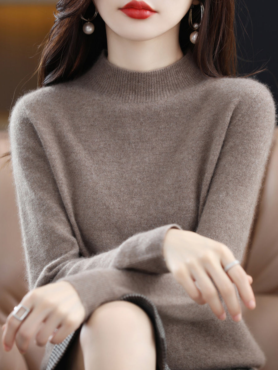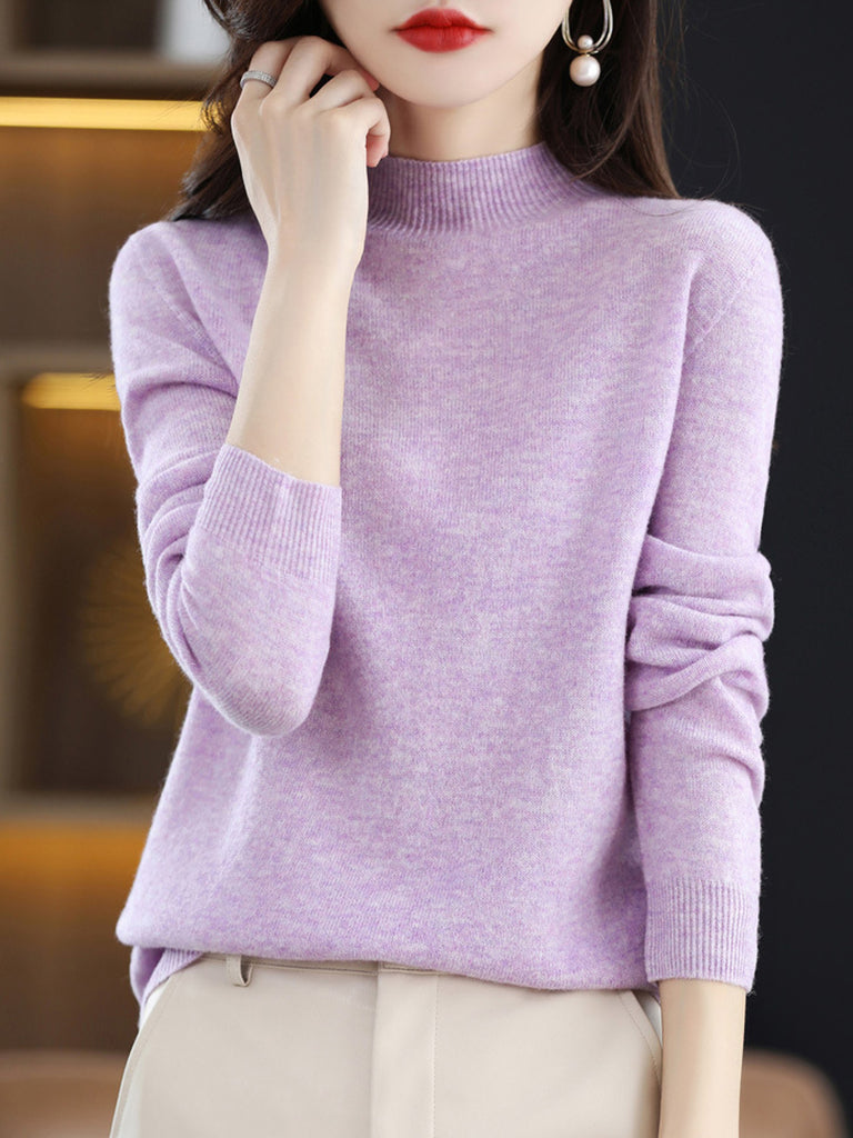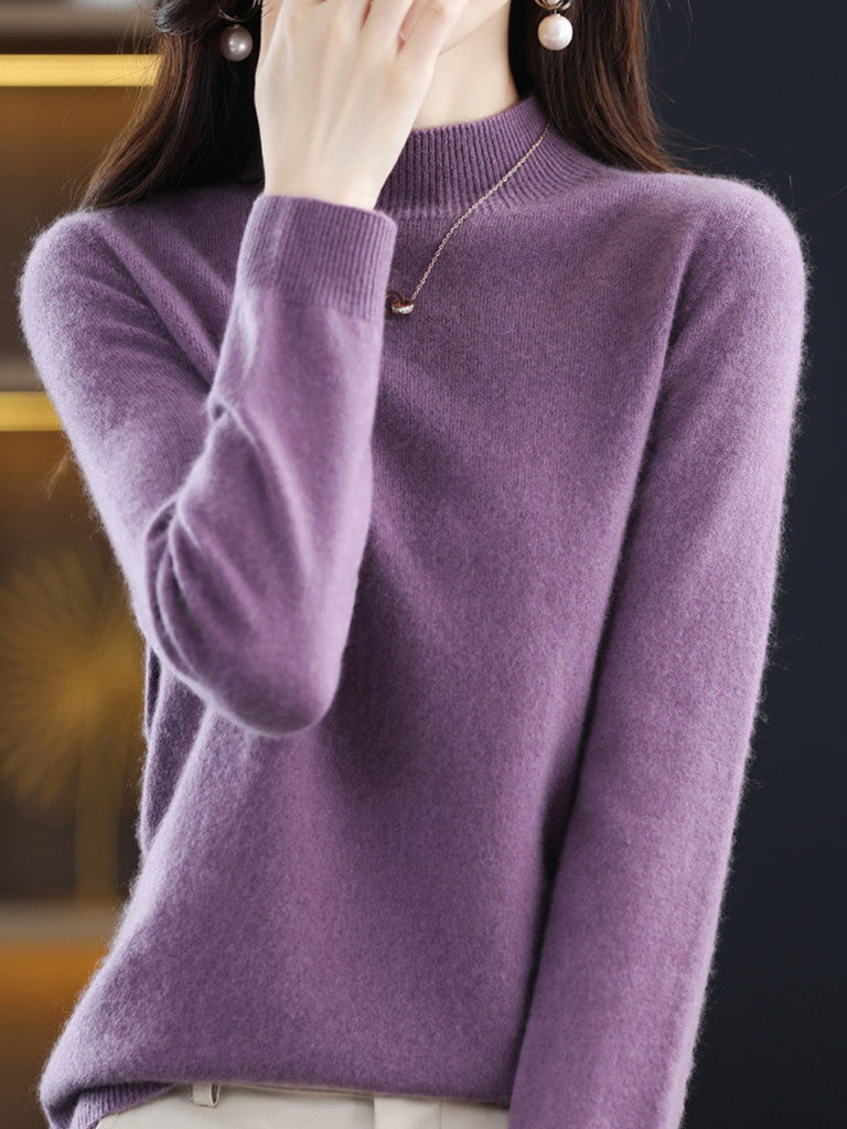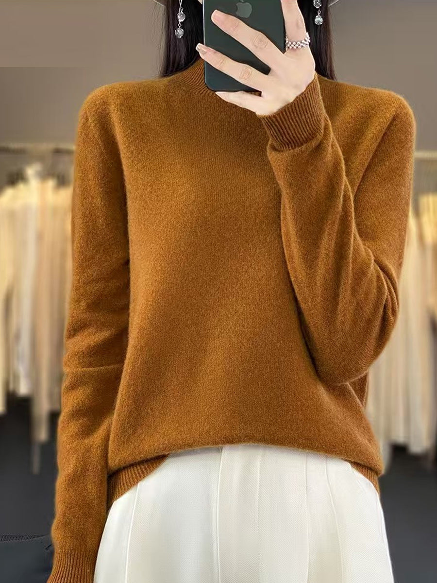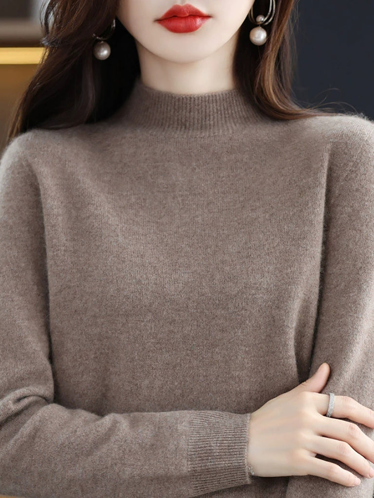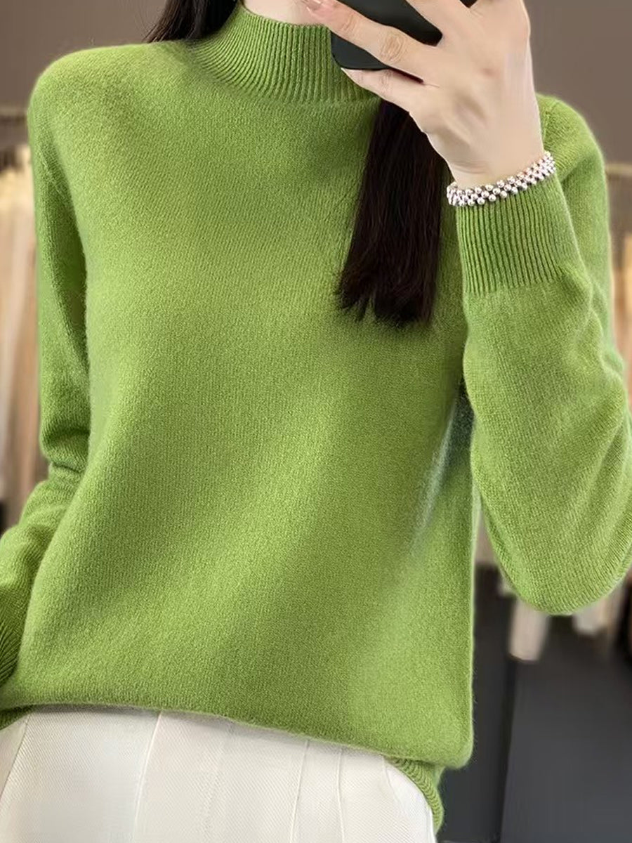 Suéter de cuello alto de color liso para mujer, estilo casual de invierno