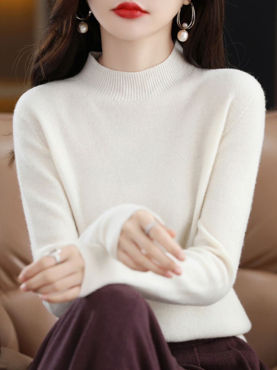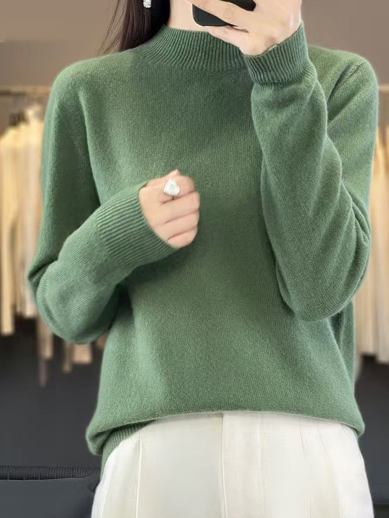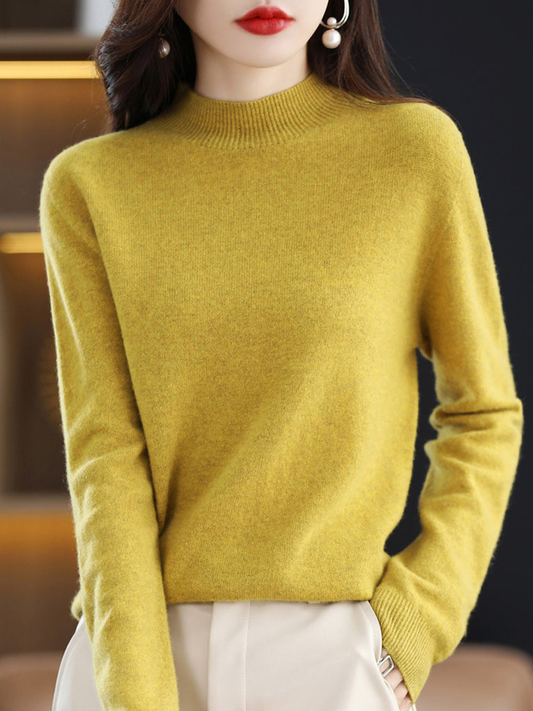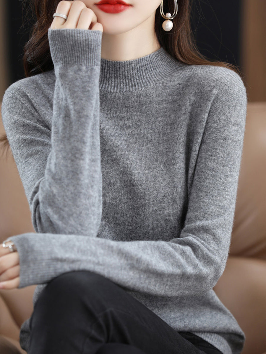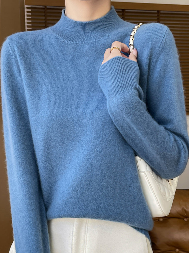 Suéter de cuello alto de color liso para mujer, estilo casual de invierno