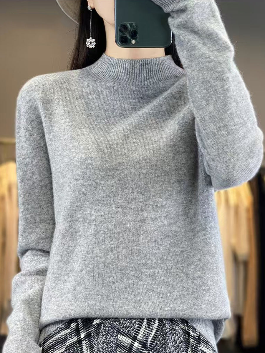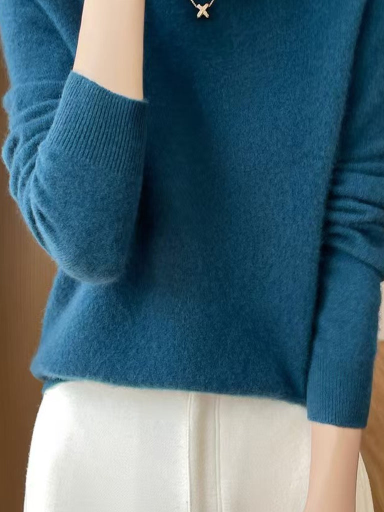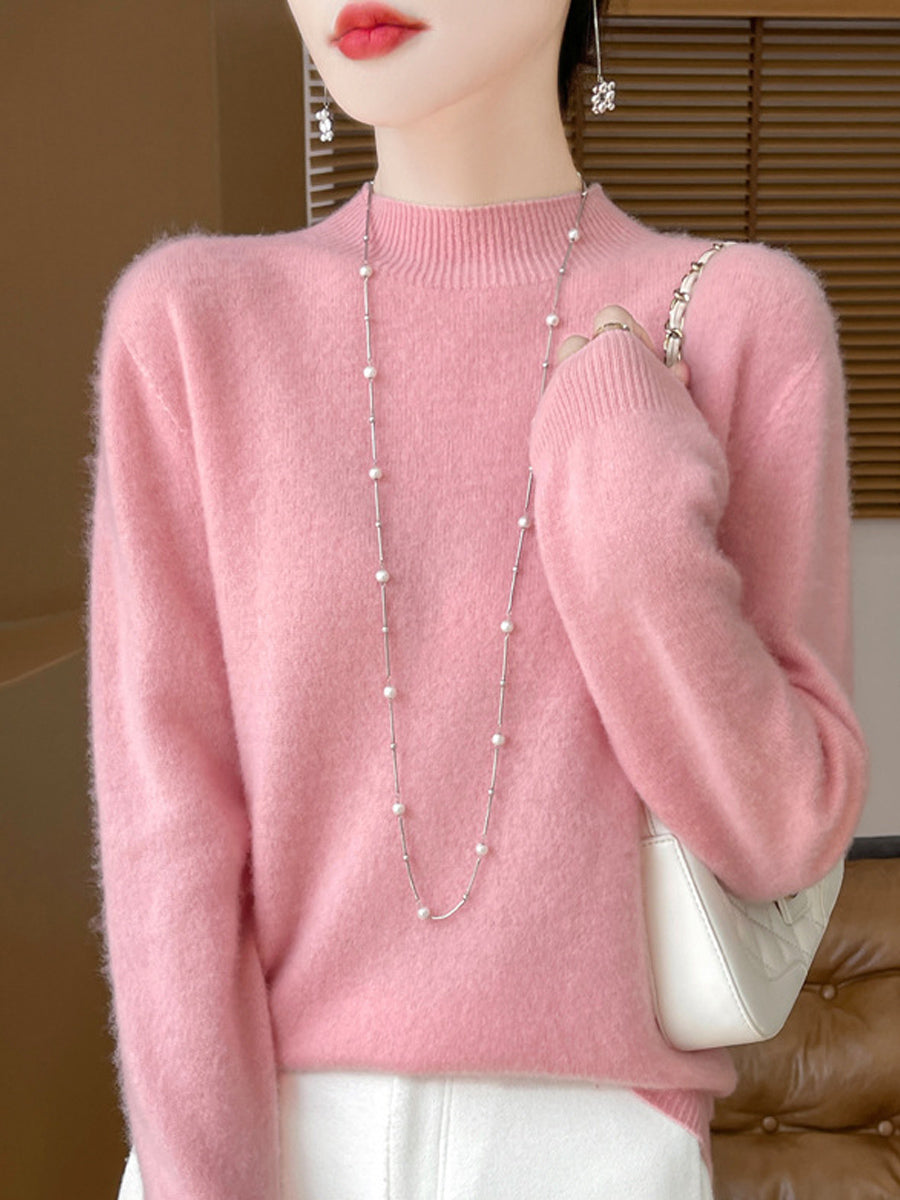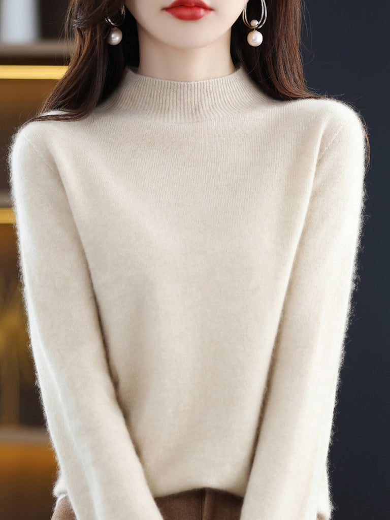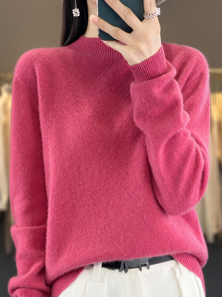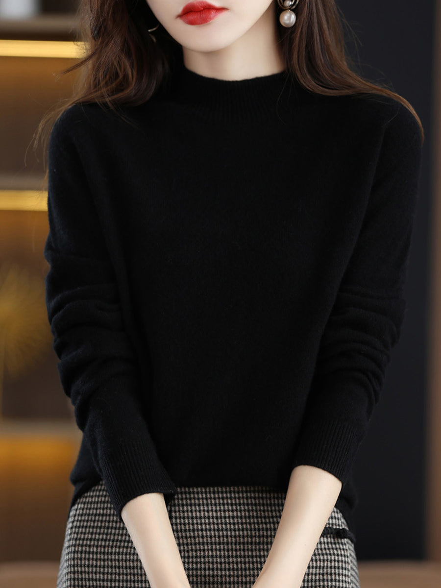 Suéter de cuello alto de color liso para mujer, estilo casual de invierno