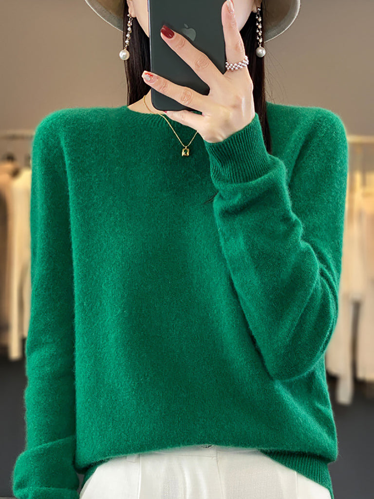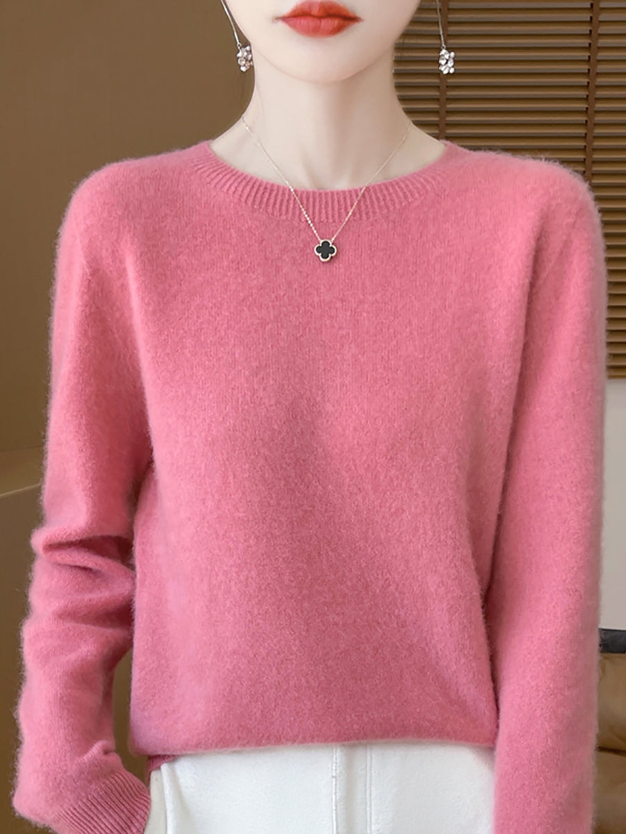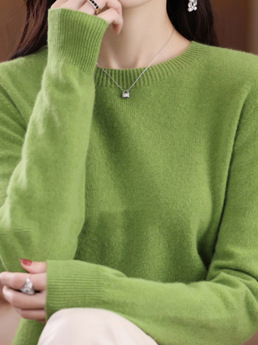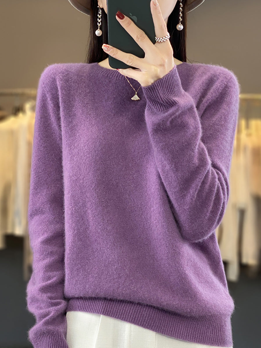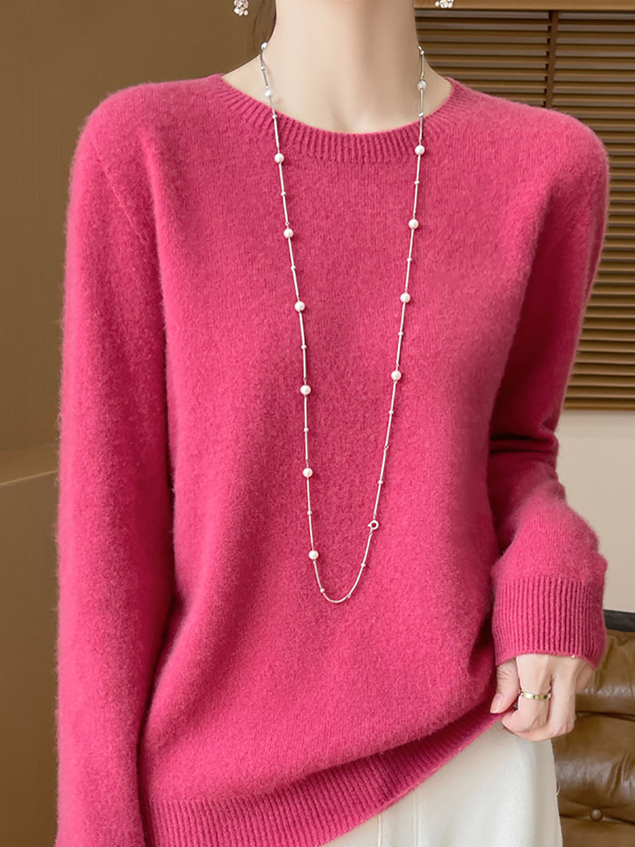 Suéter de lana con cuello redondo de color puro para mujer de invierno