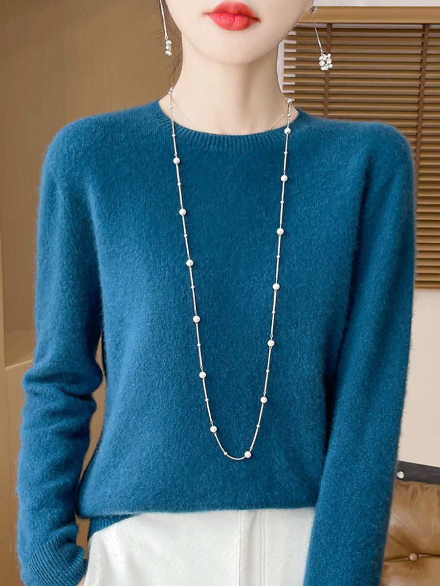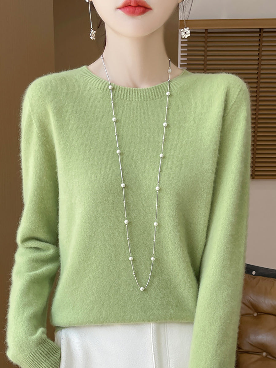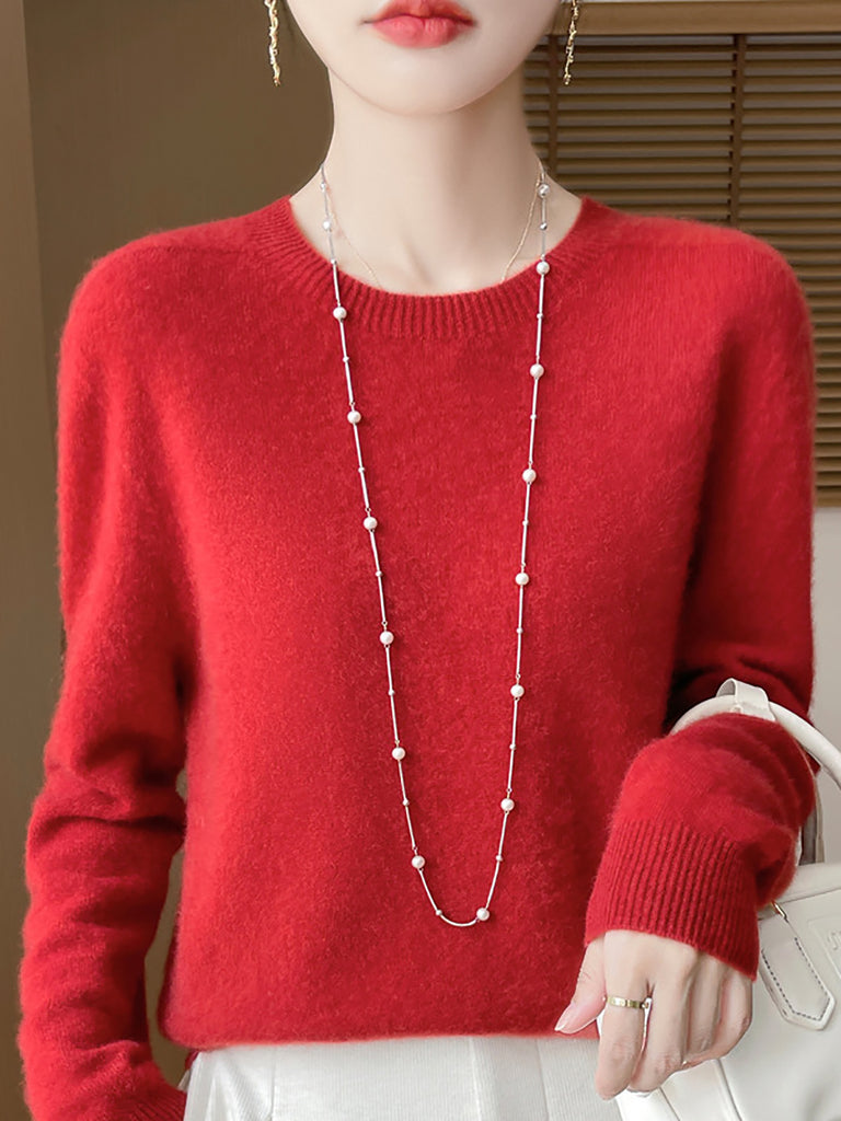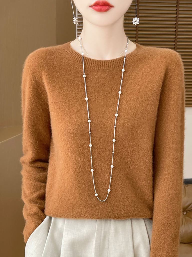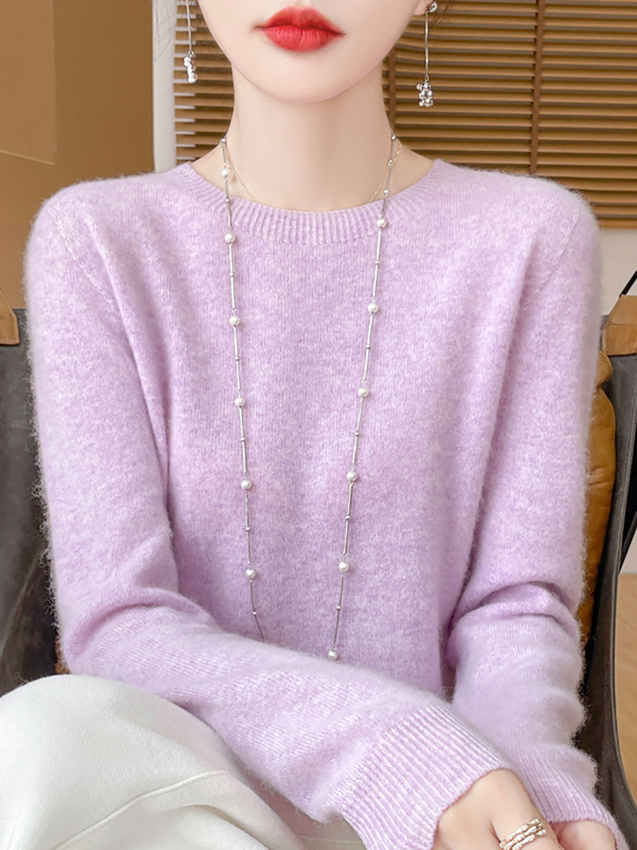 Suéter de lana con cuello redondo de color puro para mujer de invierno
