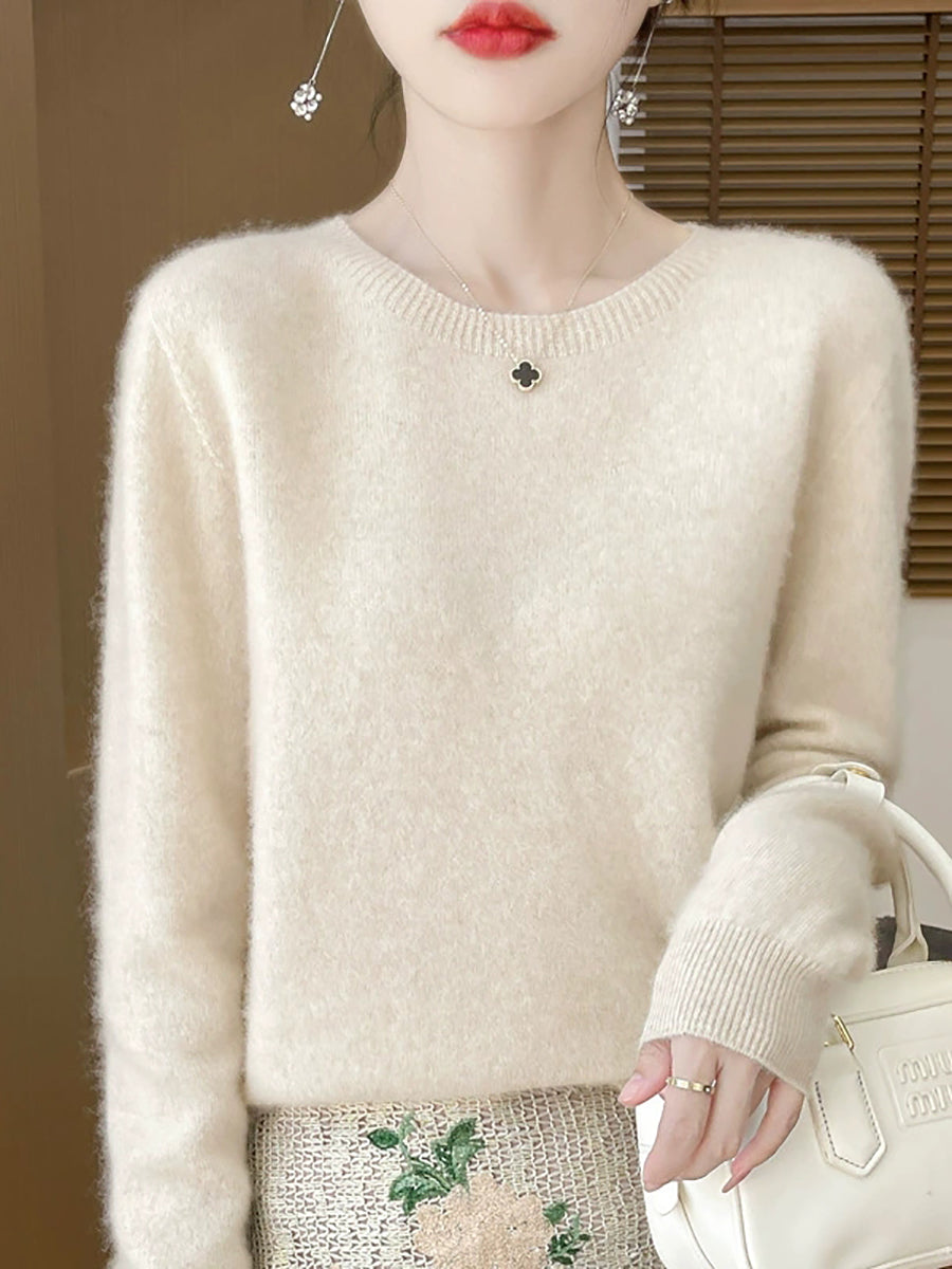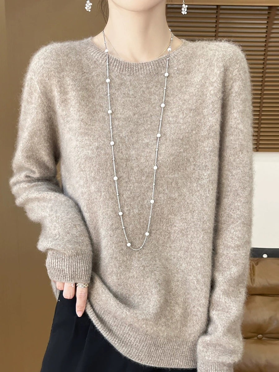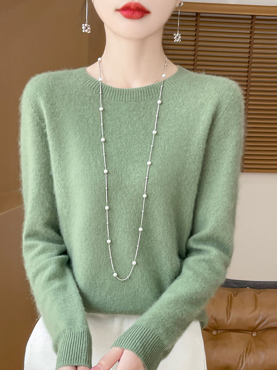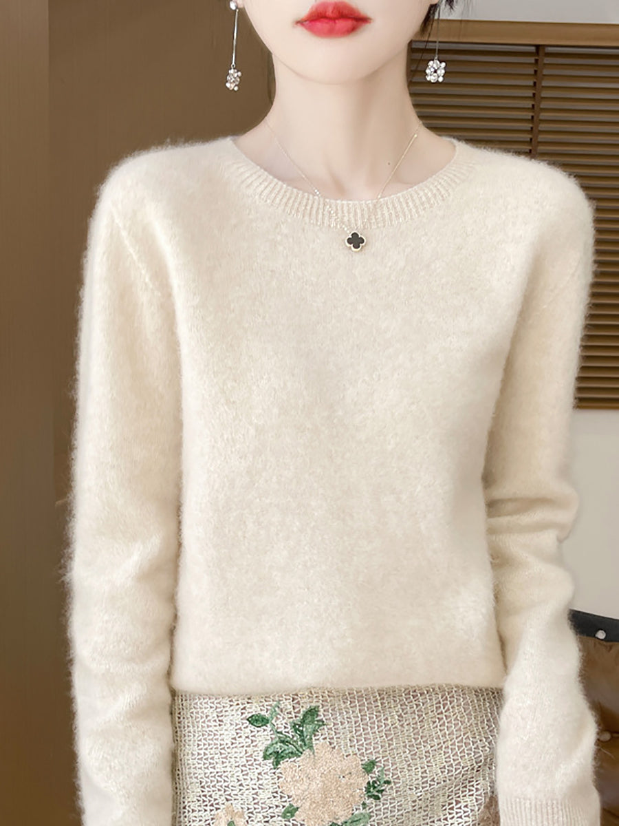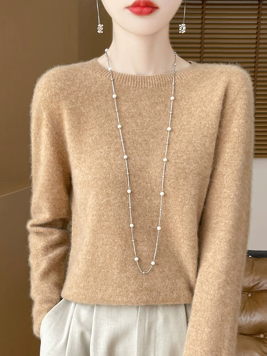 Suéter de lana con cuello redondo de color puro para mujer de invierno