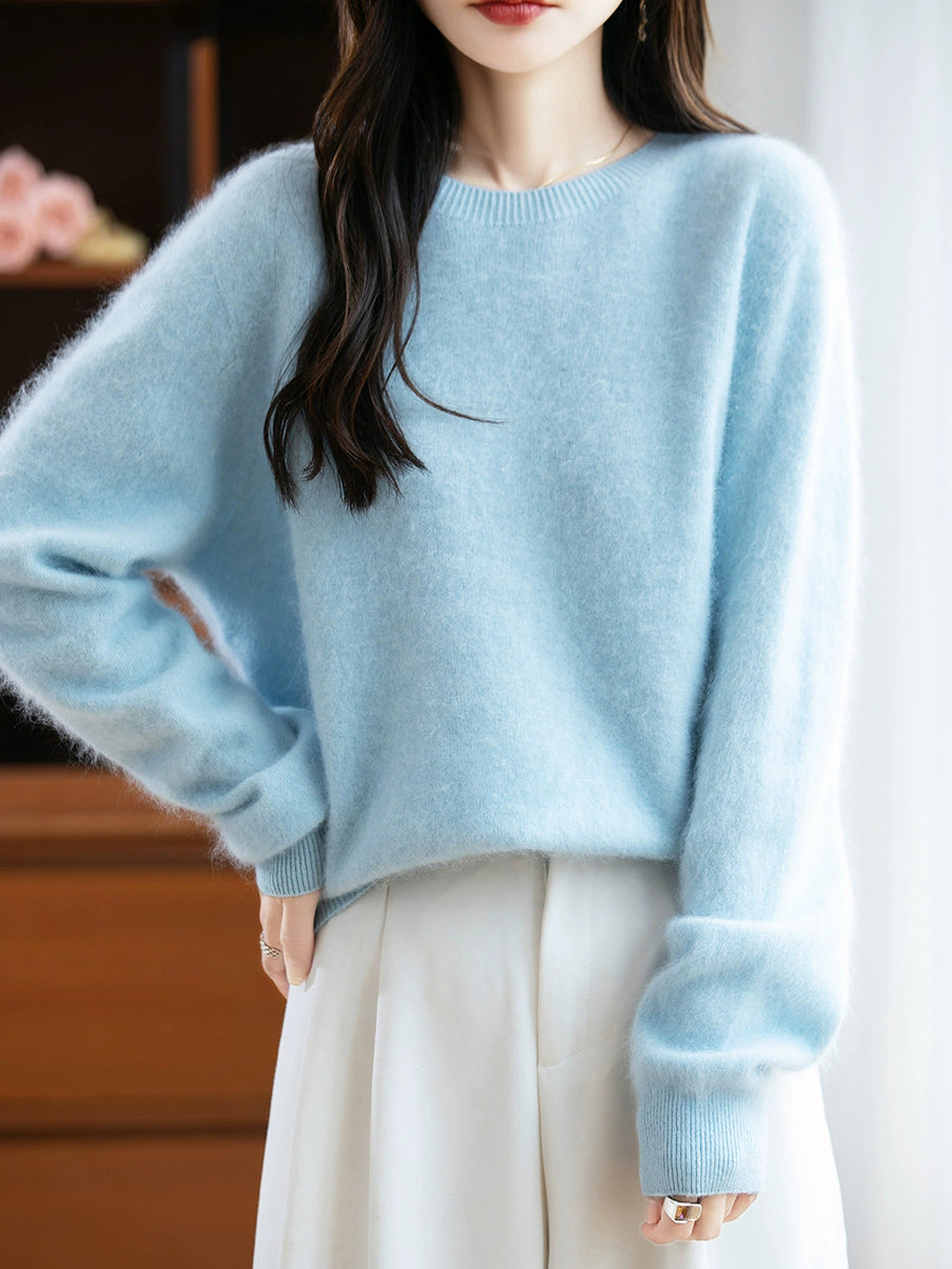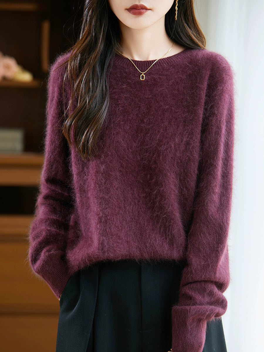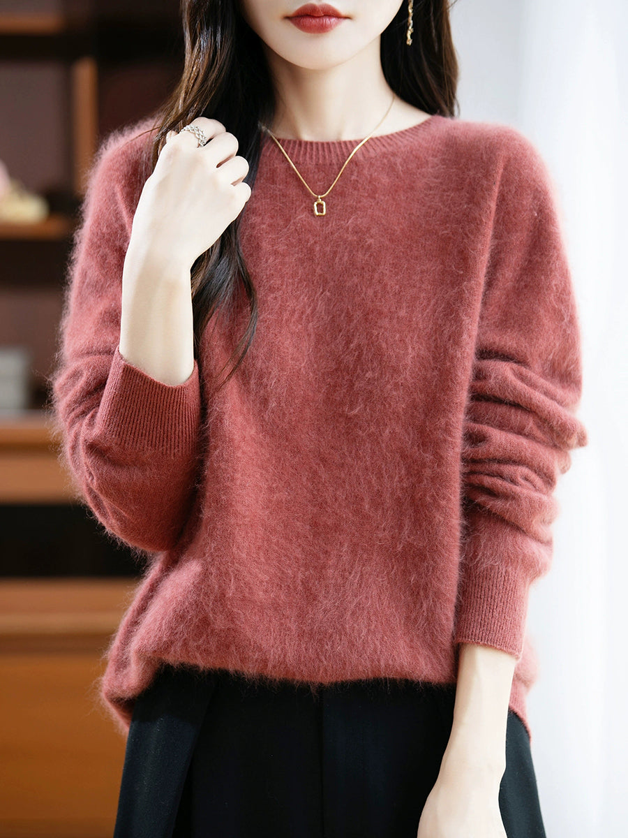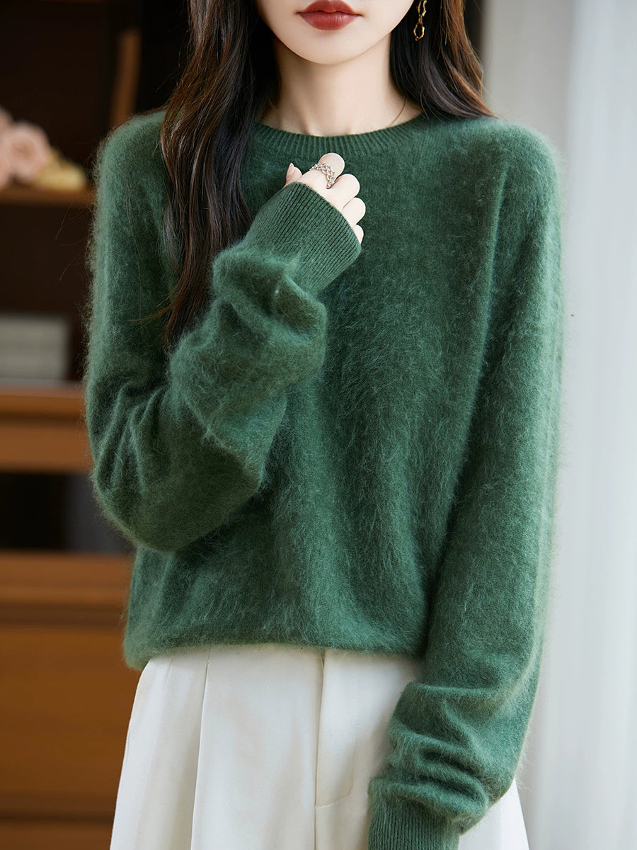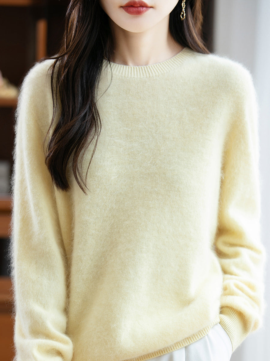 Suéter de lana con cuello redondo de color puro para mujer de invierno