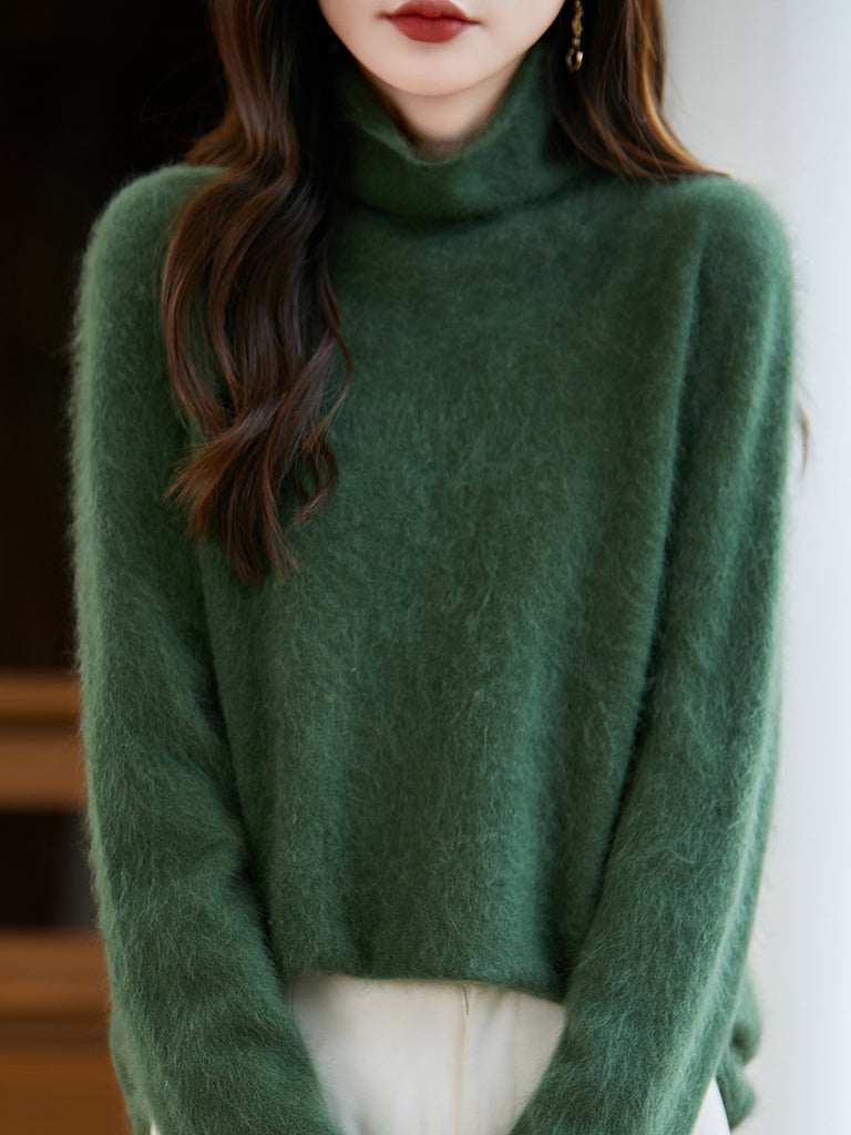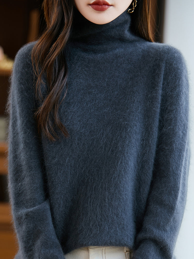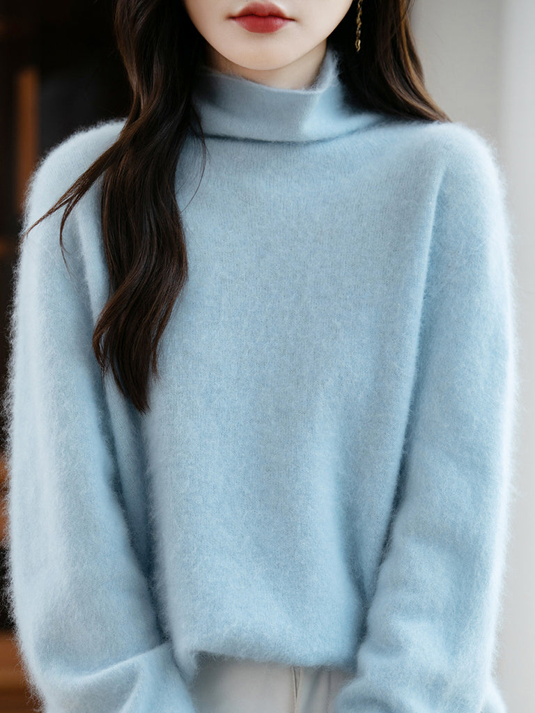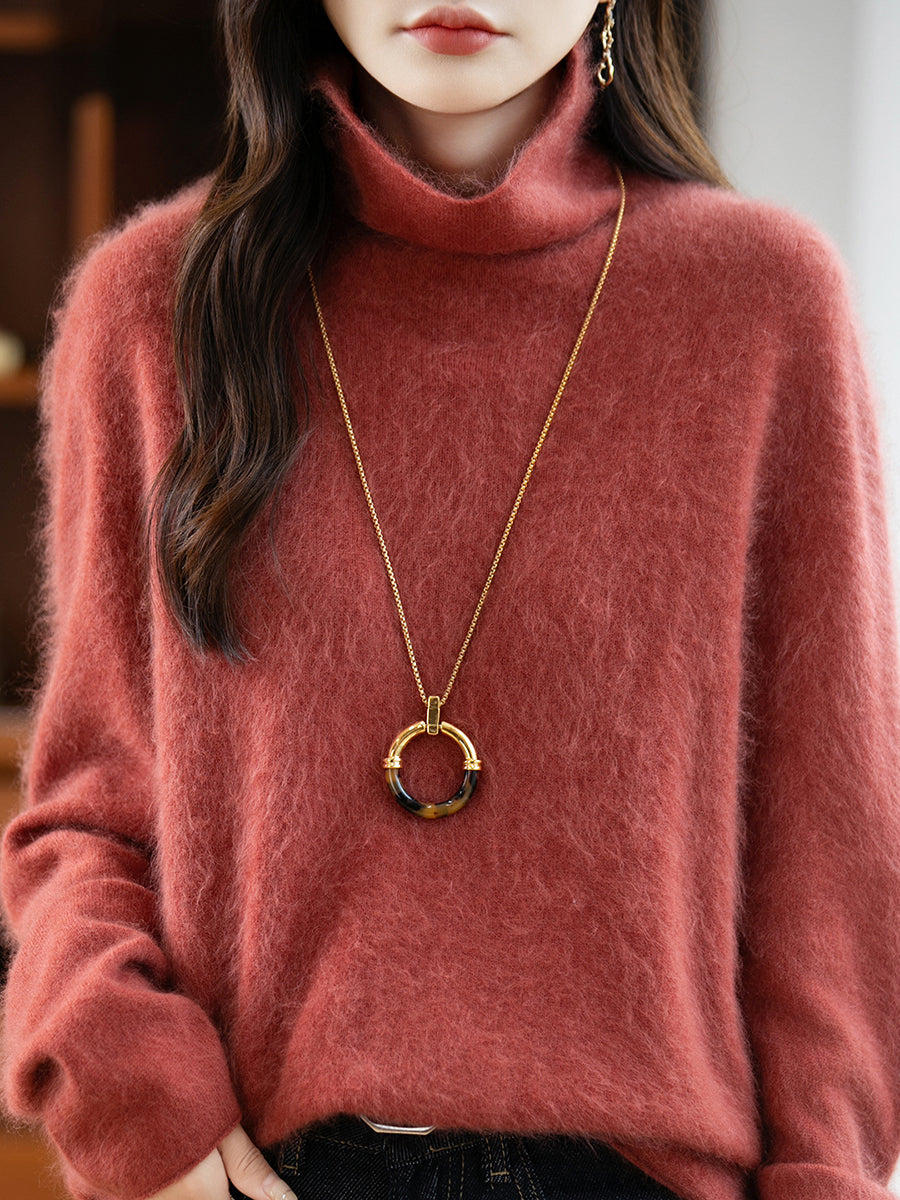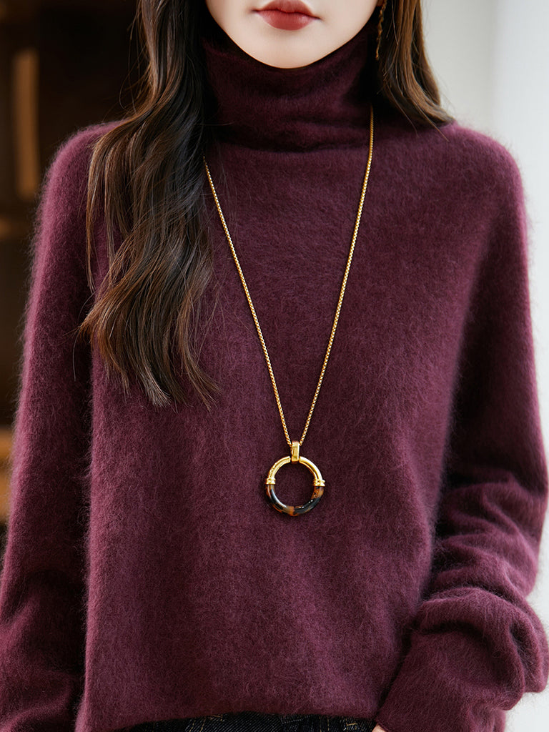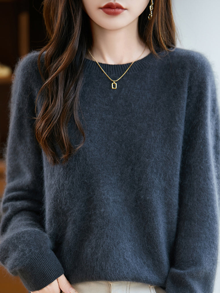Suéter de lana con cuello redondo de color puro para mujer de invierno