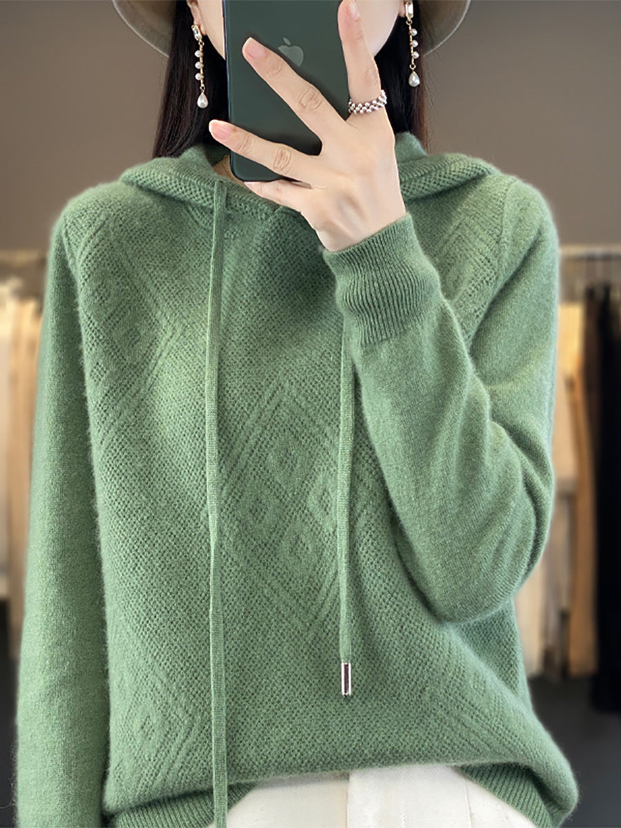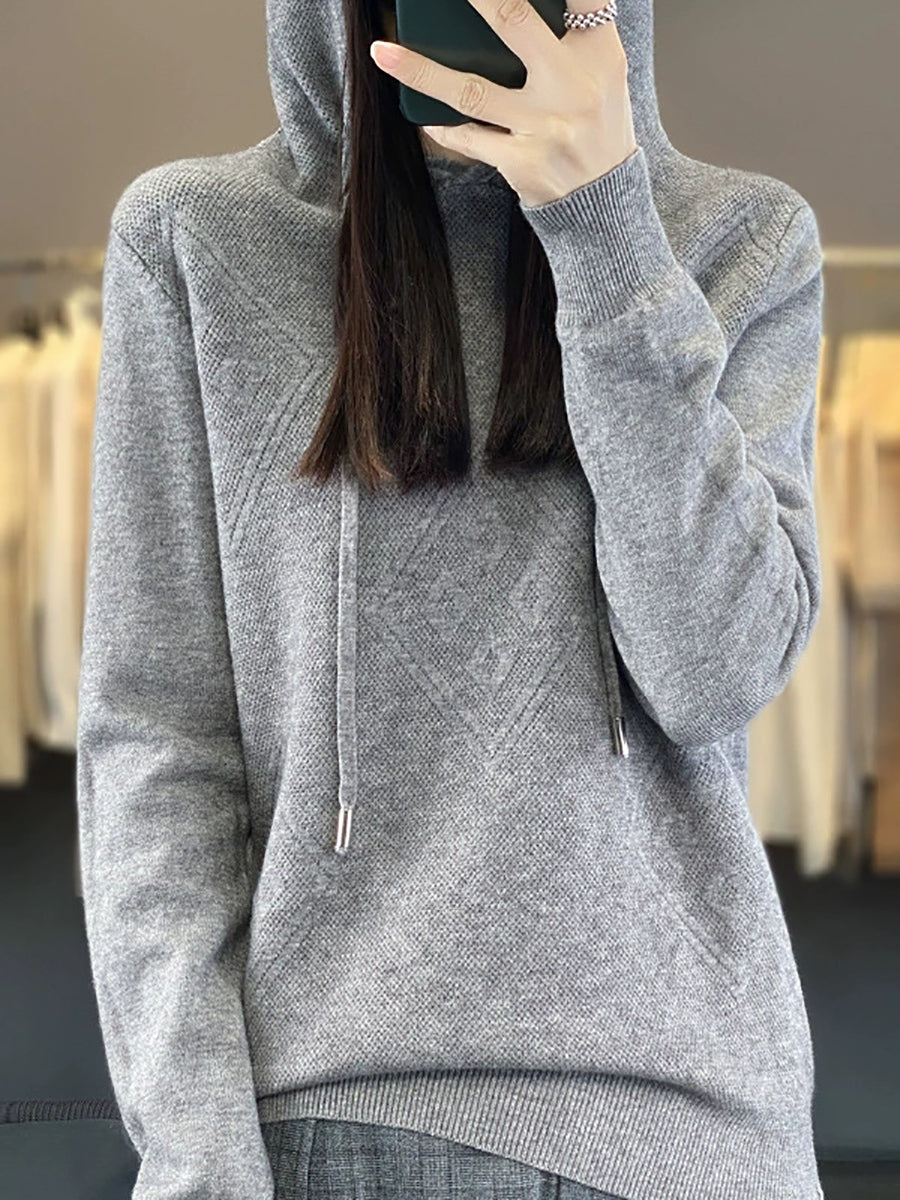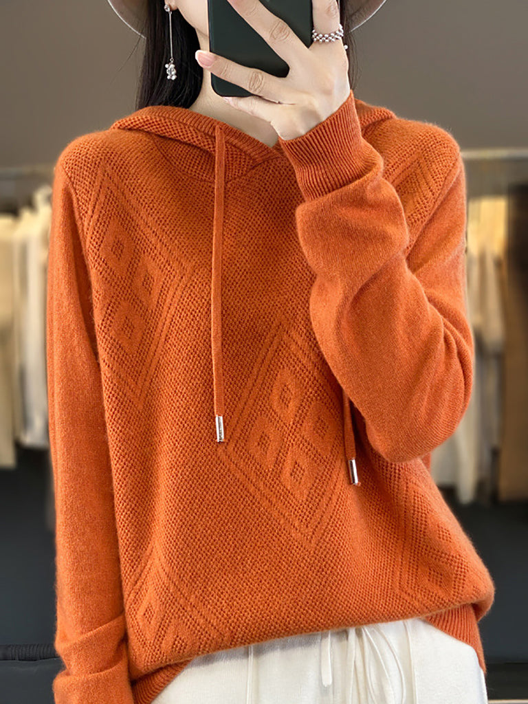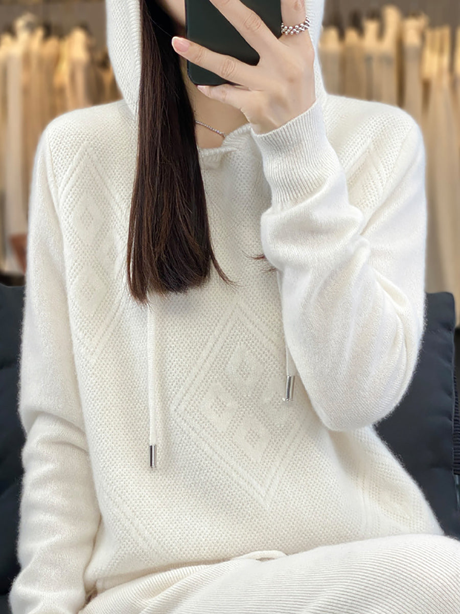 Suéter de lana de punto con capucha y romboides de invierno para mujer