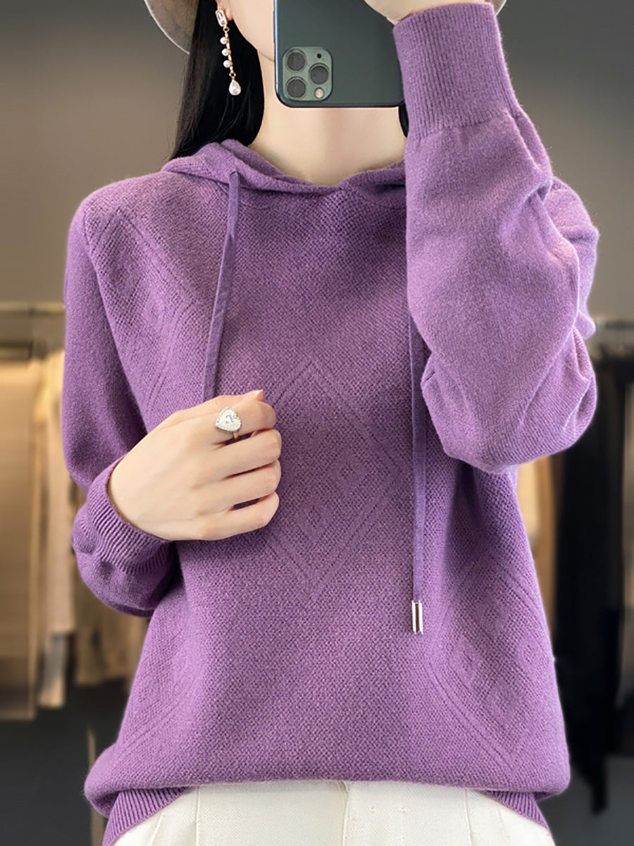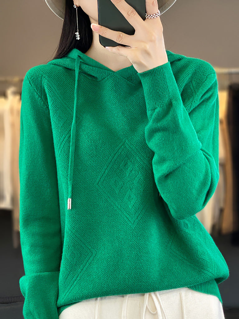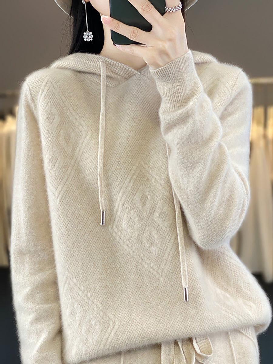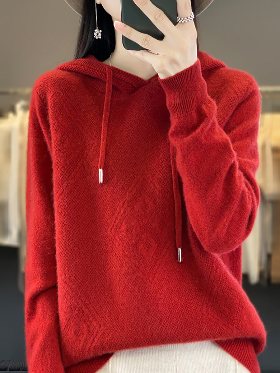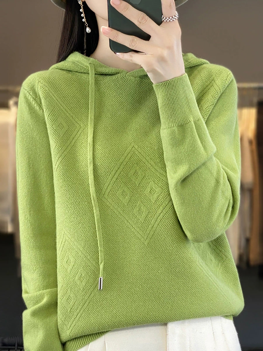 Suéter de lana de punto con capucha y romboides de invierno para mujer
