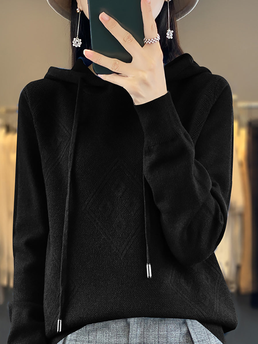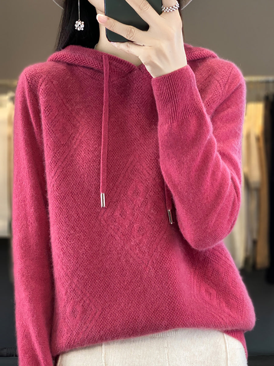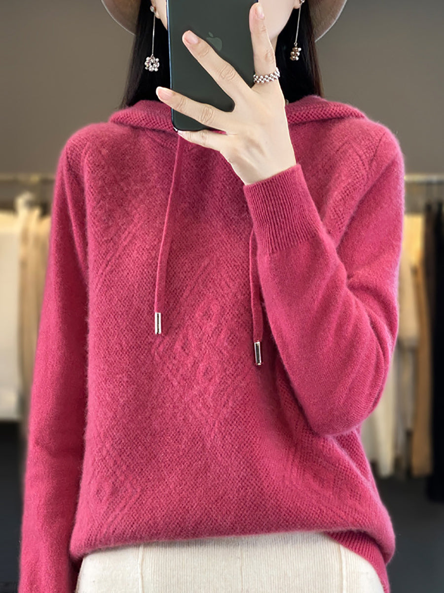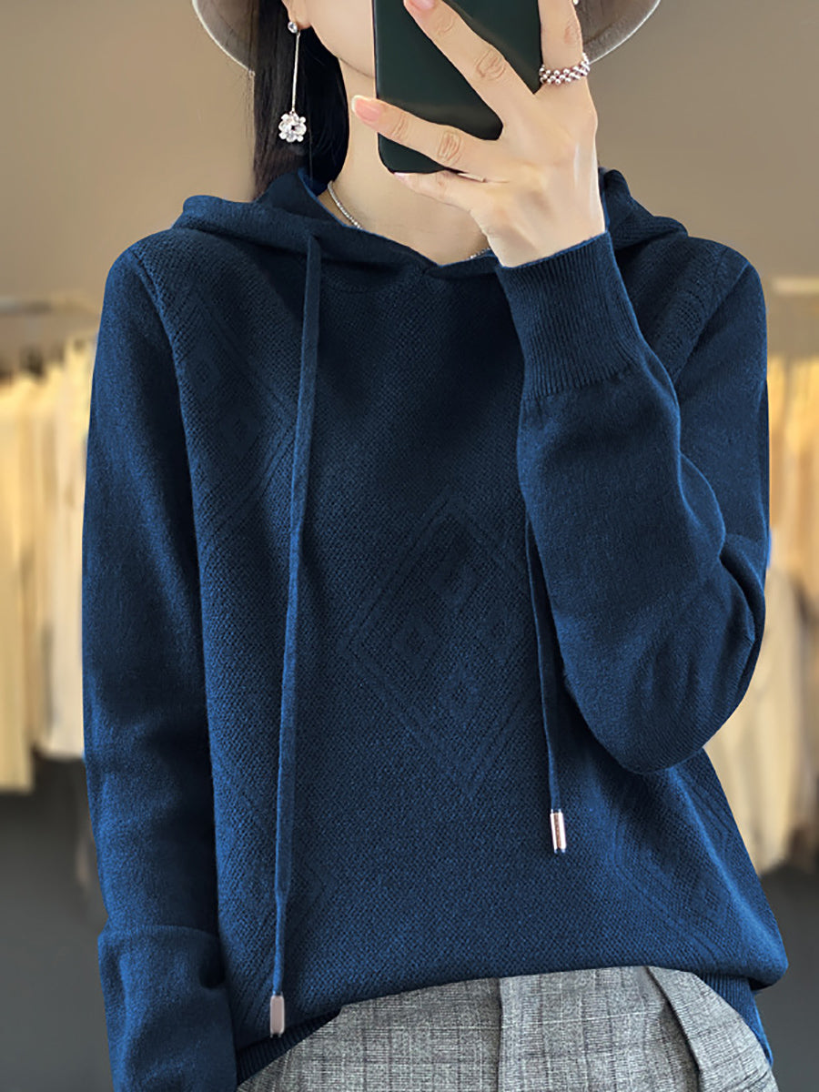 Suéter de lana de punto con capucha y romboides de invierno para mujer