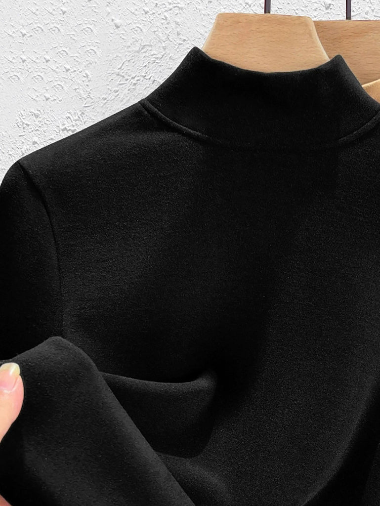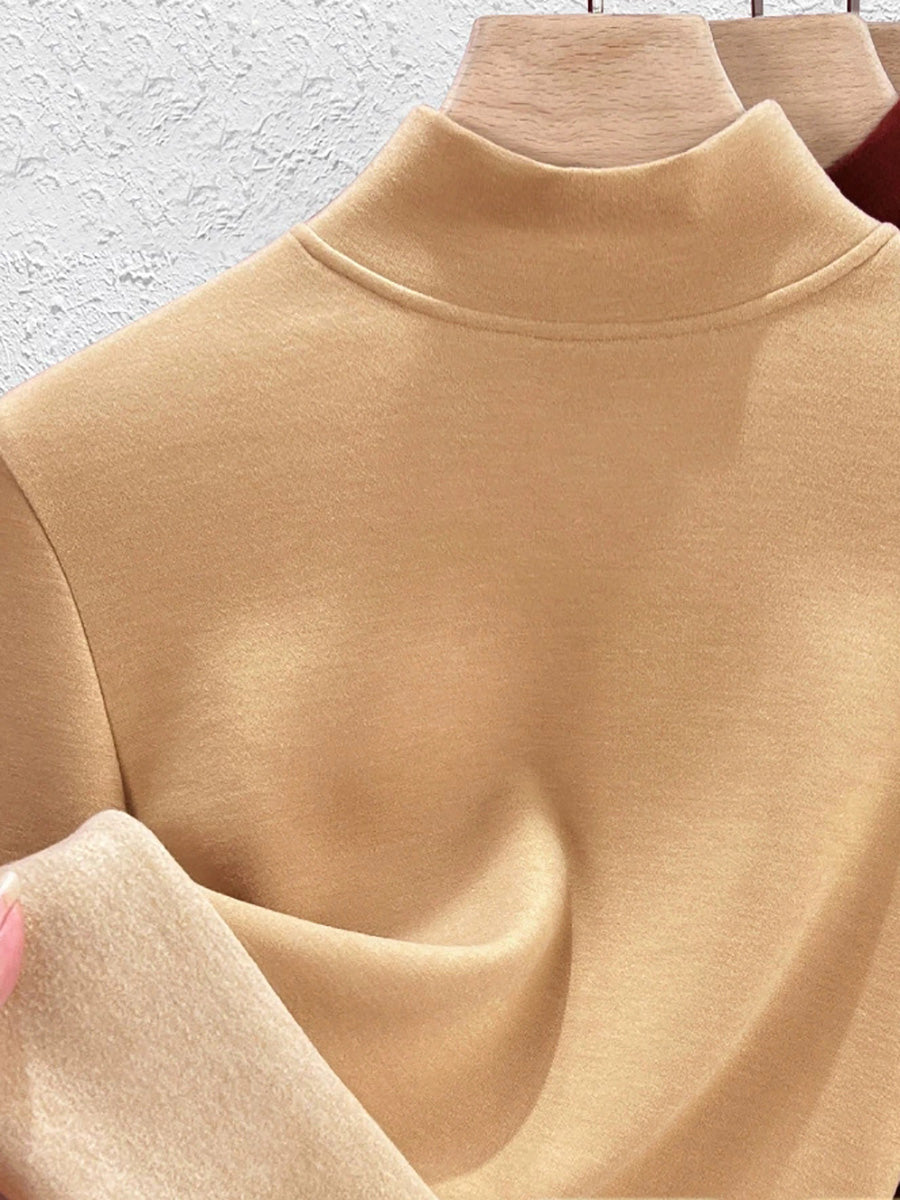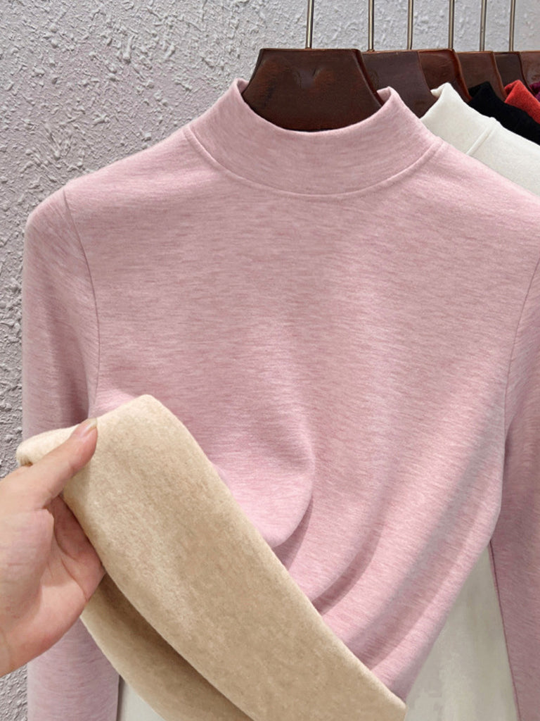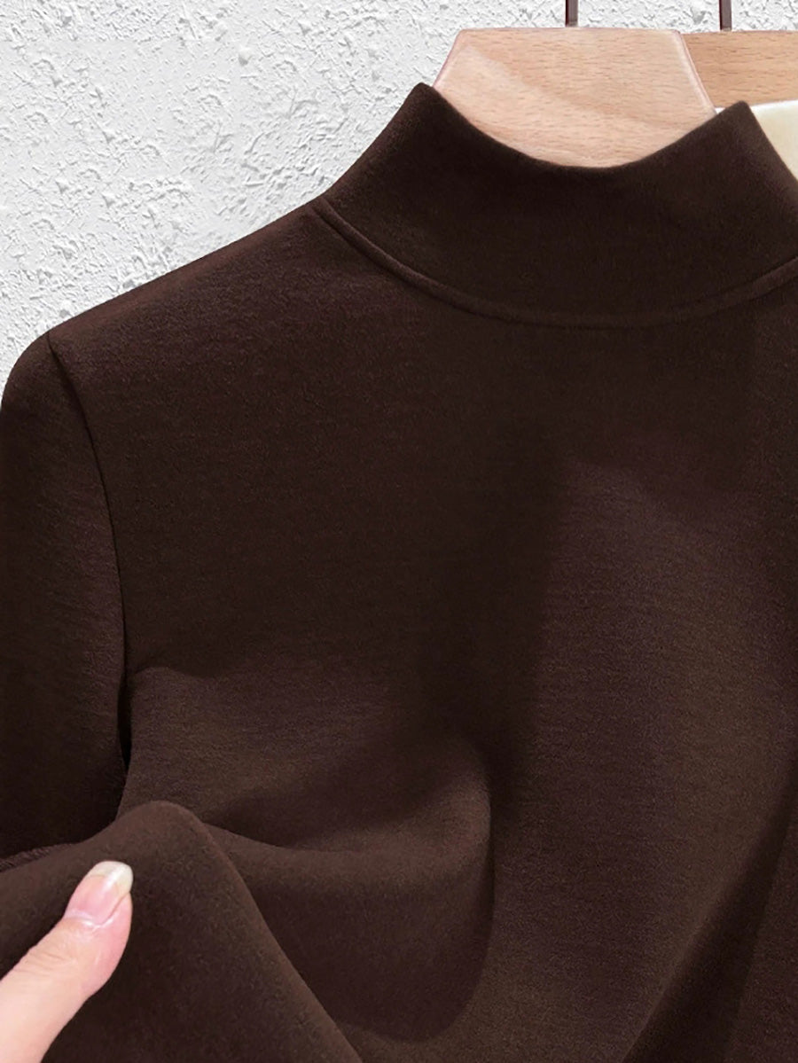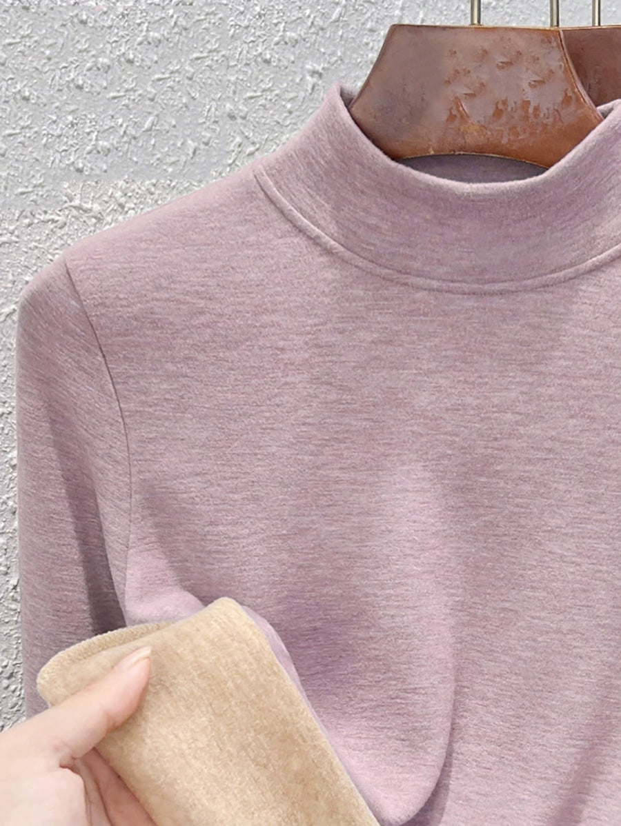 Blusa básica de cuello alto con forro polar para mujer, estilo casual de otoño.
