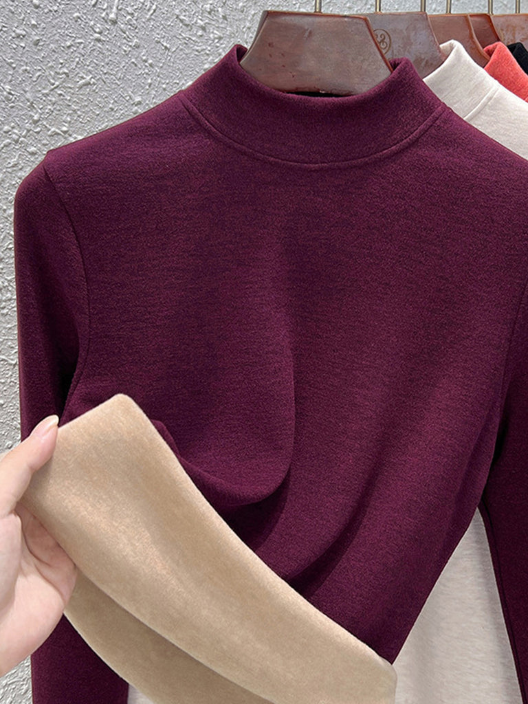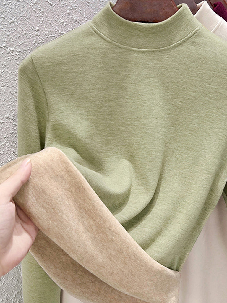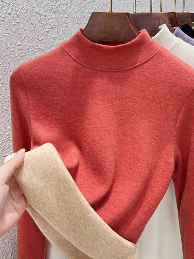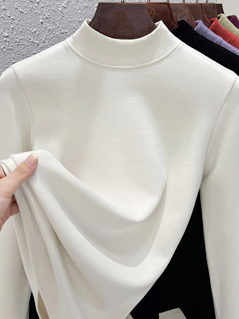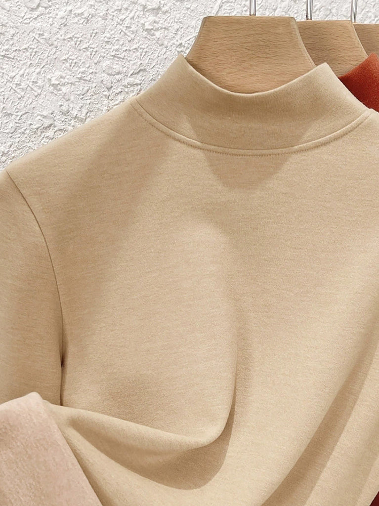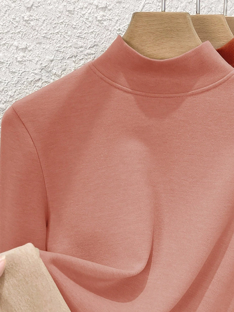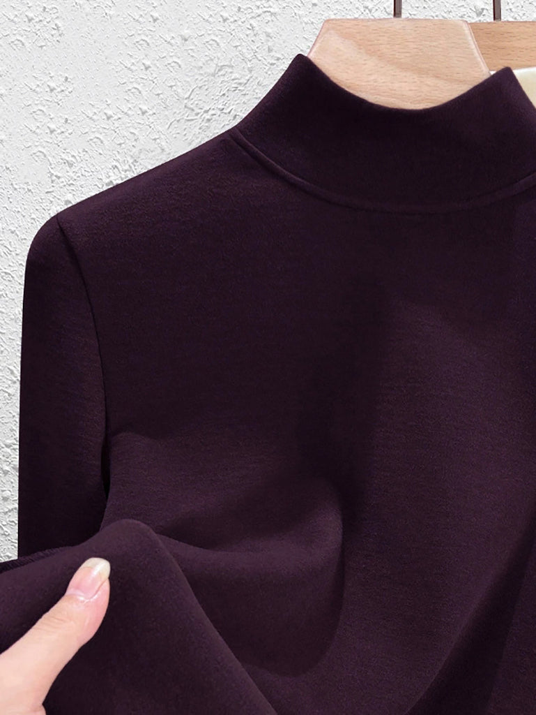 Blusa básica de cuello alto con forro polar para mujer, estilo casual de otoño.
