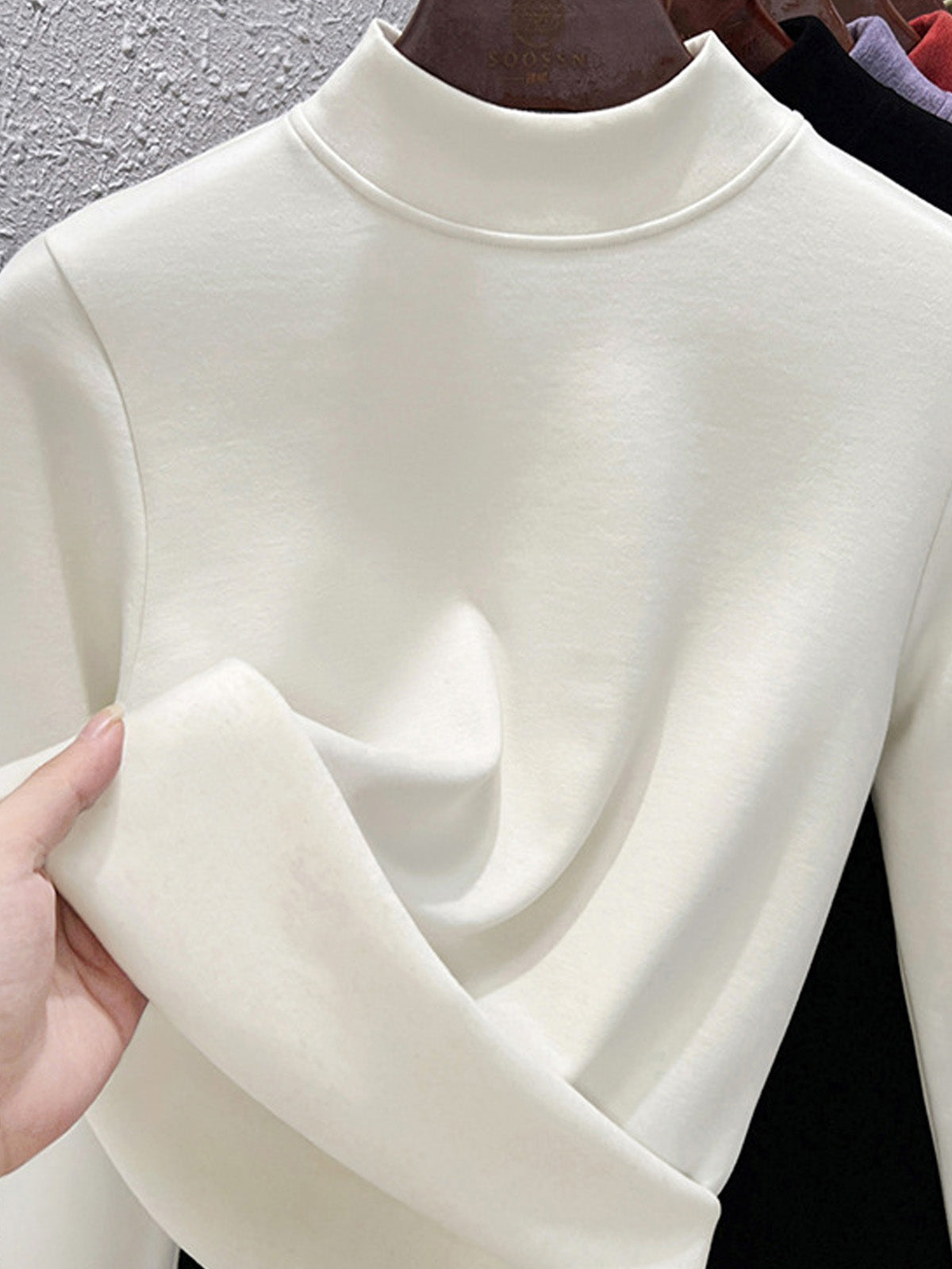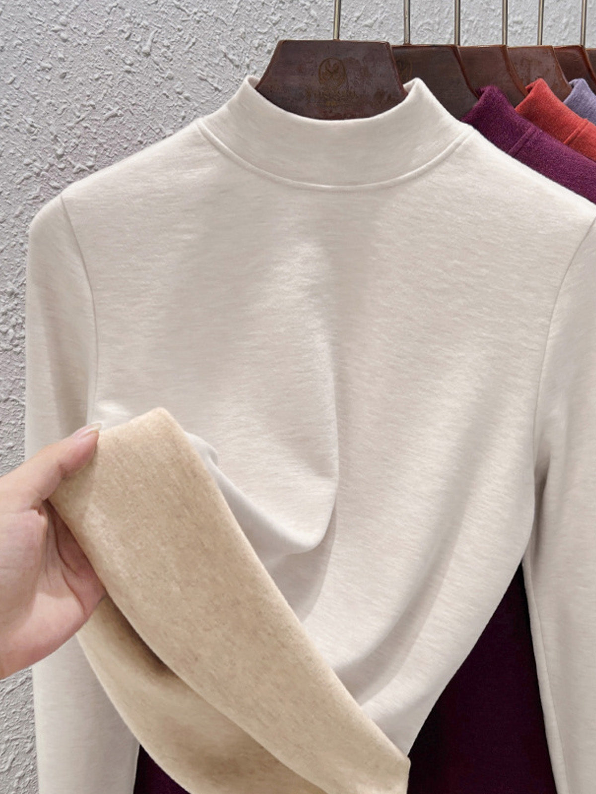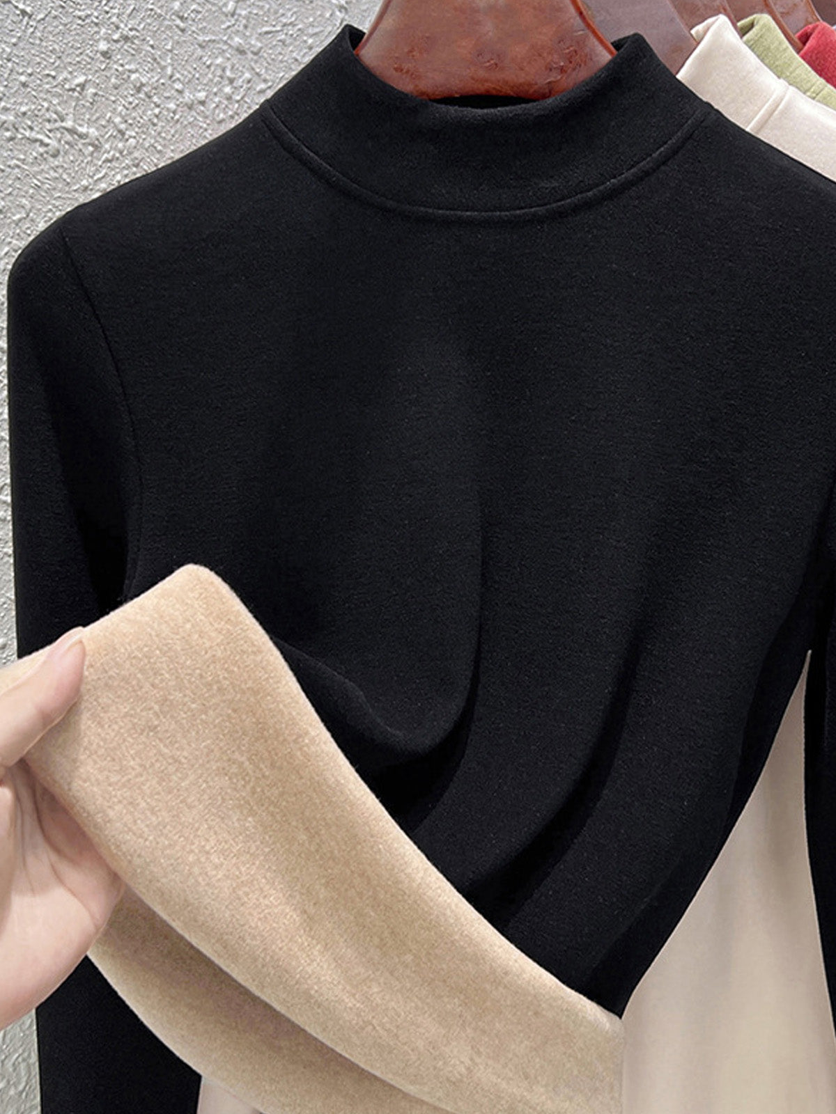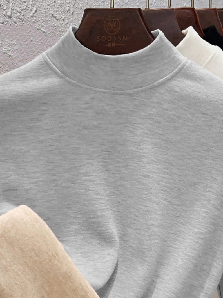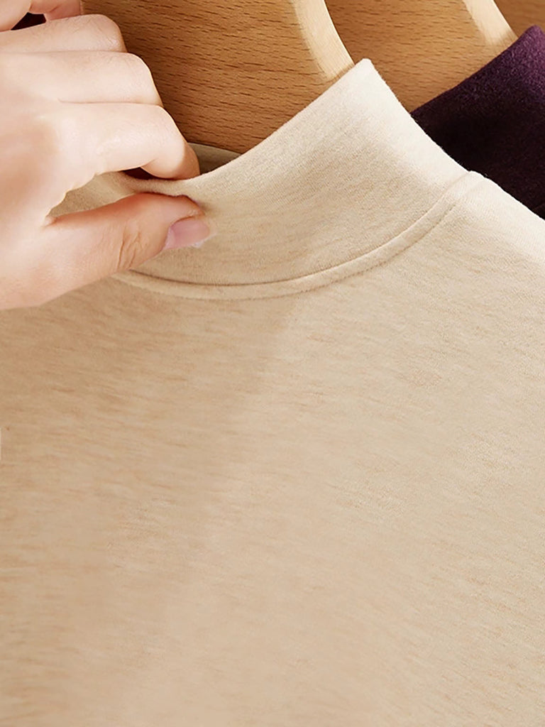 Blusa básica de cuello alto con forro polar para mujer, estilo casual de otoño.