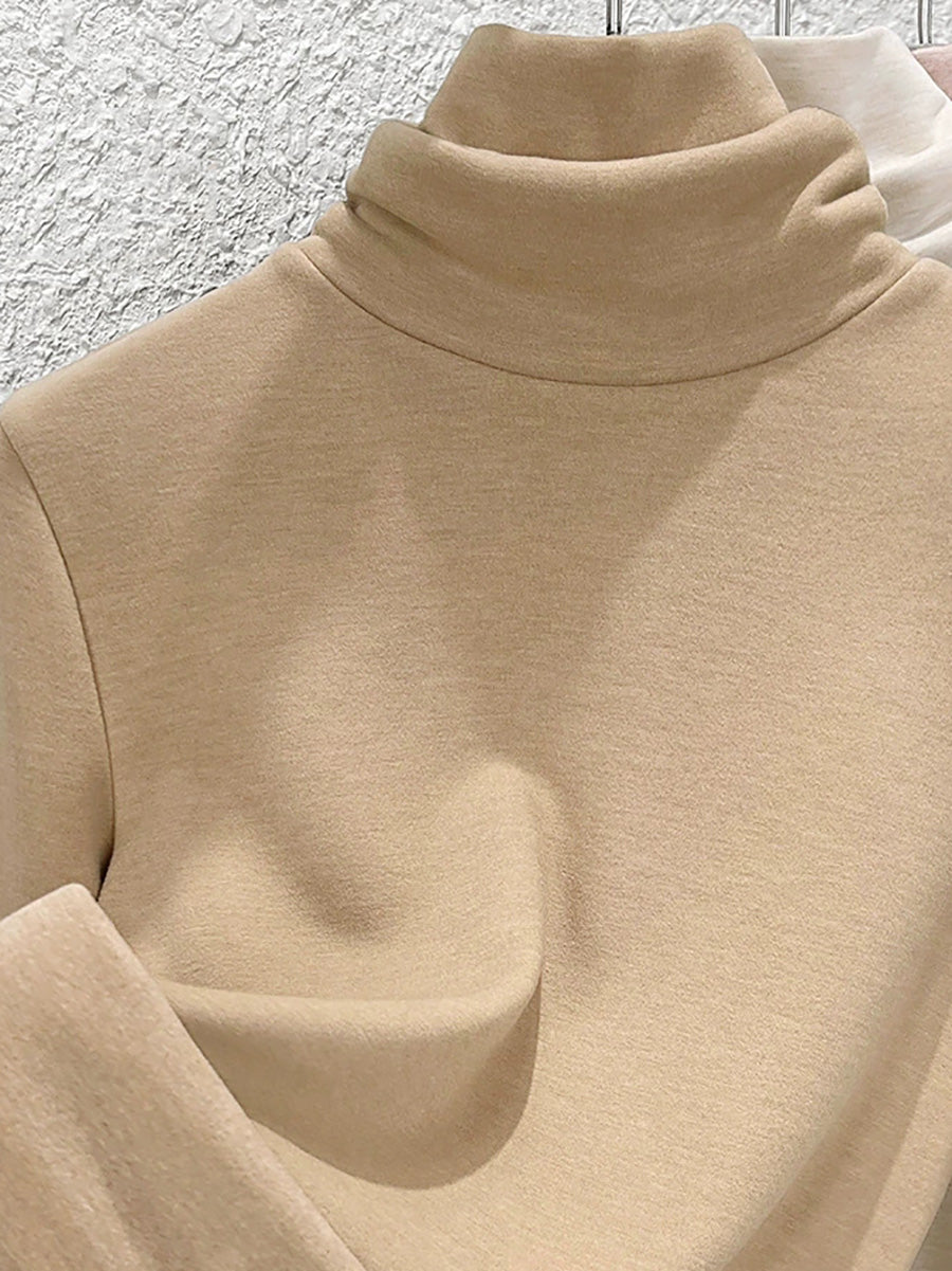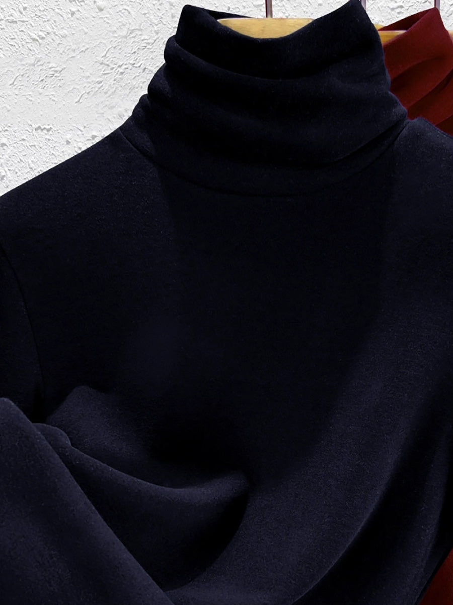 Blusa básica de cuello alto de color liso para mujer, estilo casual de invierno.