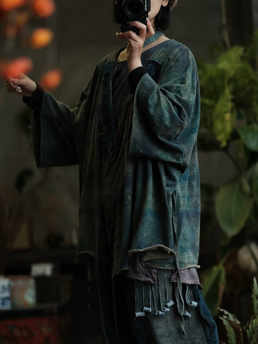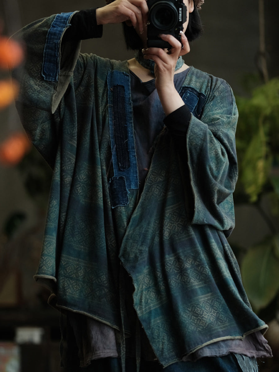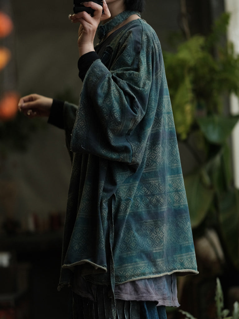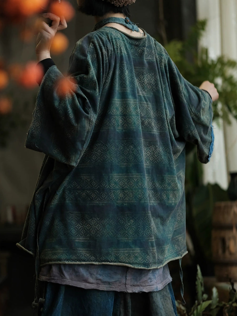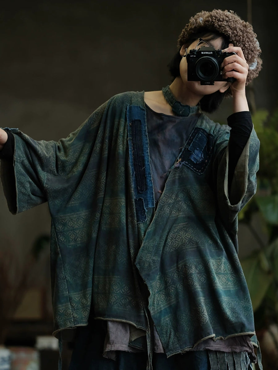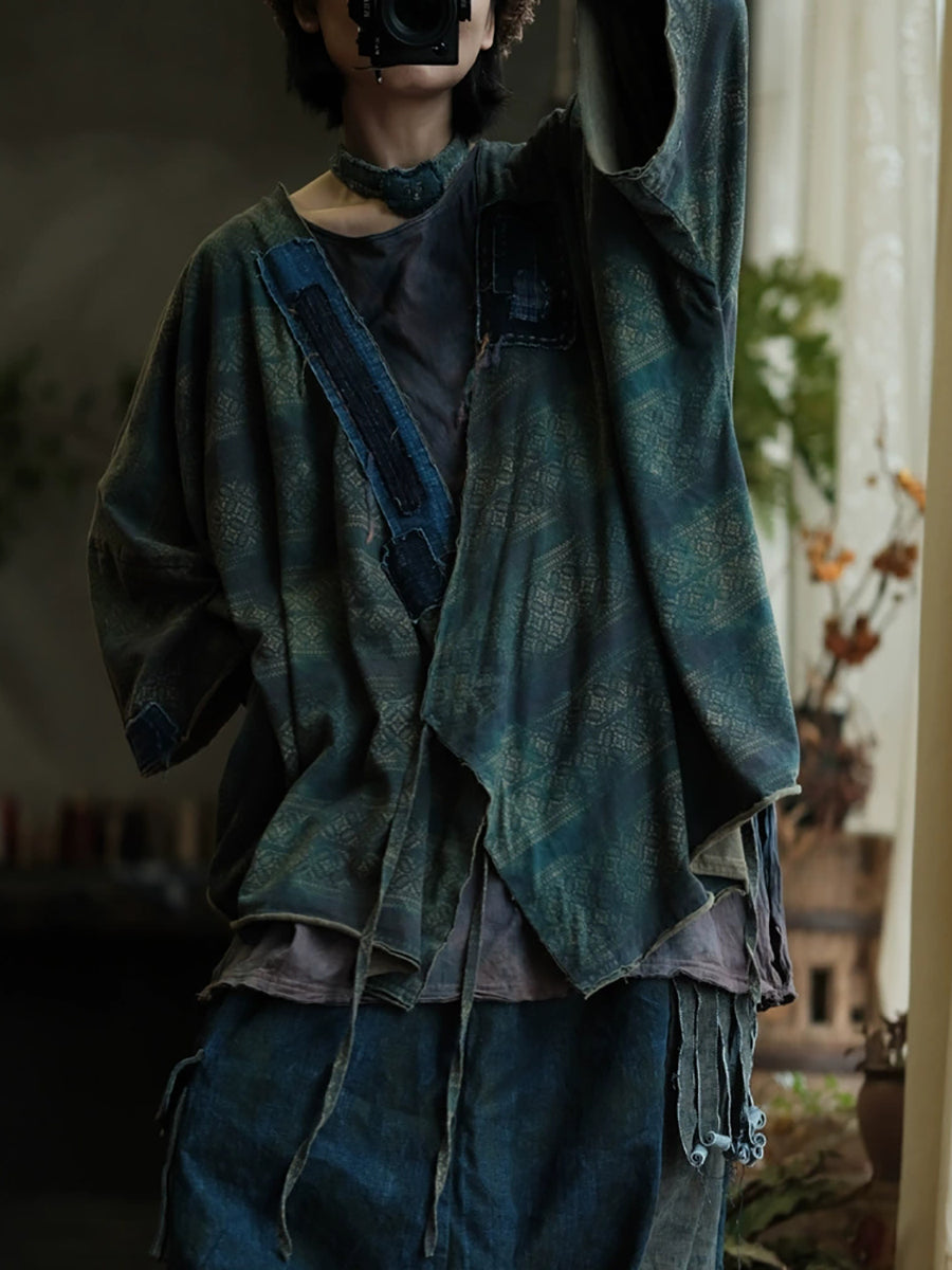 Camisa de algodón con cuello en V y estampado retro de verano para mujer