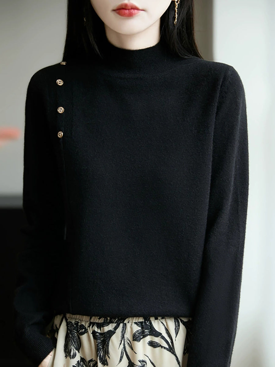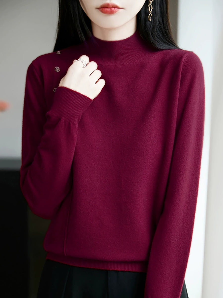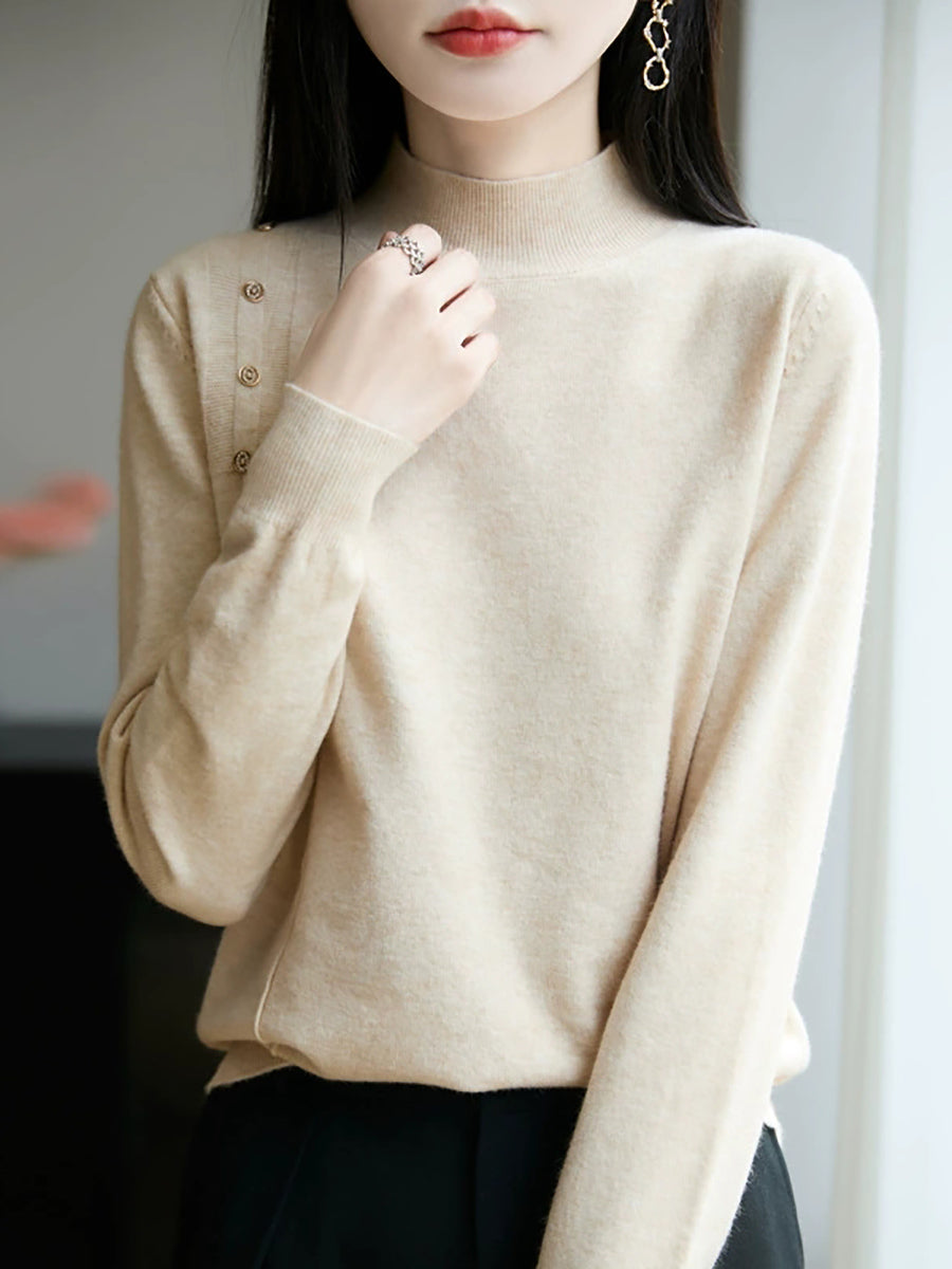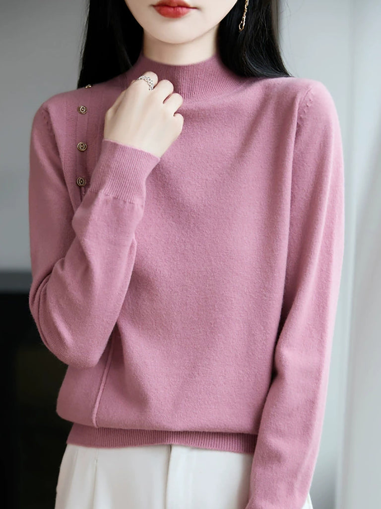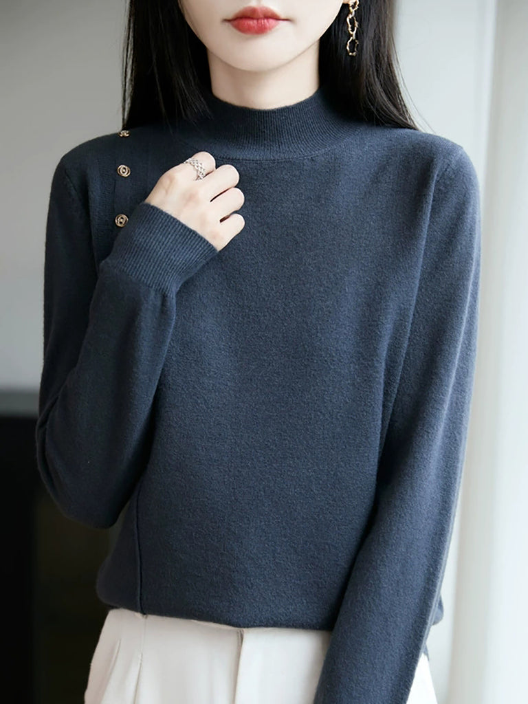 Blusa de cuello alto de color liso para mujer, estilo casual de invierno.