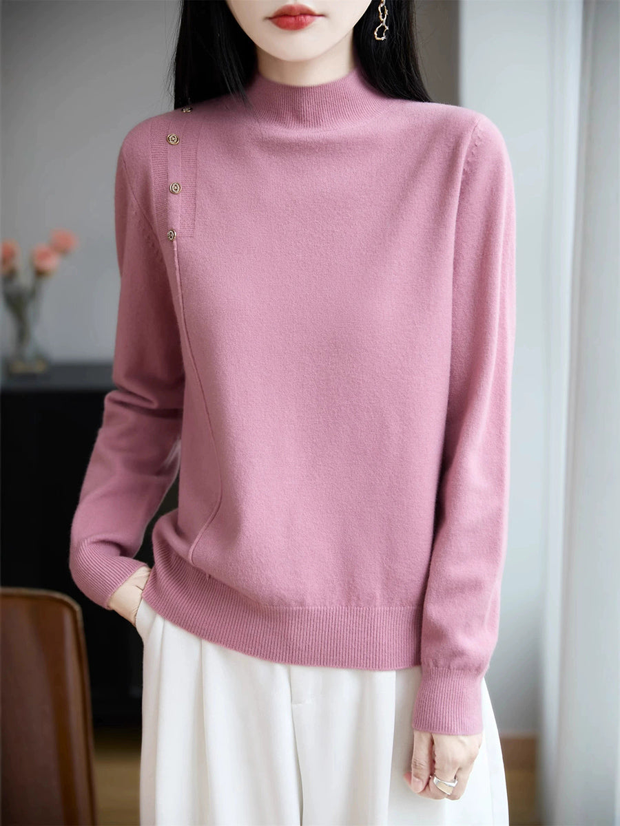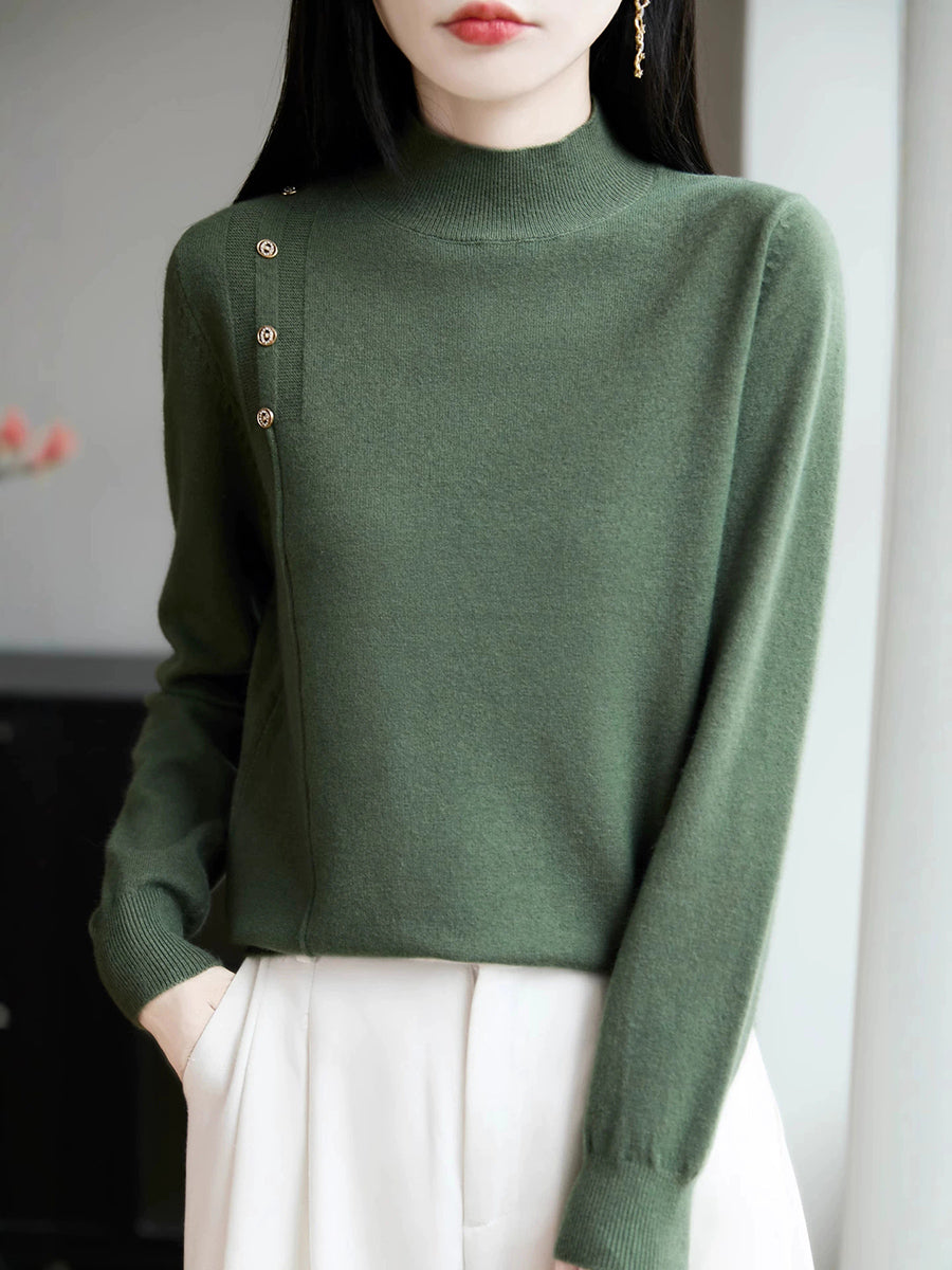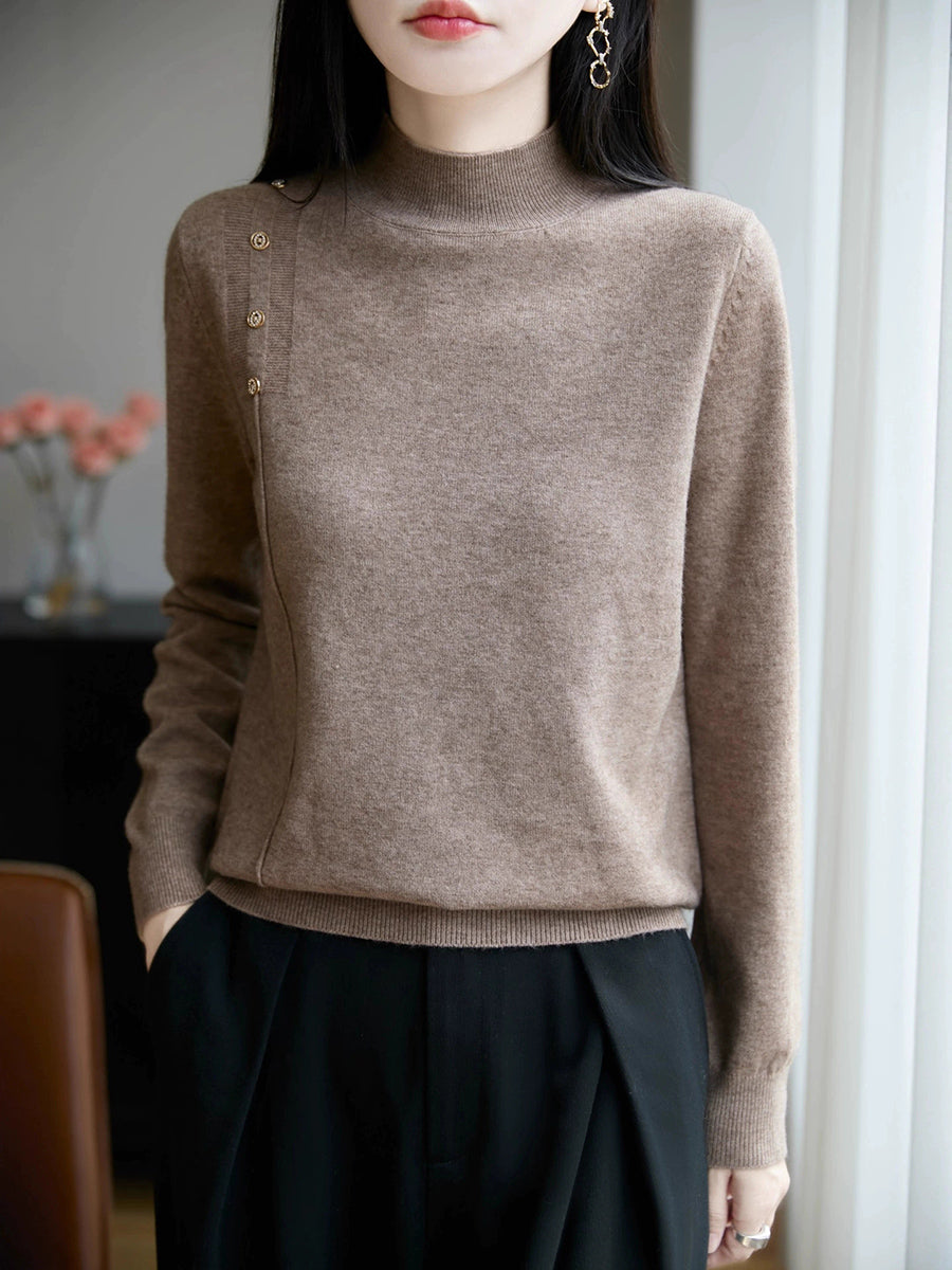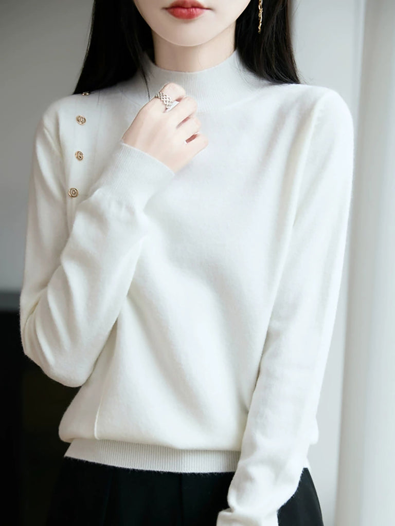 Blusa de cuello alto de color liso para mujer, estilo casual de invierno.