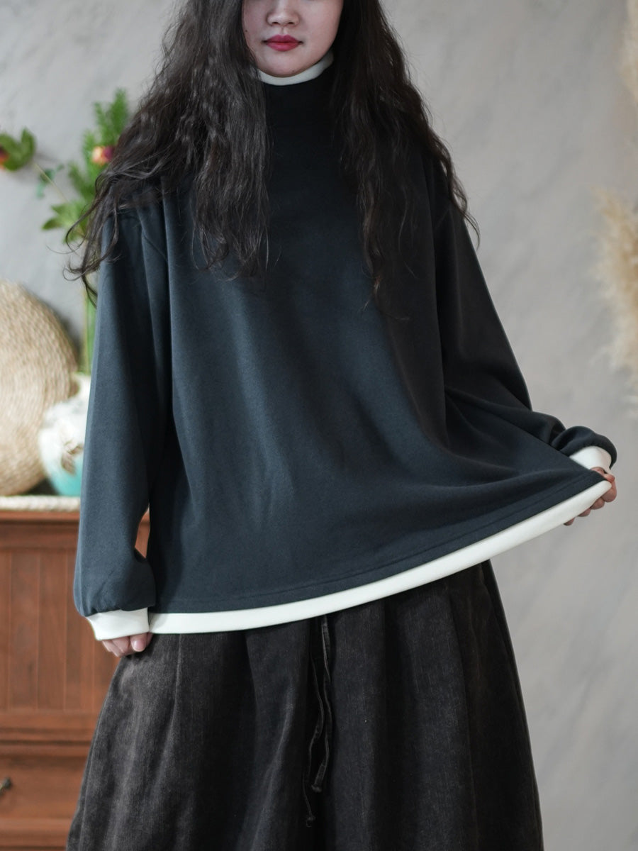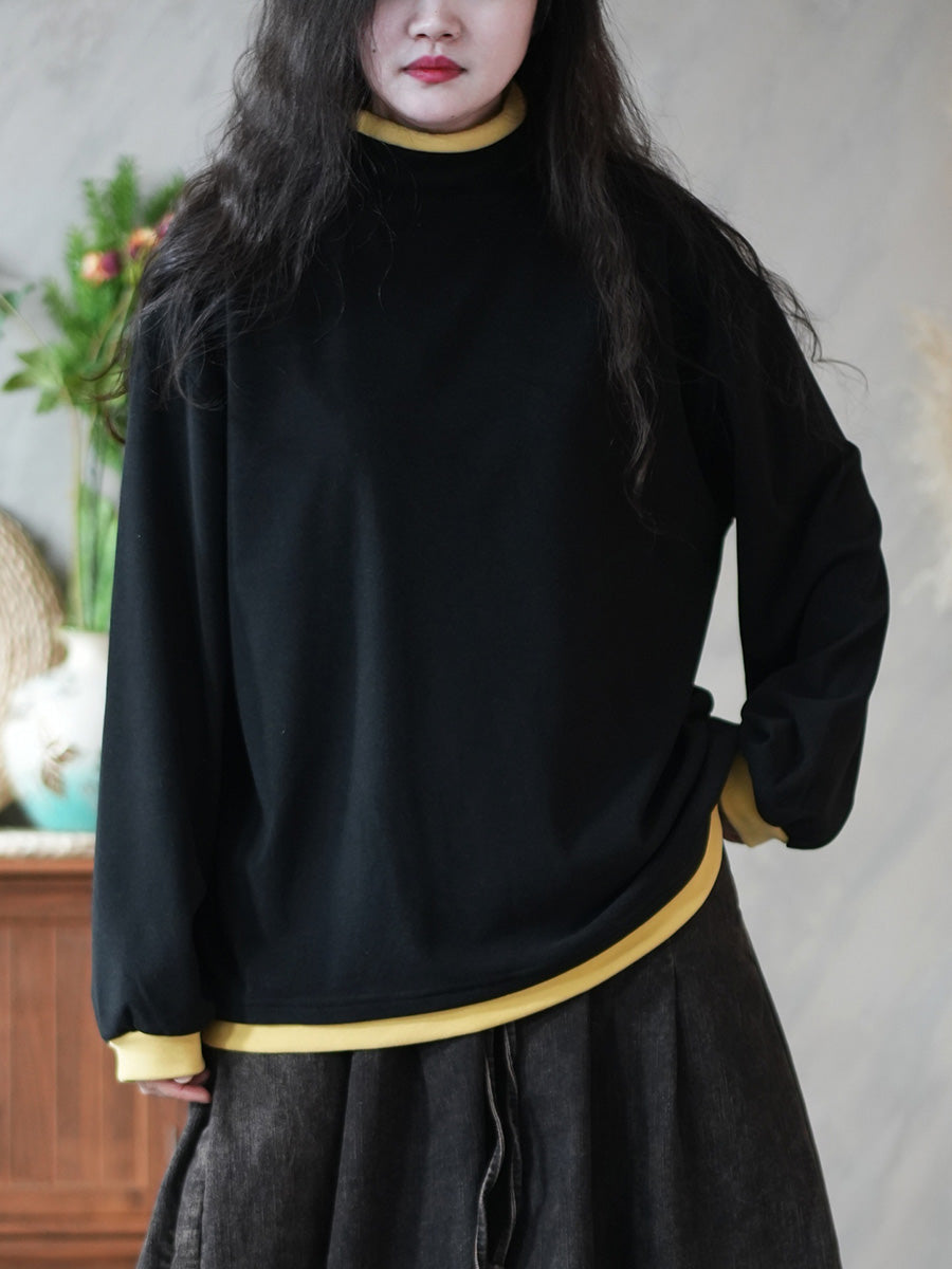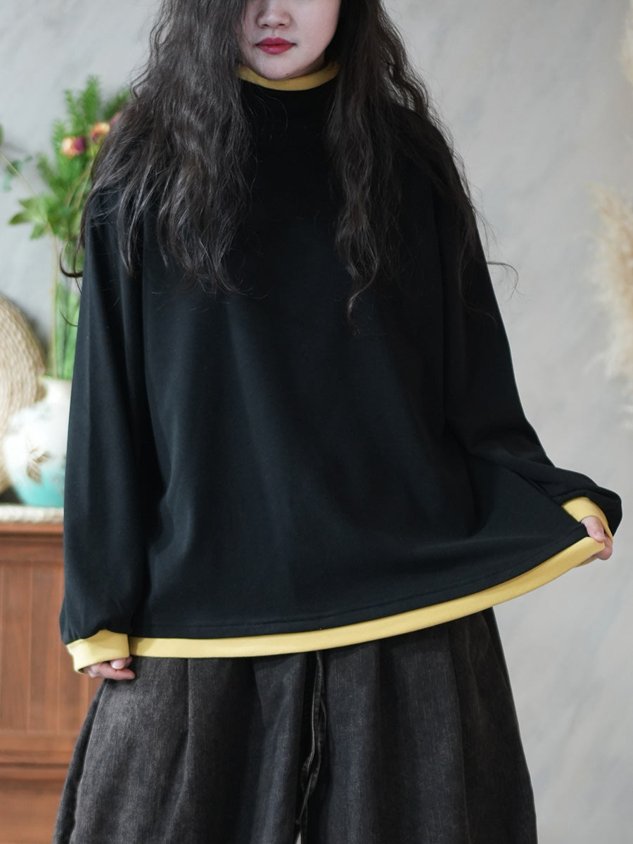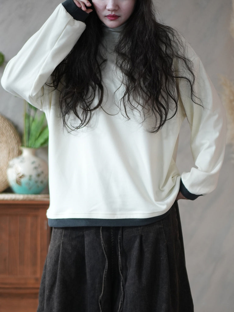 Blusa de cuello alto de algodón 100% con bloques de color para mujer (invierno)