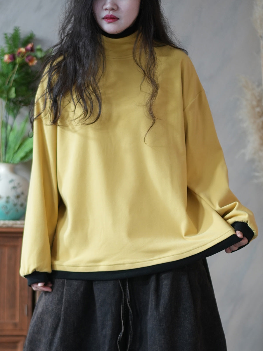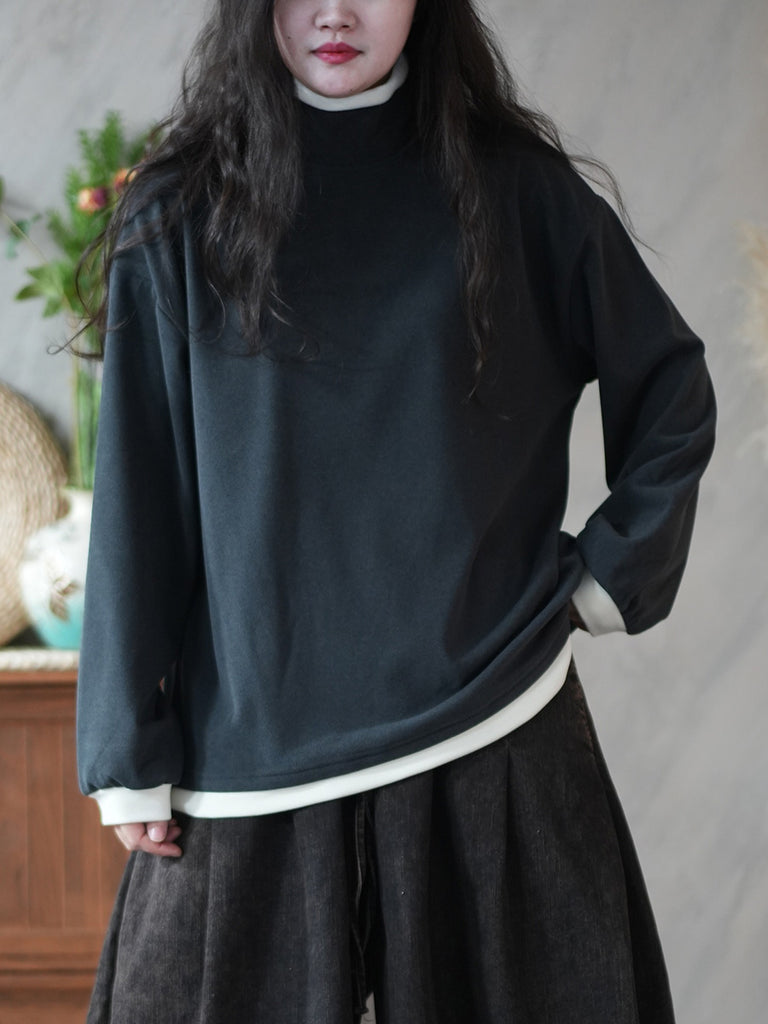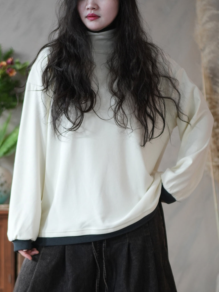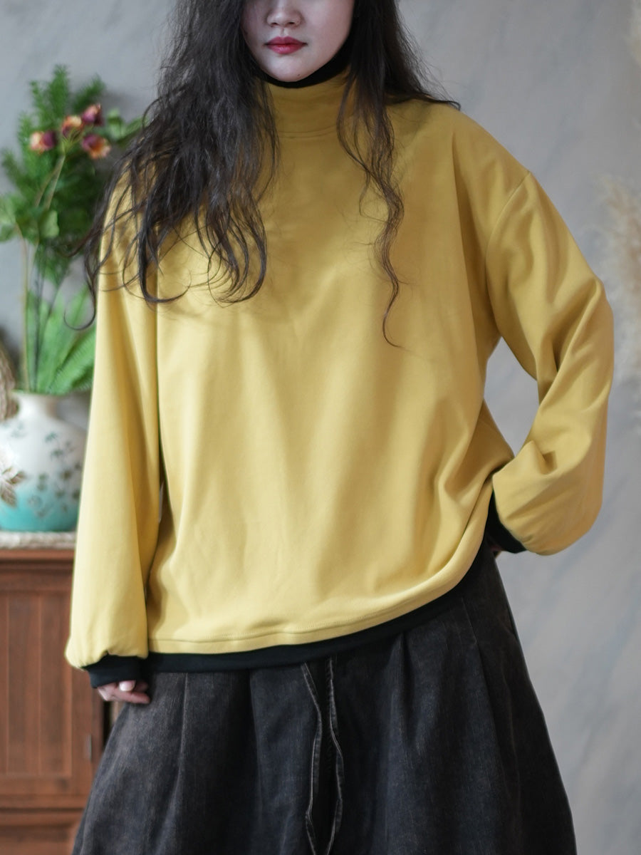 Blusa de cuello alto de algodón 100% con bloques de color para mujer (invierno)