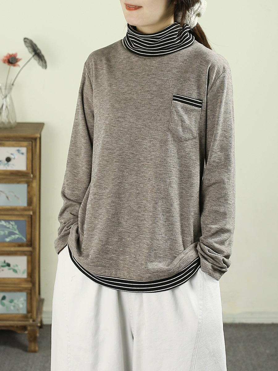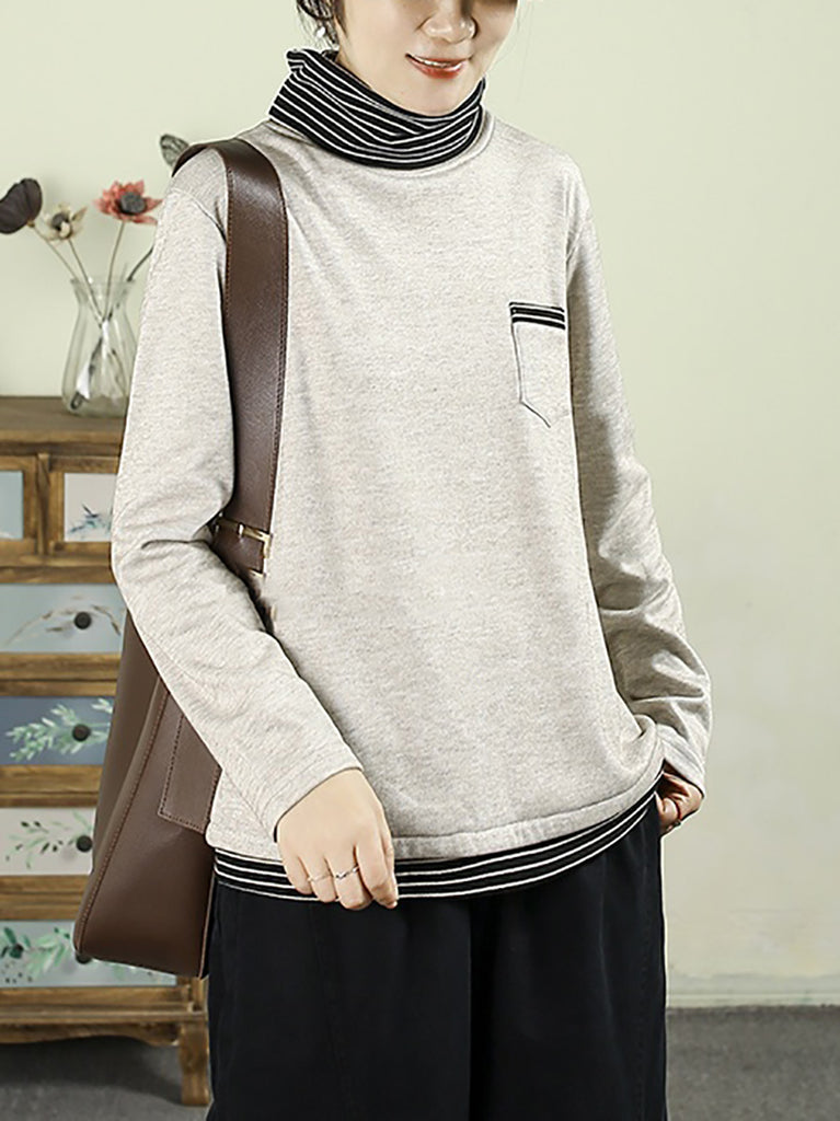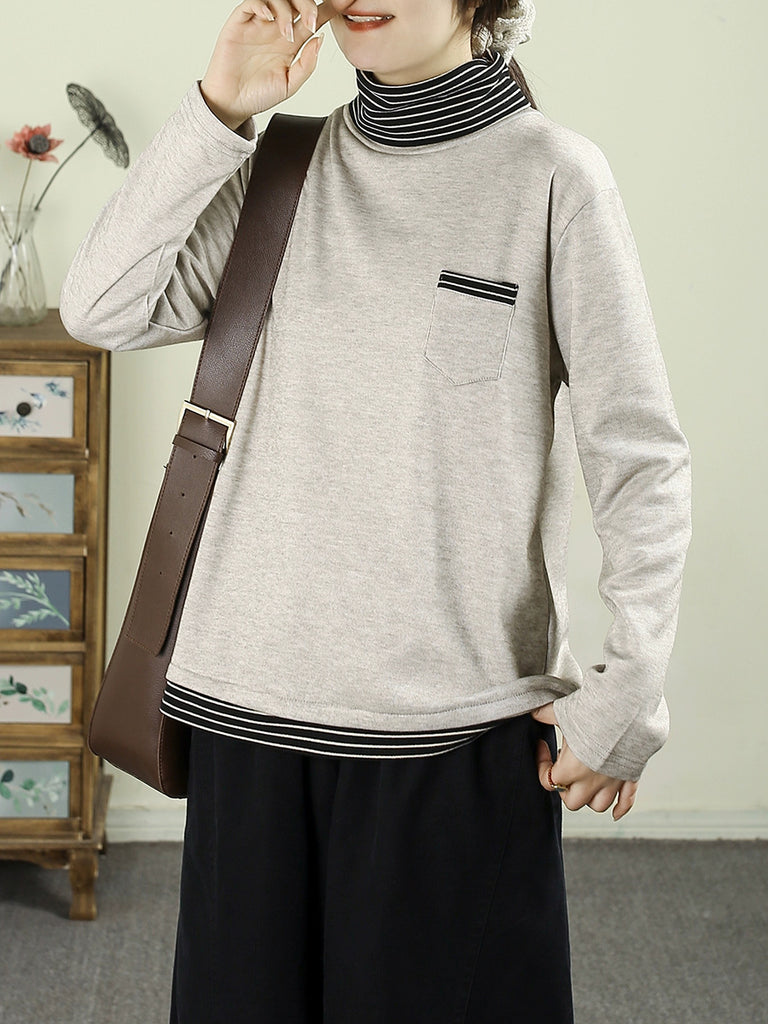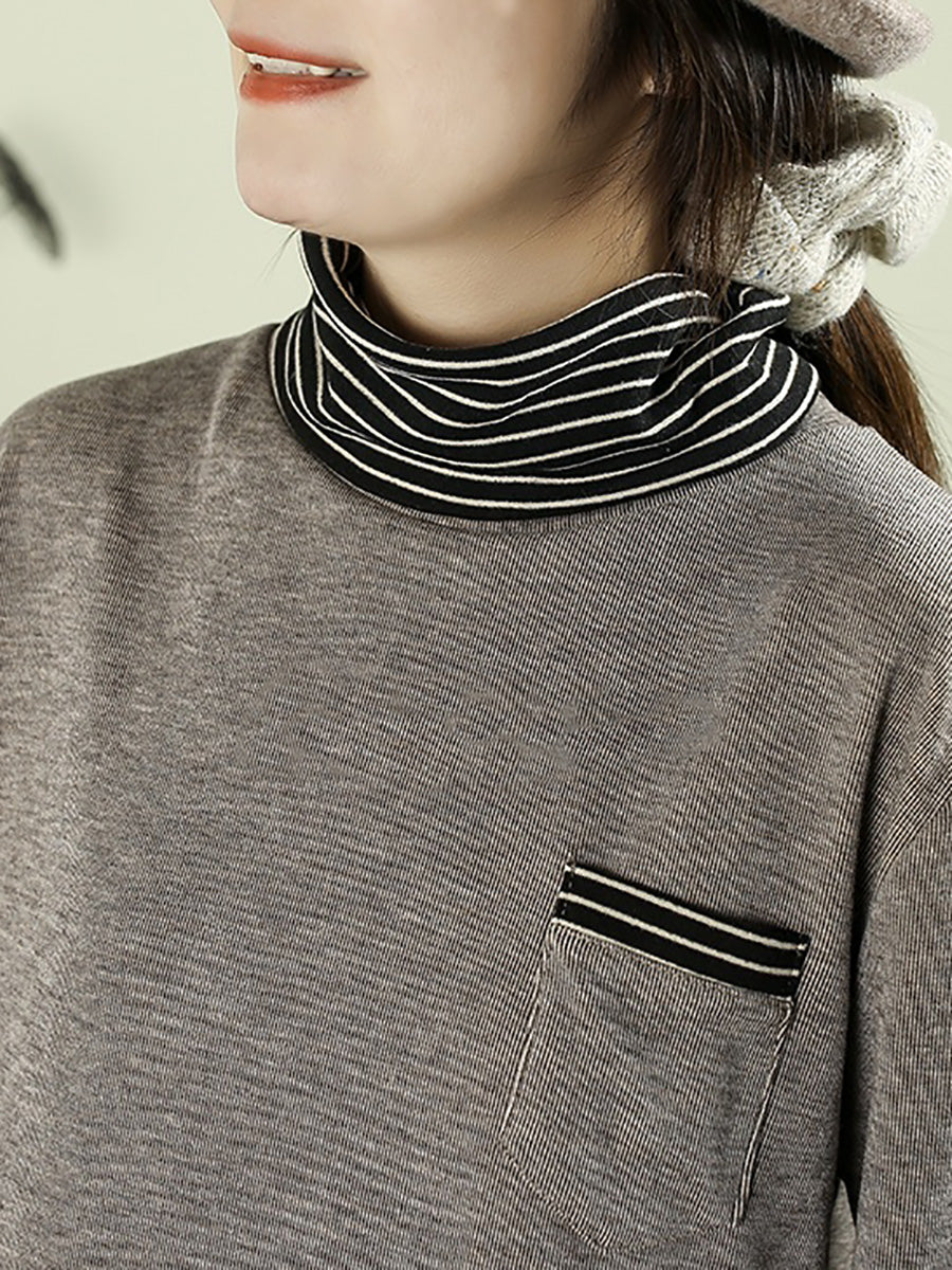 Blusa de cuello alto con forro polar y rayas para mujer, ideal para el invierno.