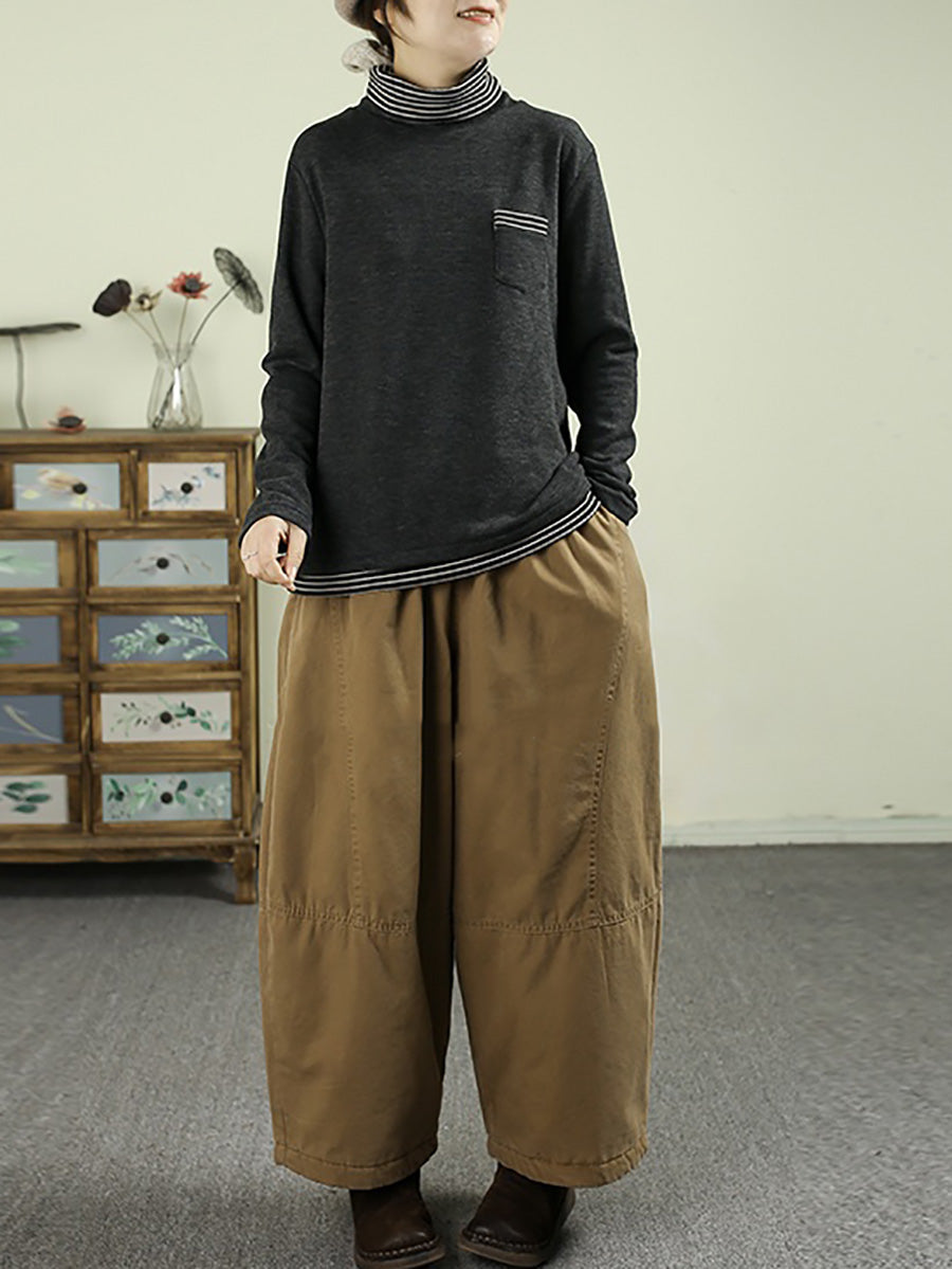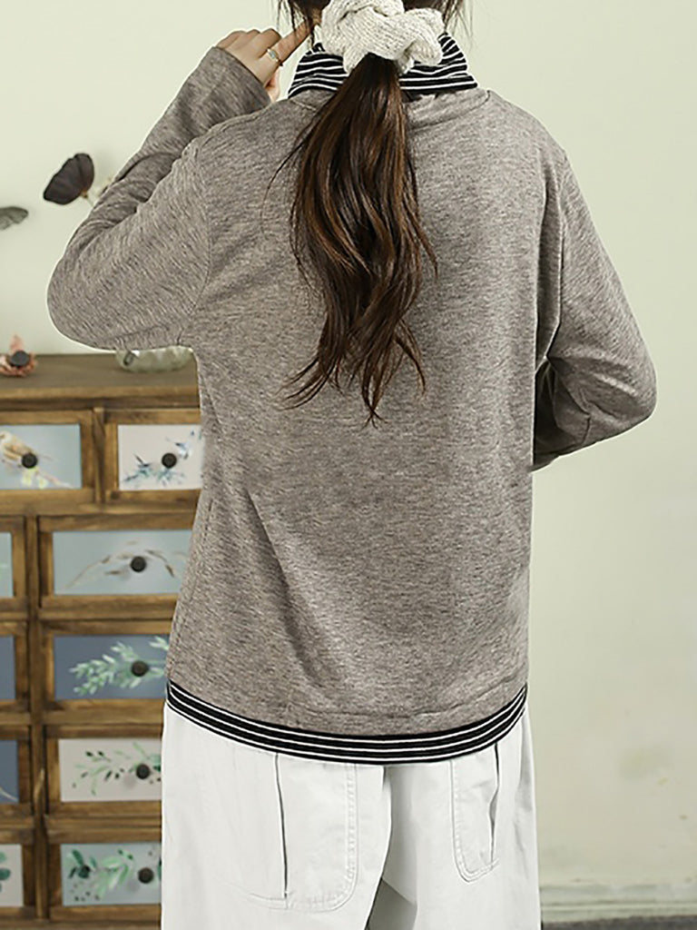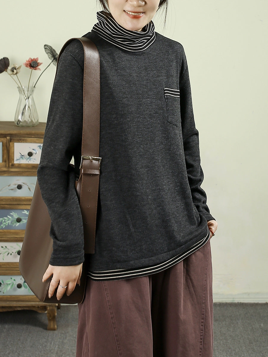 Blusa de cuello alto con forro polar y rayas para mujer, ideal para el invierno.