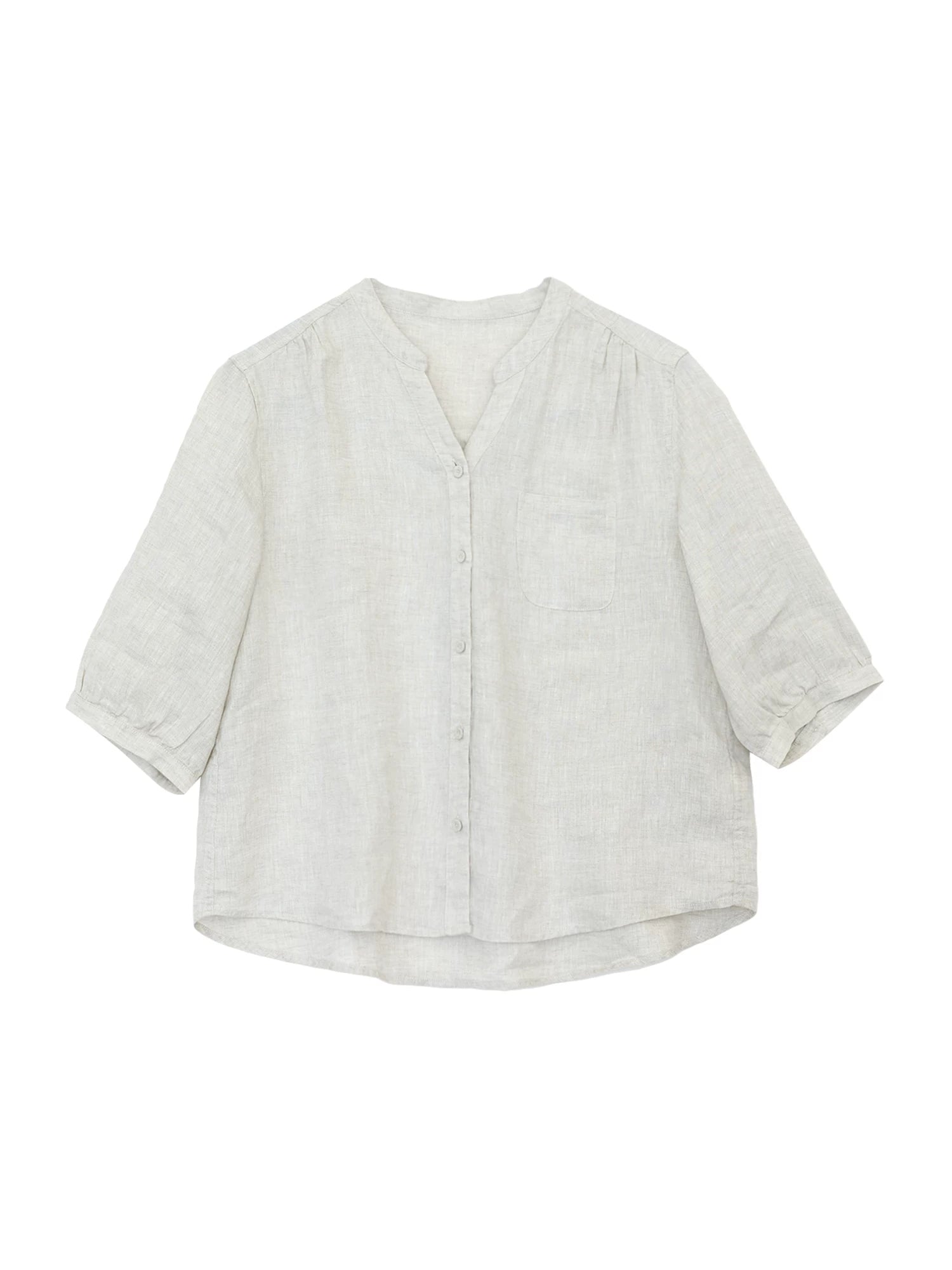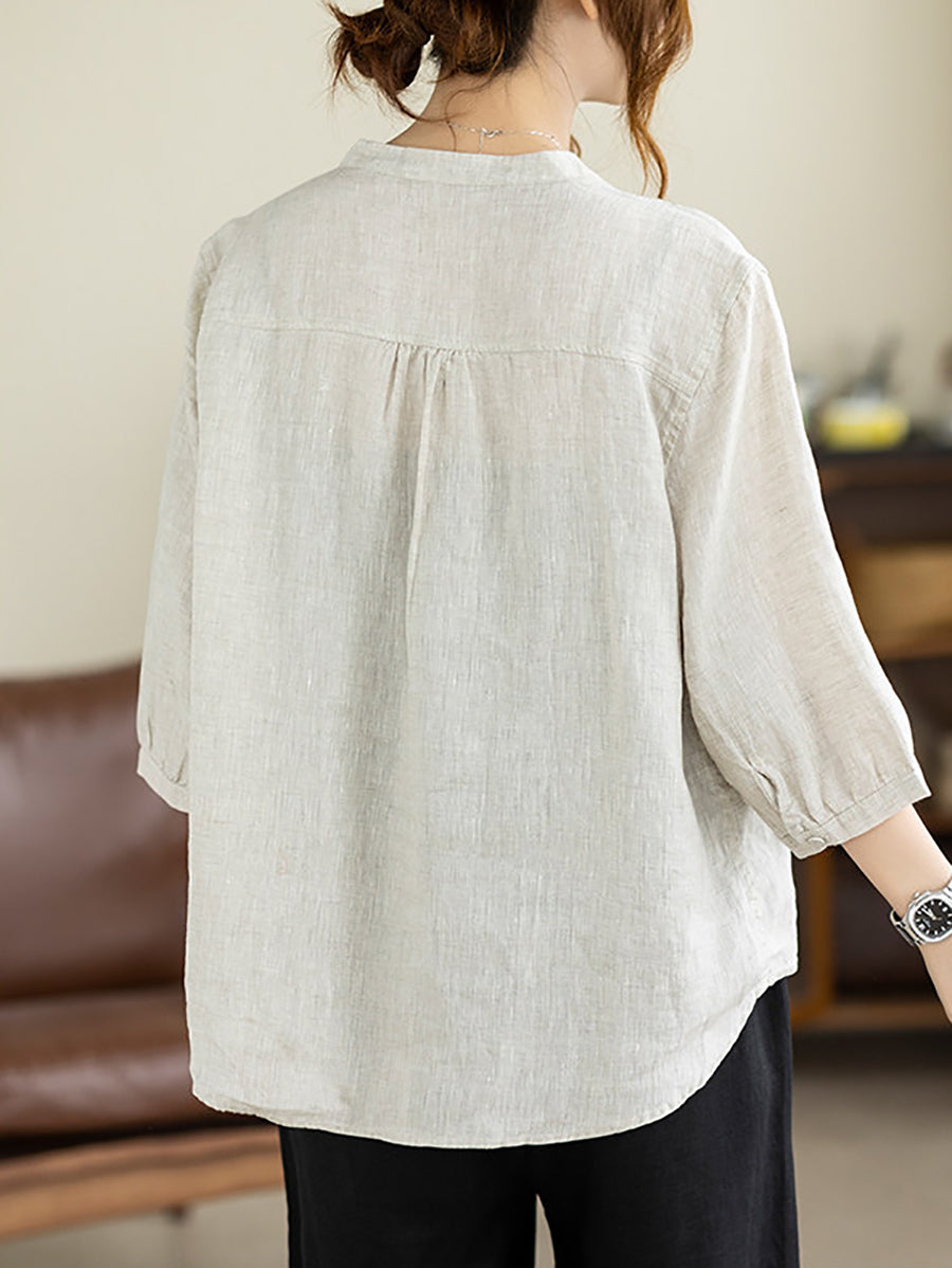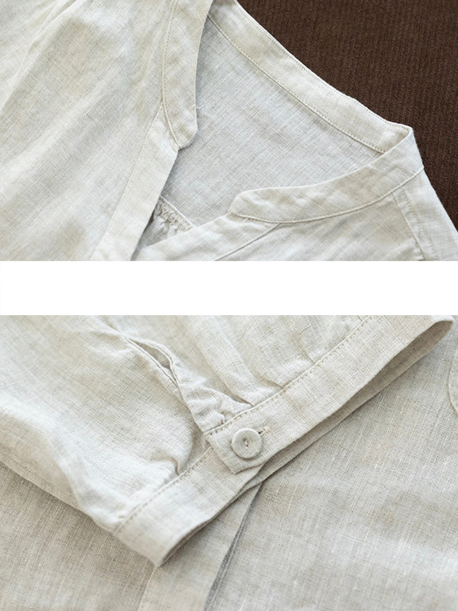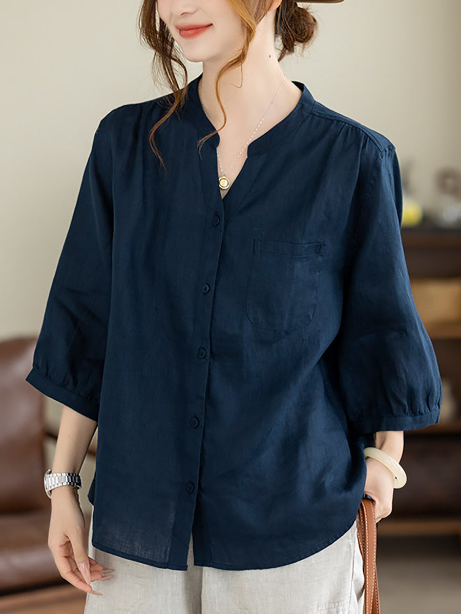 Camisa de mujer de verano, estilo artístico, color liso, cuello en V, 100% lino.