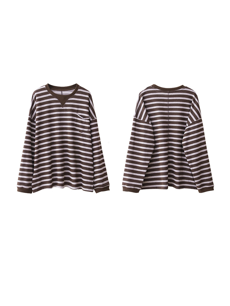 Blusa informal de otoño con rayas y cuello redondo para mujer