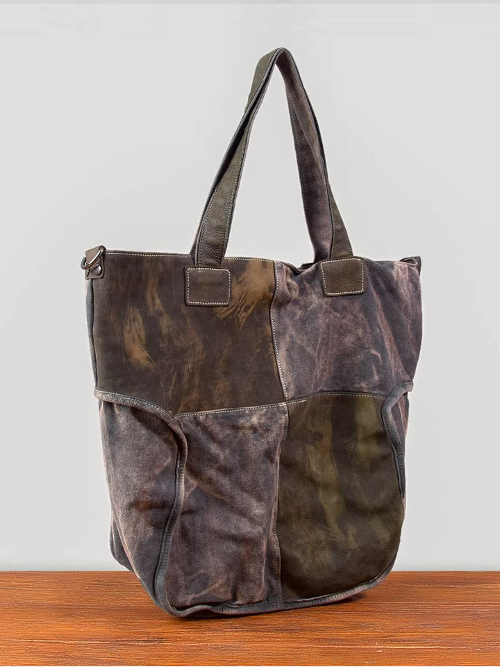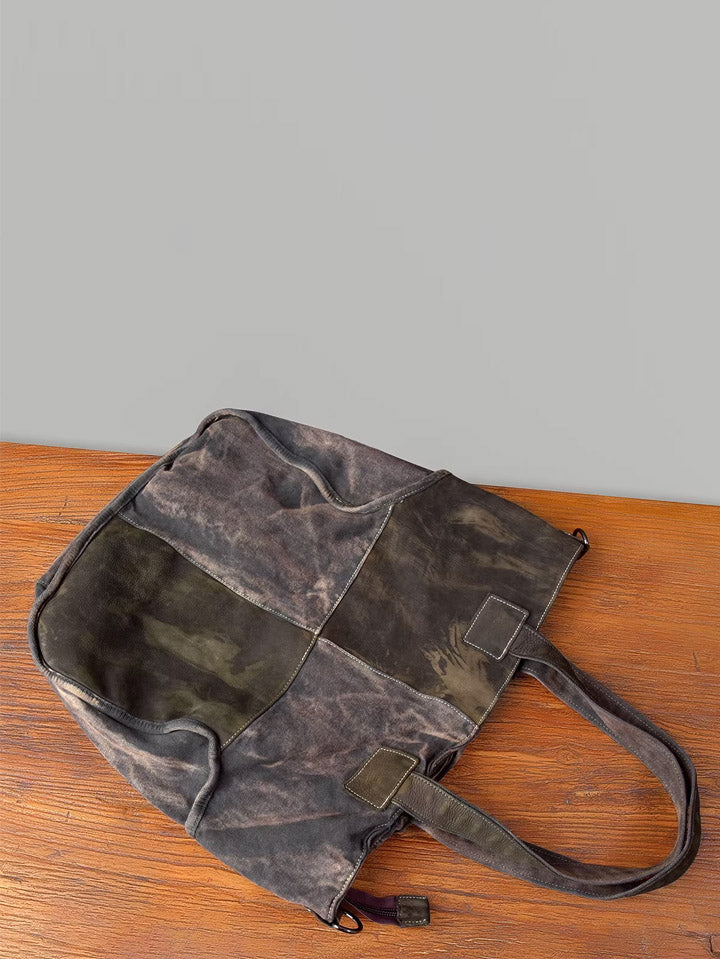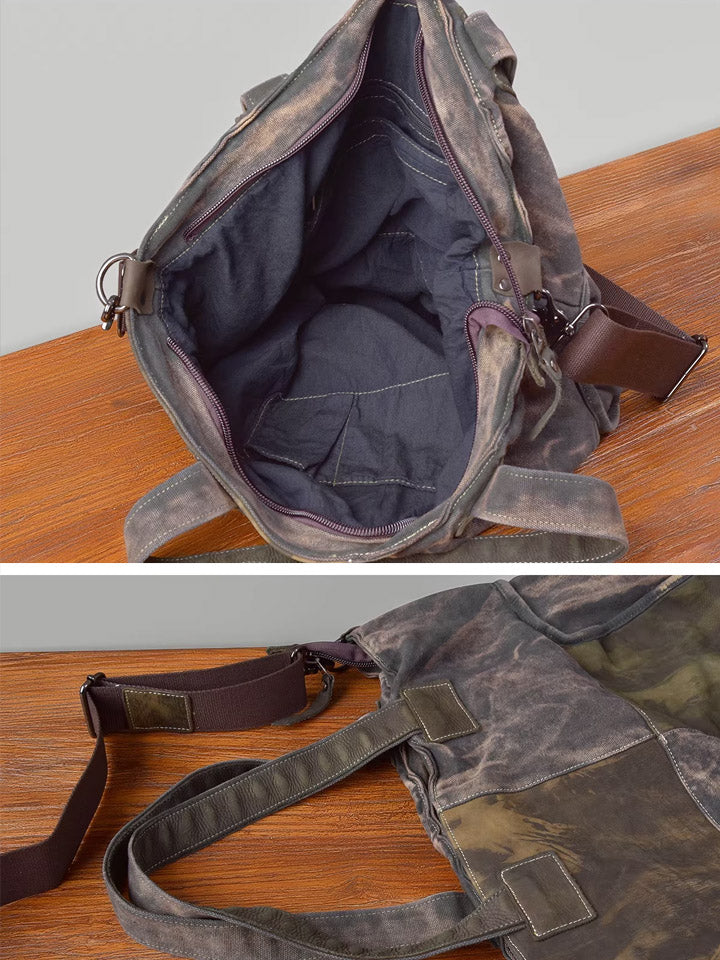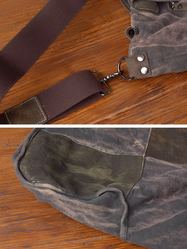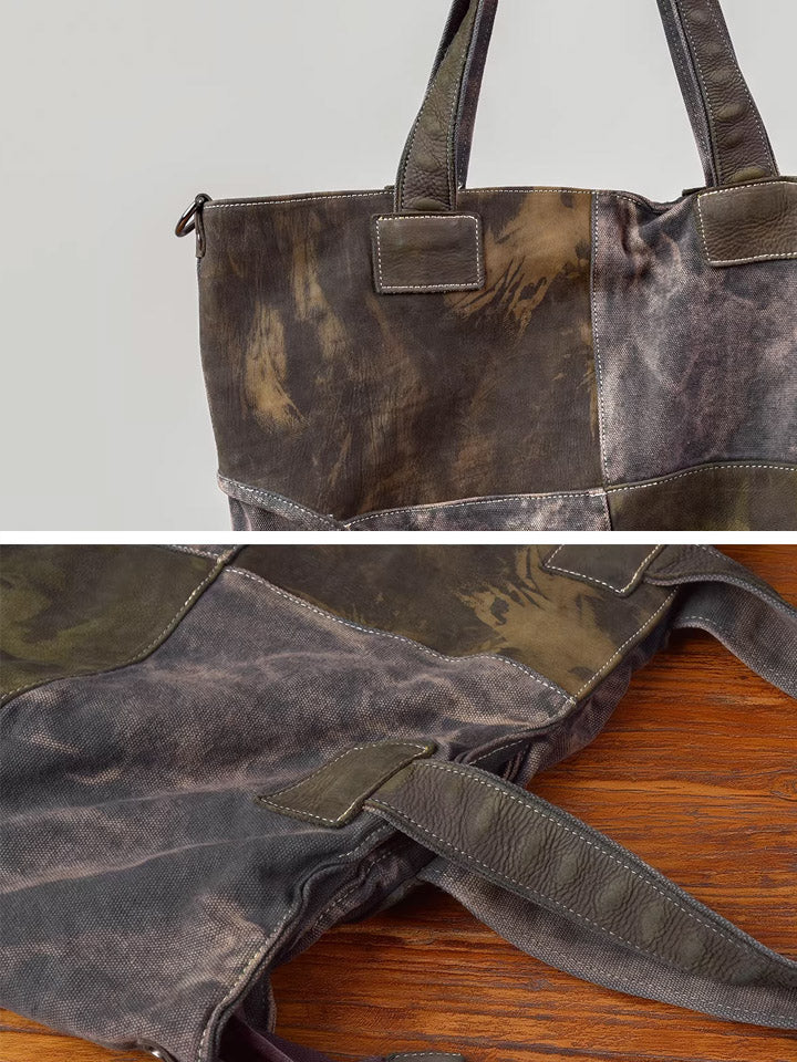 03046 Bolso de mano vintage de lona y cuero empalmado