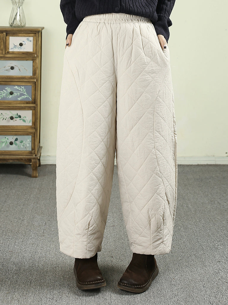 Pantalones harén acolchados 100 % algodón para mujer, informales, de invierno