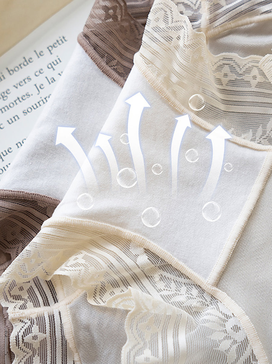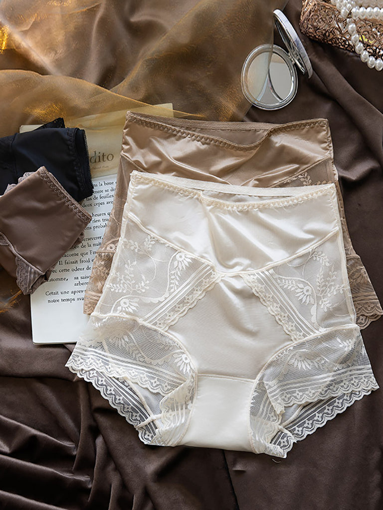 3 piezas de ropa interior de cintura alta con encaje artístico para mujer
