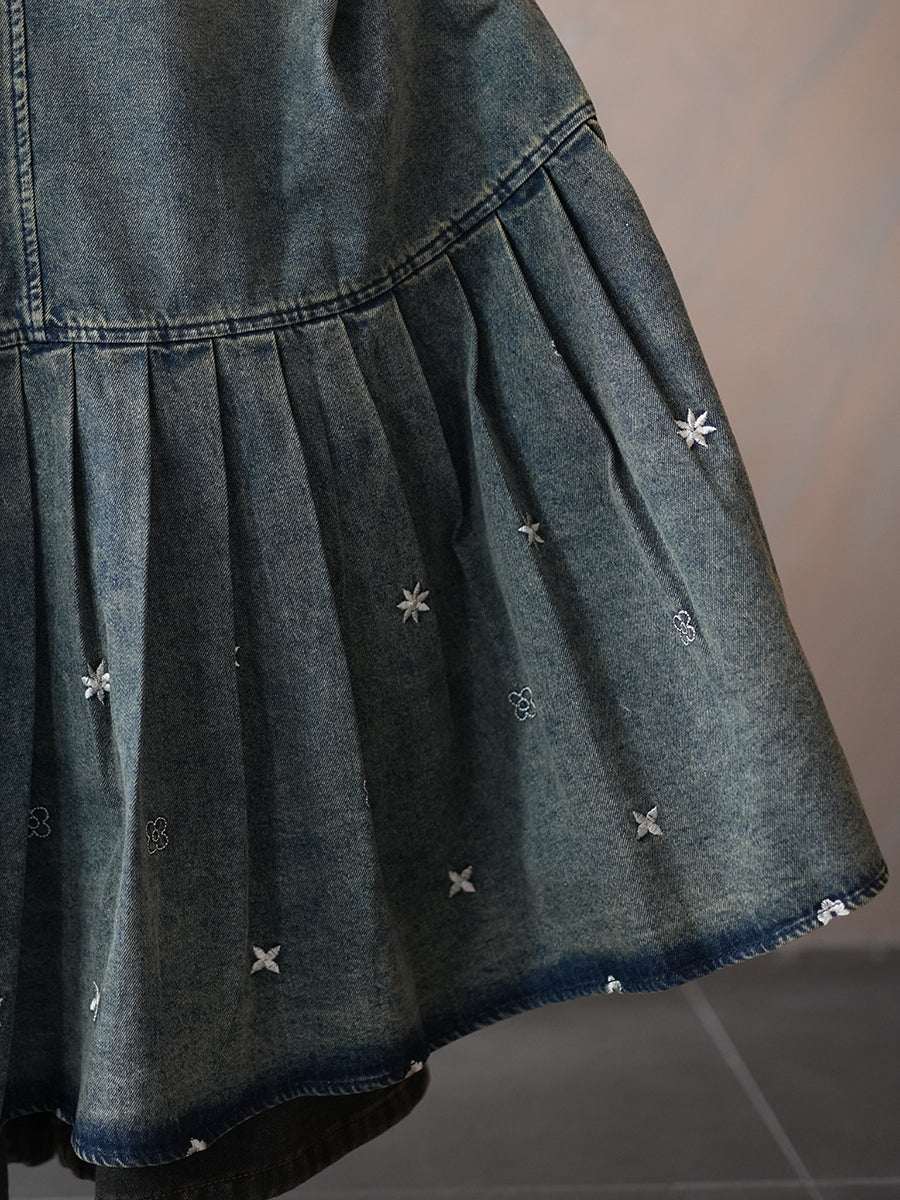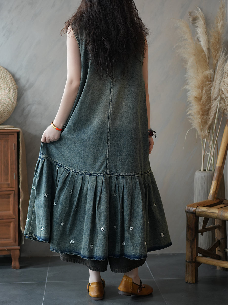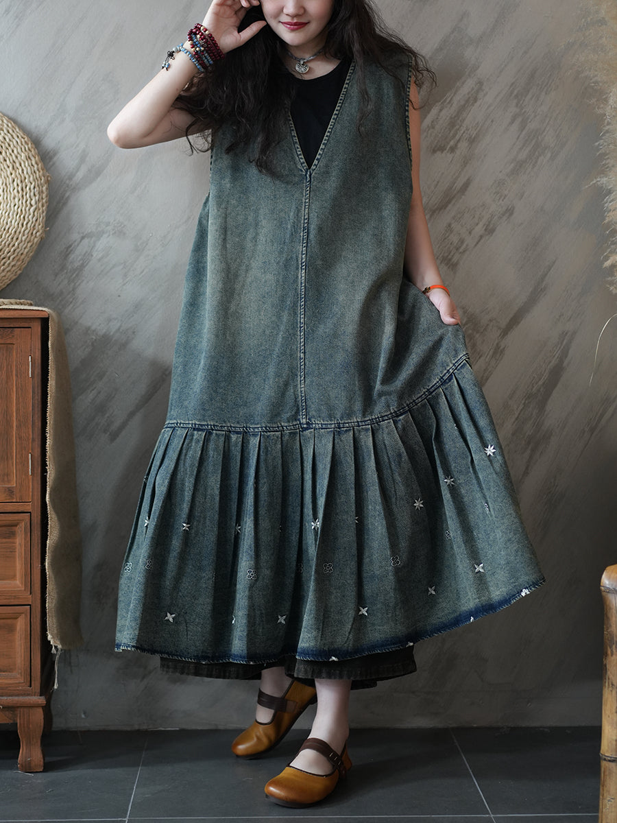 Vestido plisado de mezclilla estilo vintage de verano para mujer