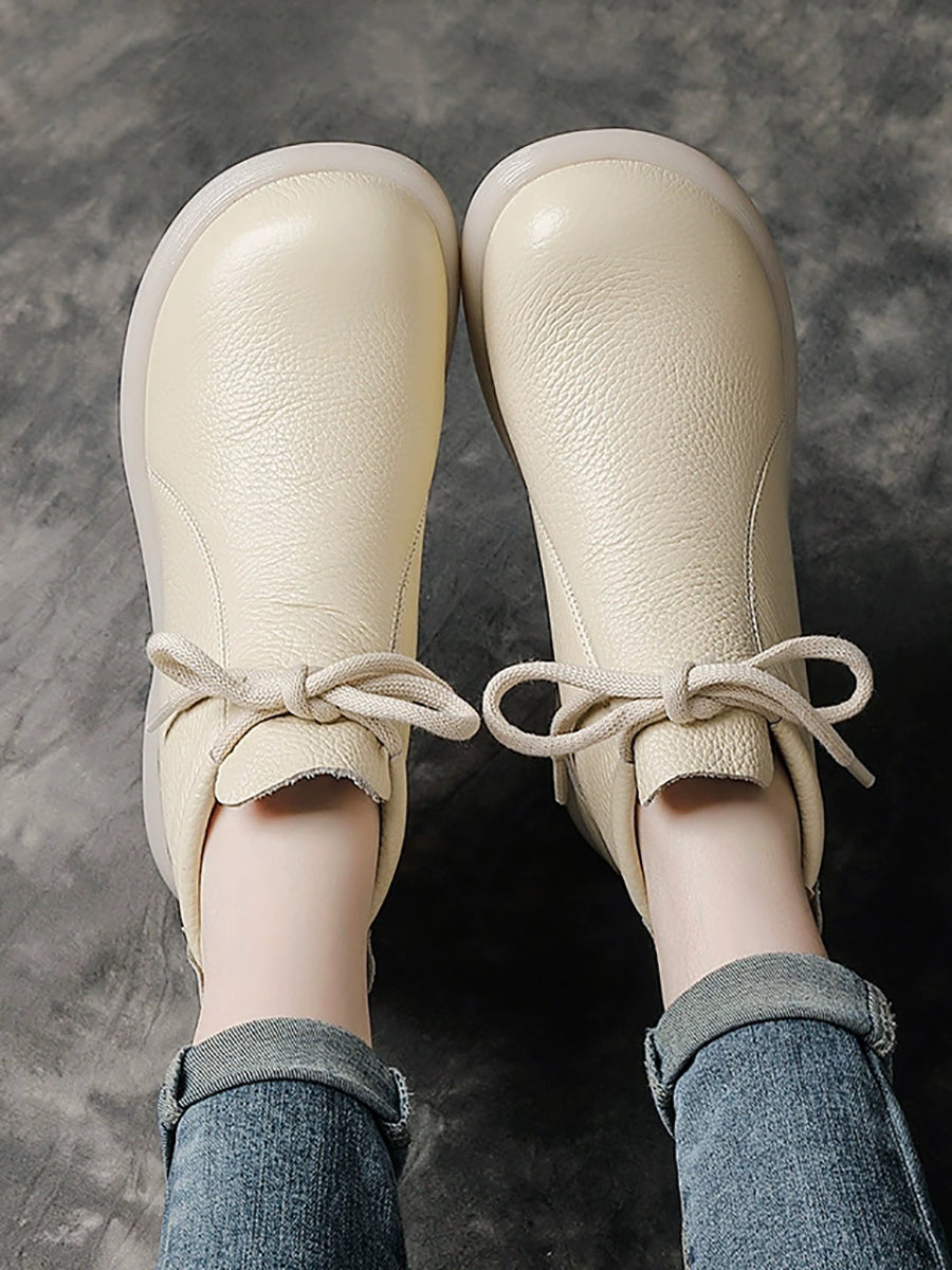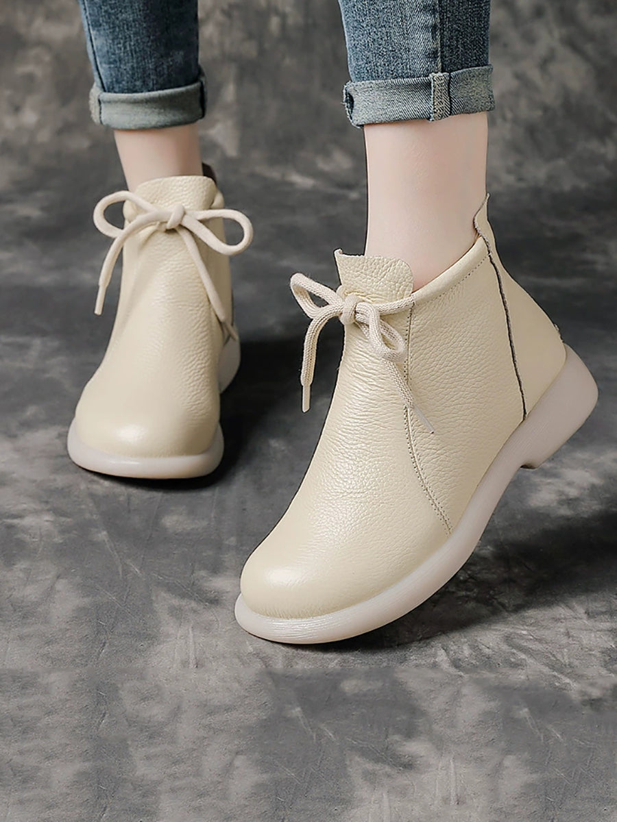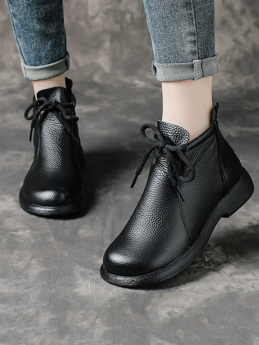 Botas vintage de piel auténtica con tacón bajo para mujer