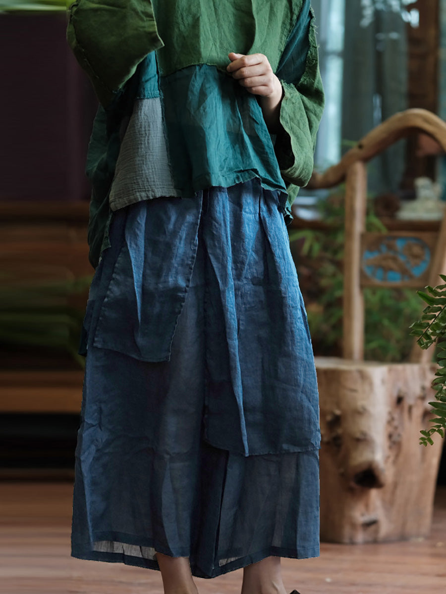 Pantalones anchos de pierna de ramio con empalmes sólidos vintage de verano para mujer