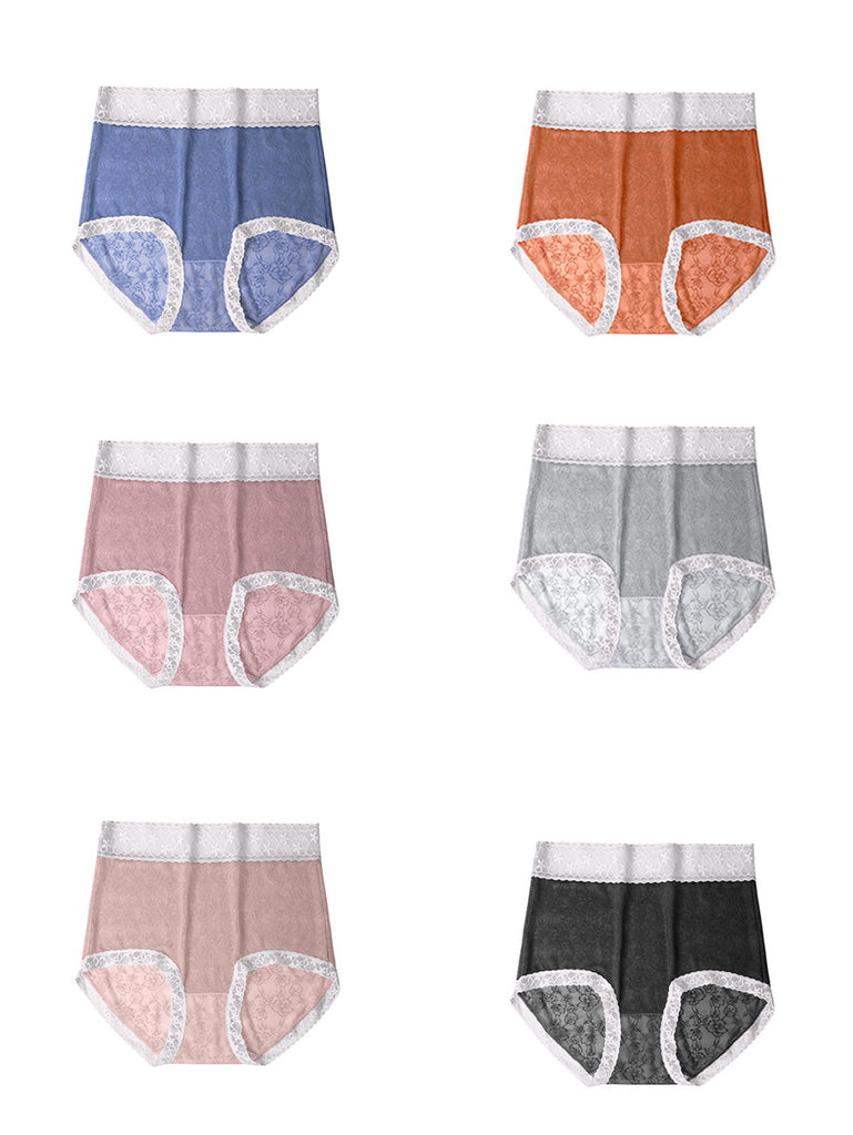 6 Pieces Summer Women Flower Jacquard High Waist Underwear