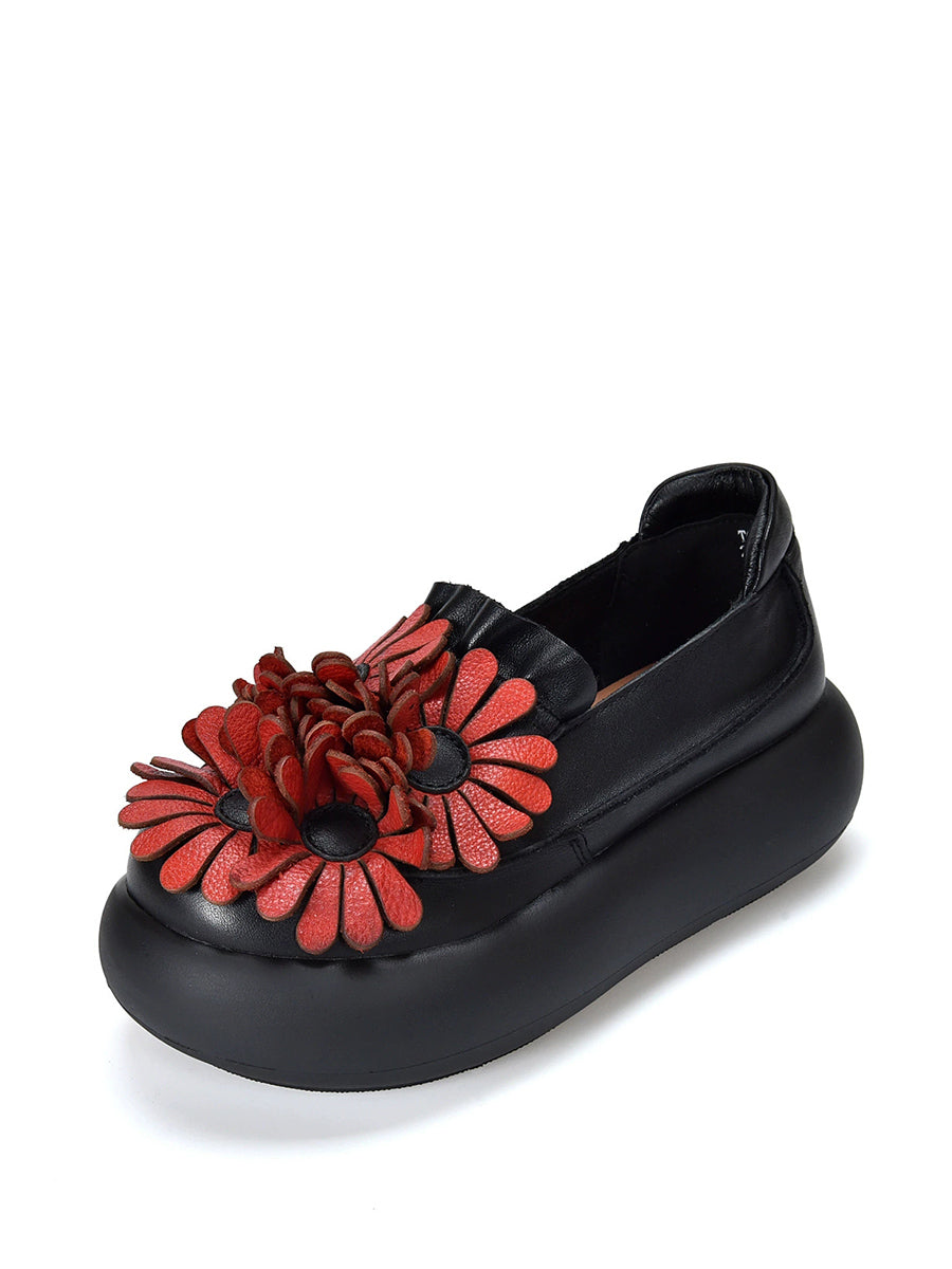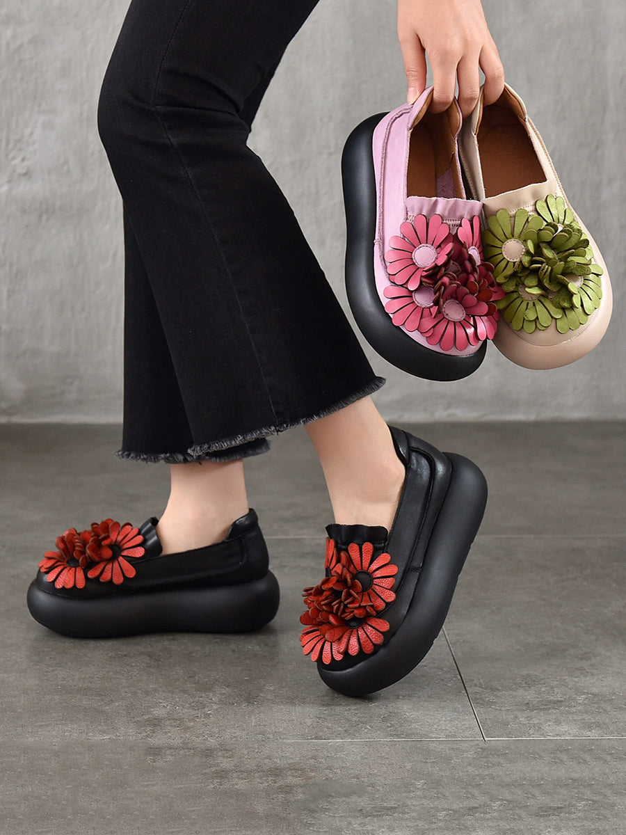 Women Spring Genuine Leather Flower Spliced Platform Shoes