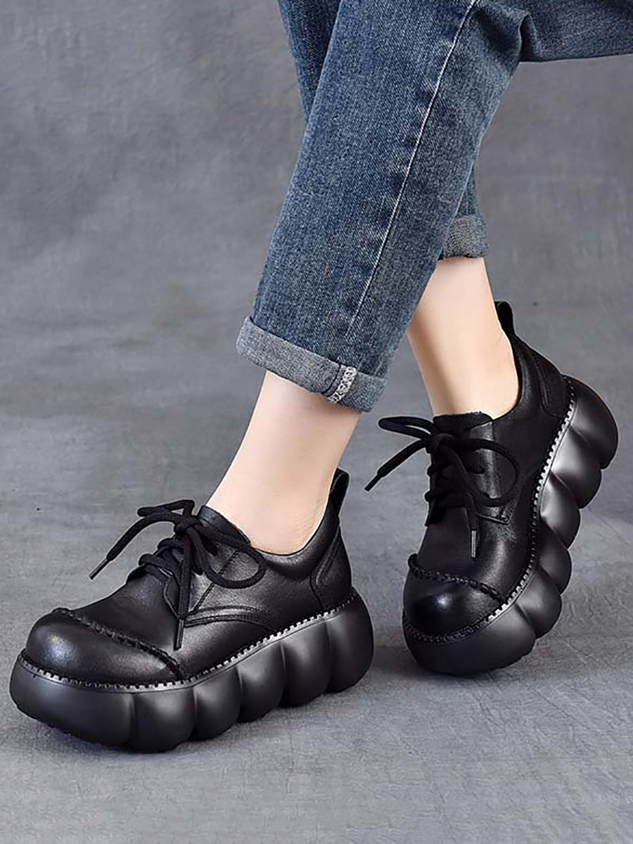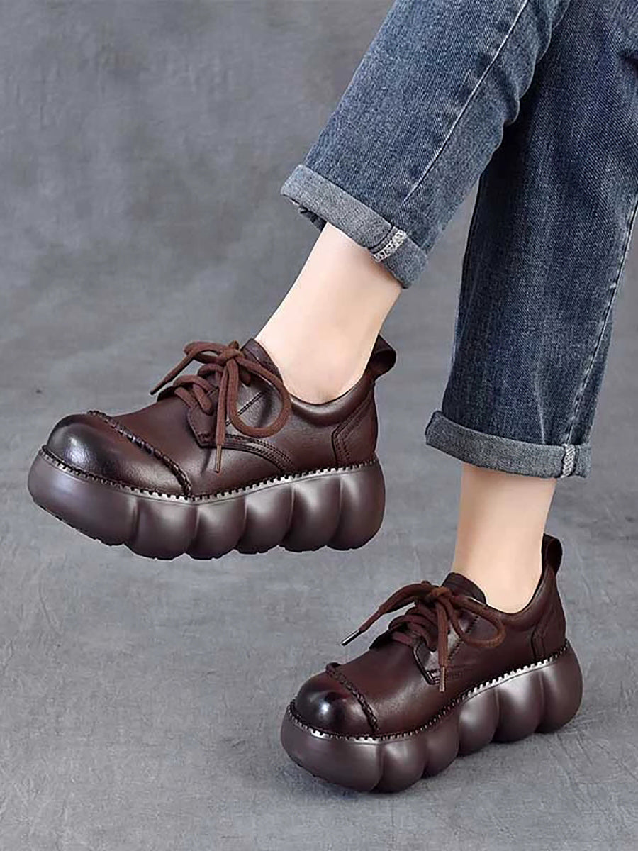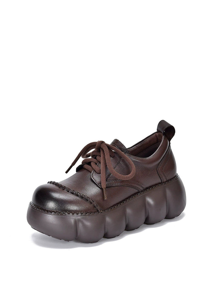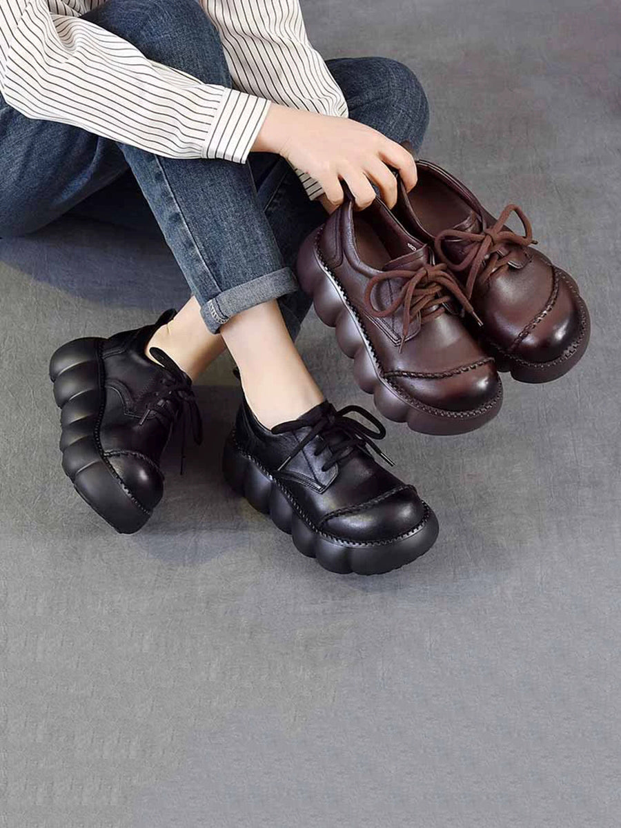 Women Spring Retro Genuine Leather Platform Shoes