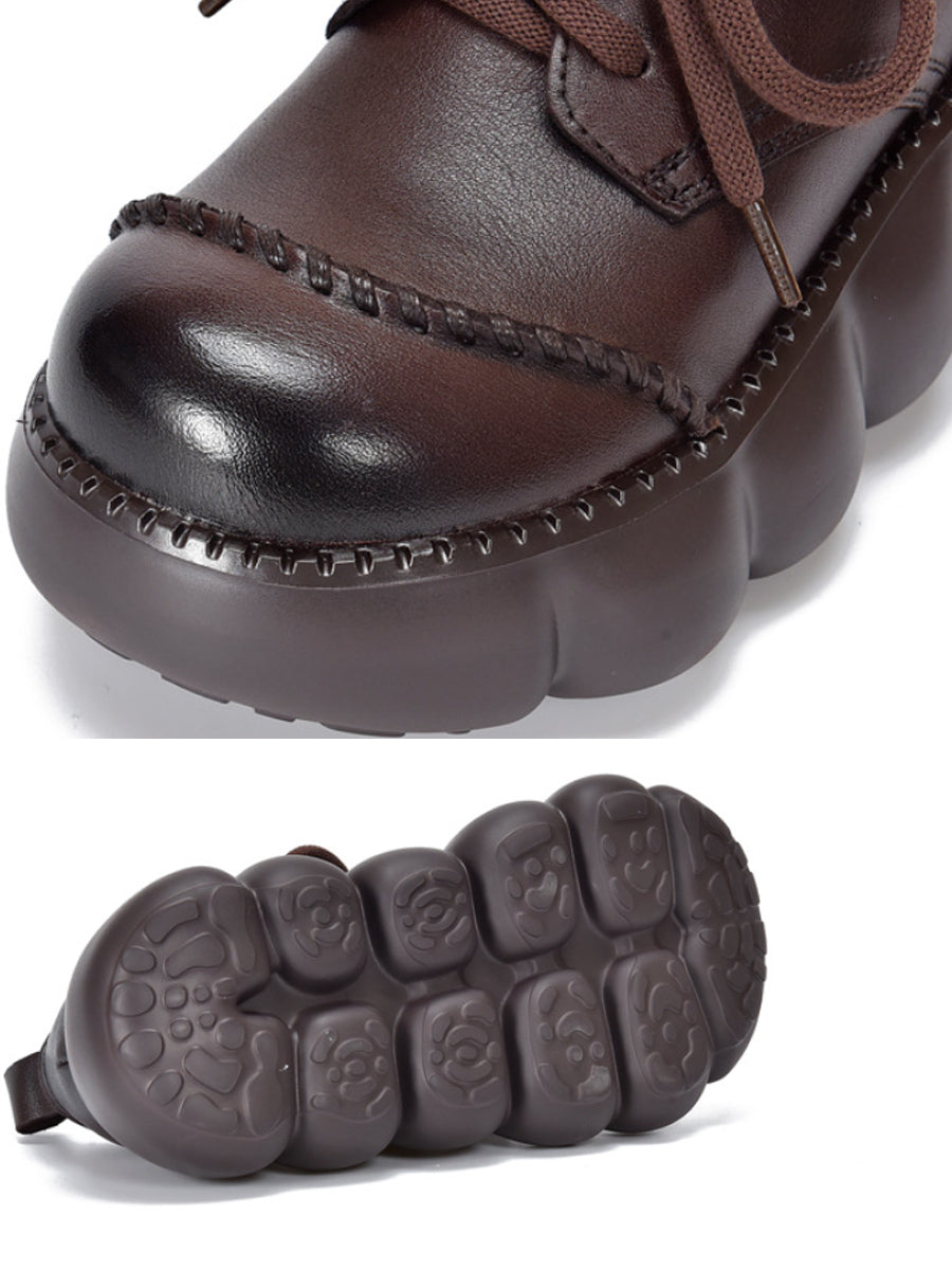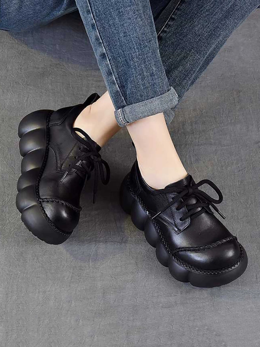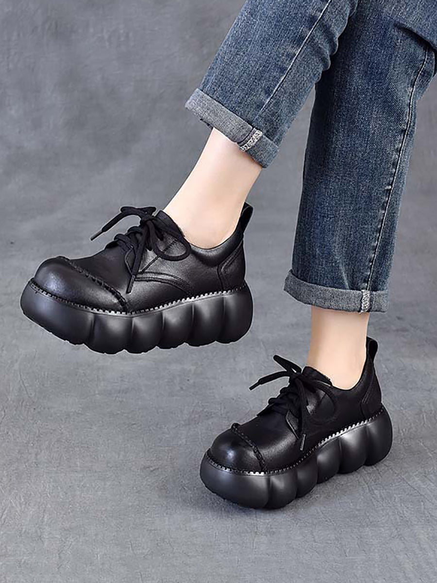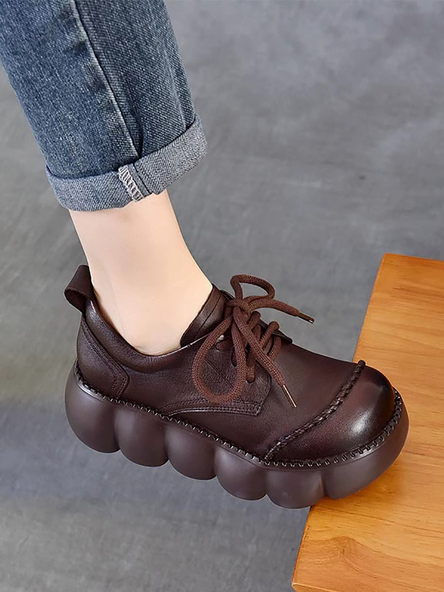 Women Spring Retro Genuine Leather Platform Shoes