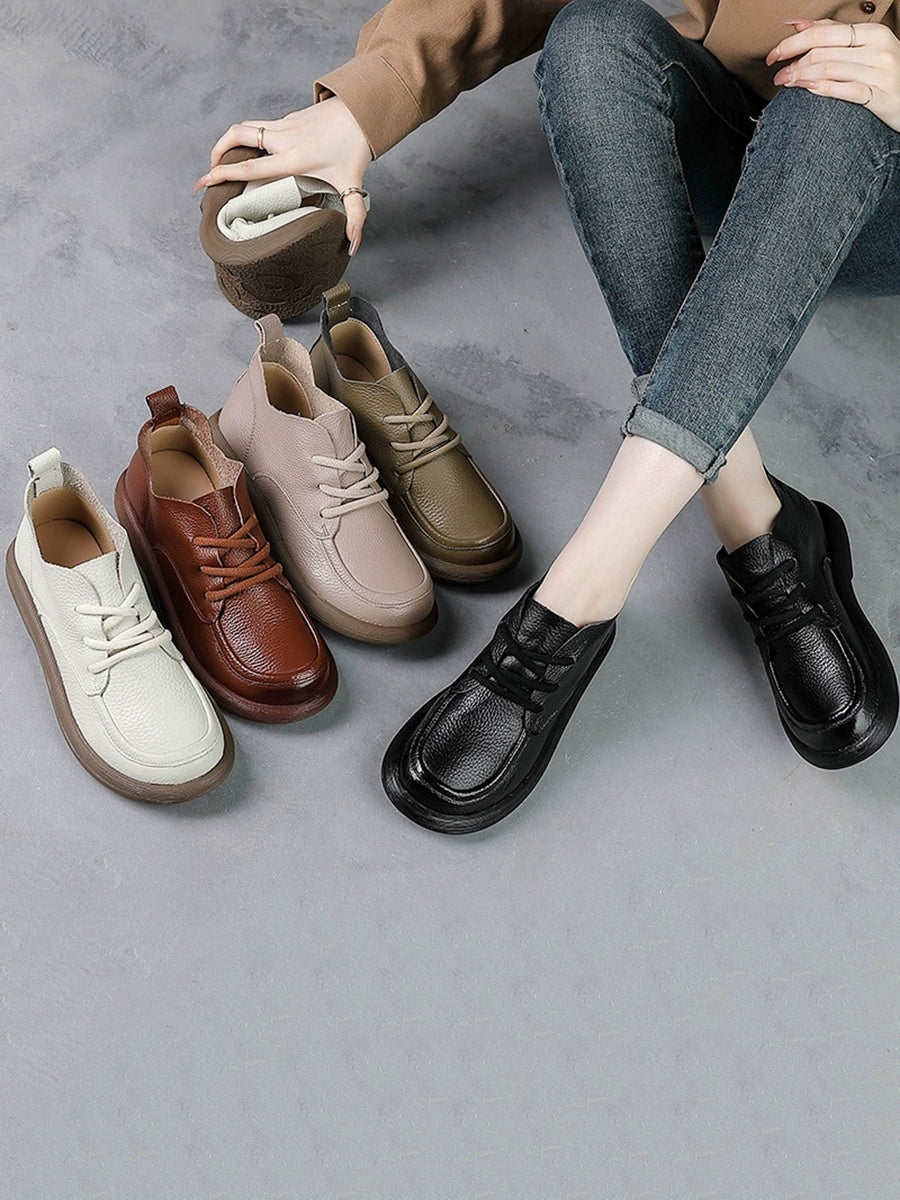 Women Winter Genuine Leather Low Heel Shoes
