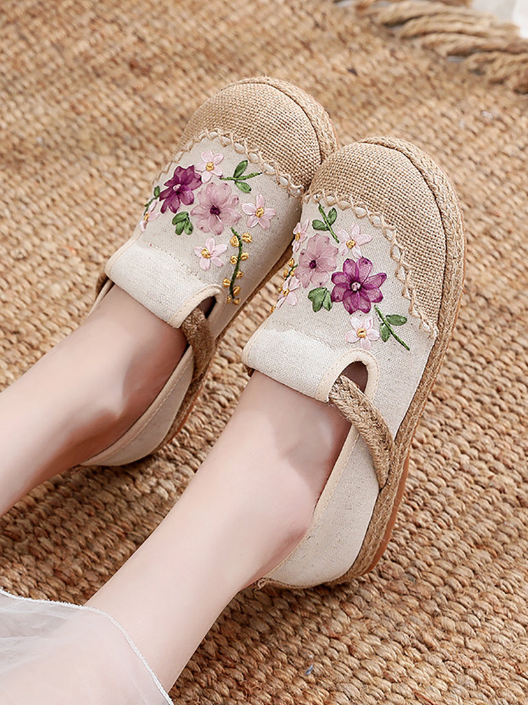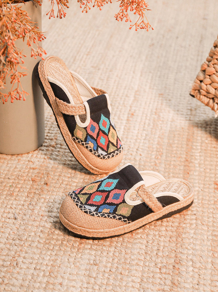 Women Ethnic Colorblock Cotton Linen Flat Slippers