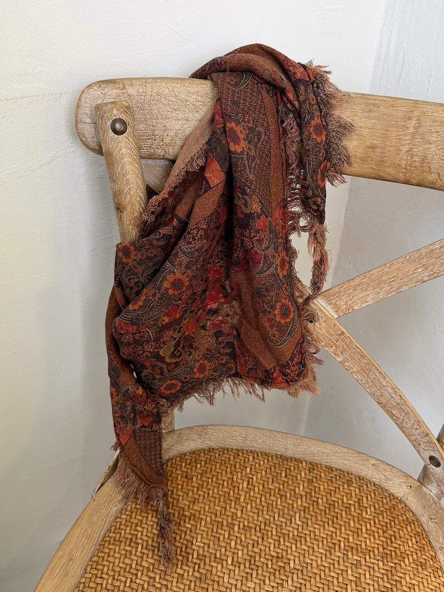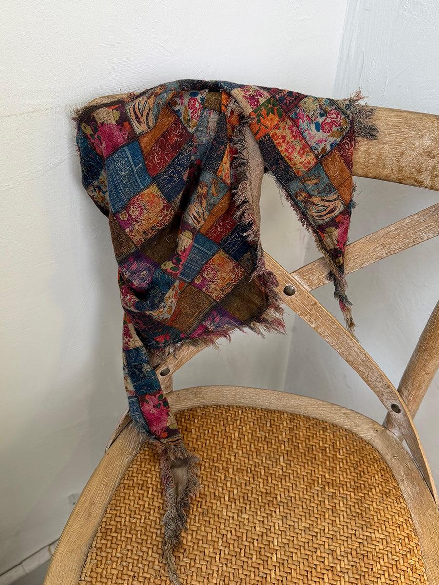 Women Winter Retro Flower Patchwork Triangle Scarf