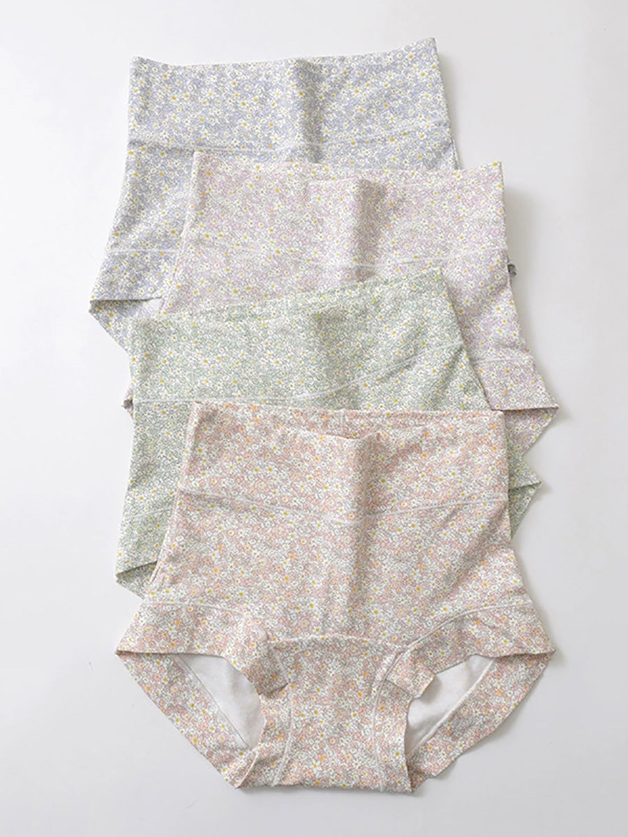 4 Pieces Women Artsy Floral High Waist Underwear