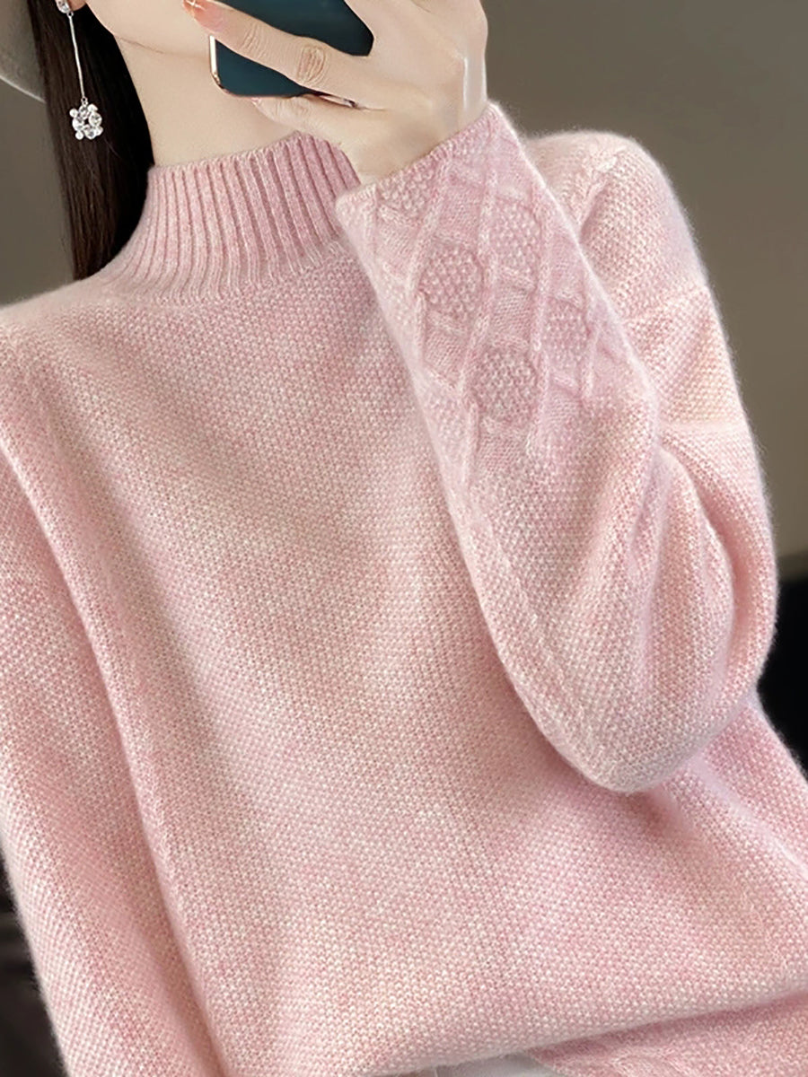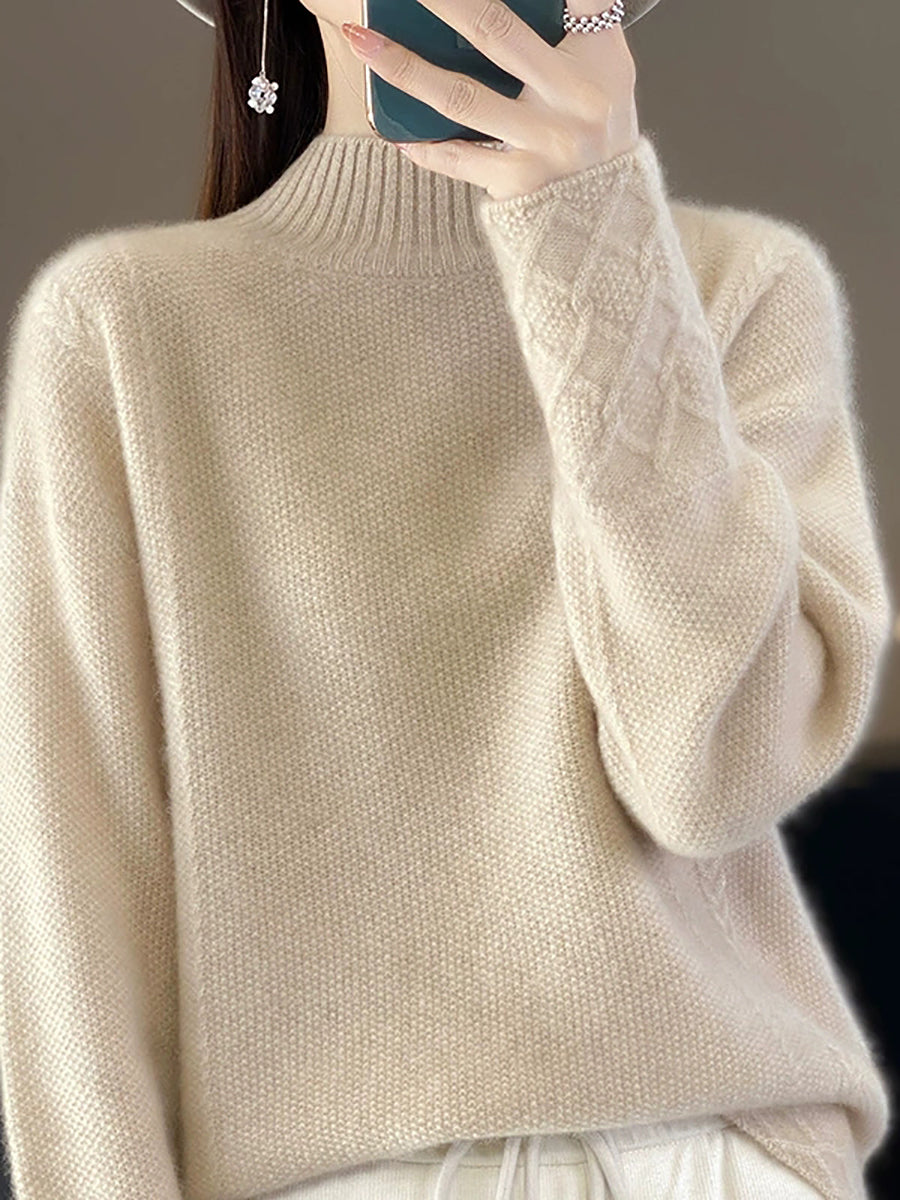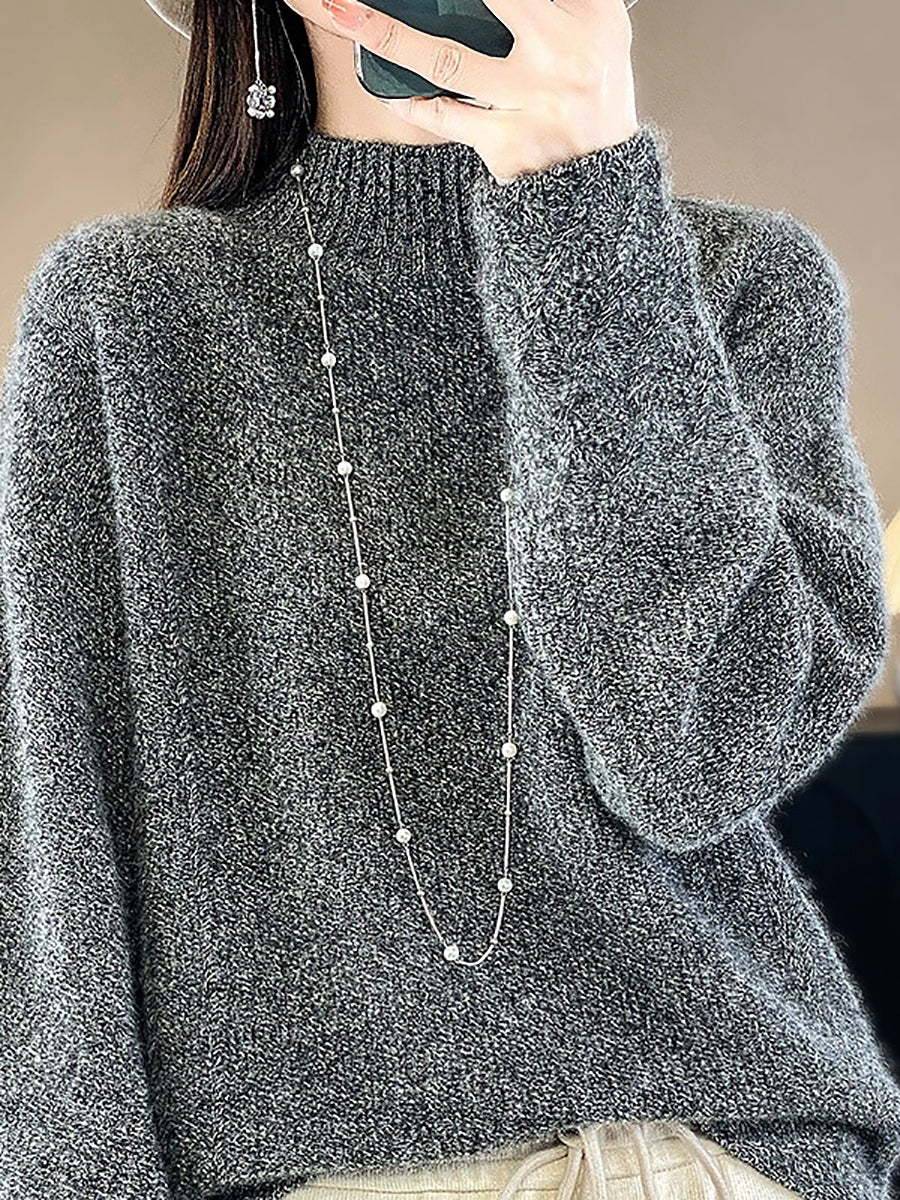 Women Autumn Artsy Pure Color Wool Half-Turtleneck Sweater
