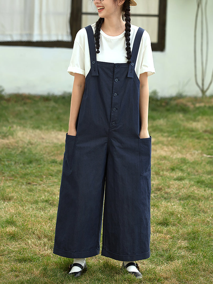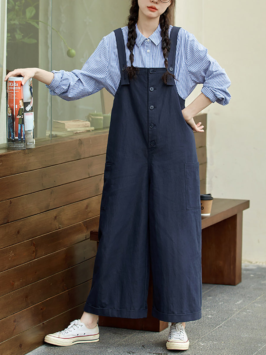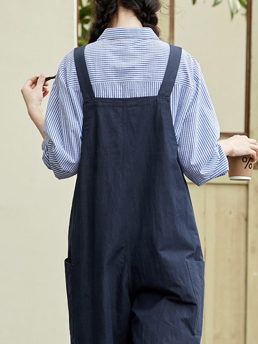 Women Casual Spring Pure Color Cotton Jumpsuits