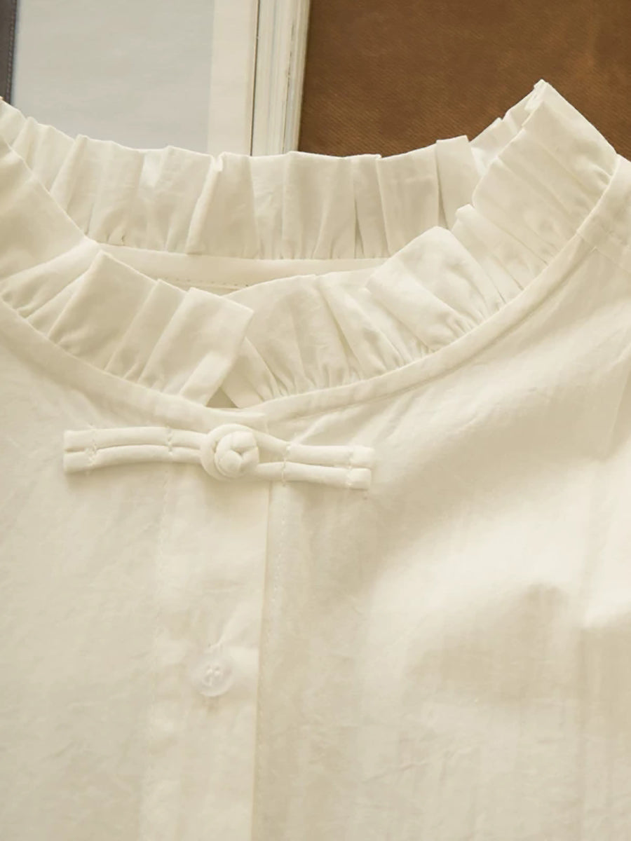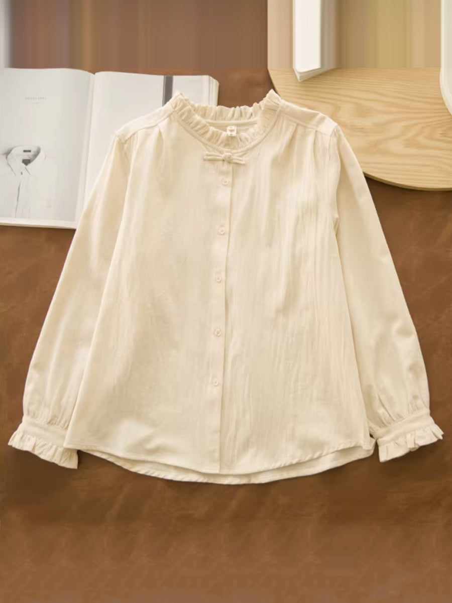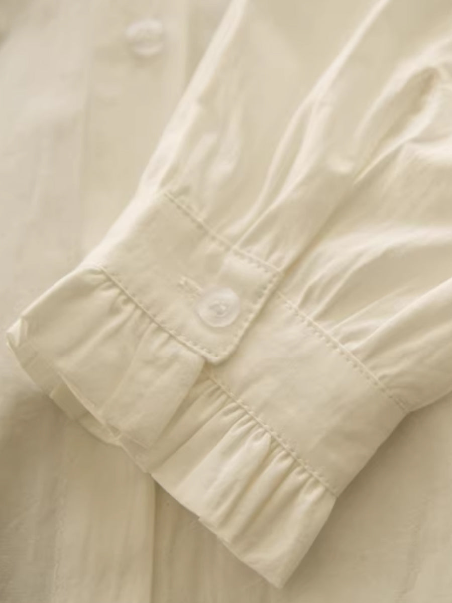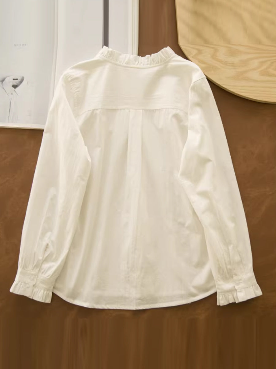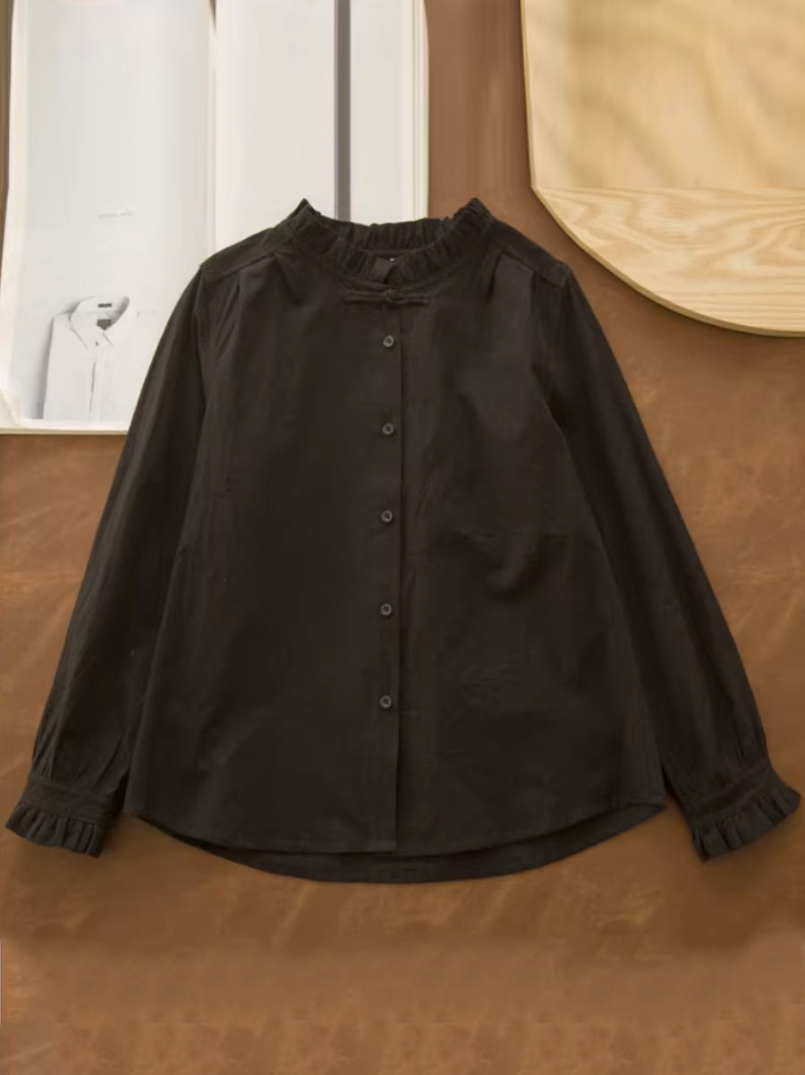 Women Artsy Spring Pure Color Lace Collar Shirt