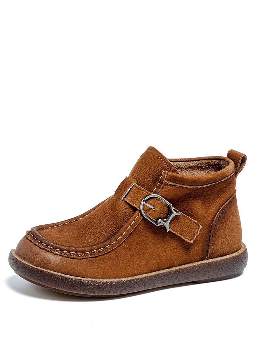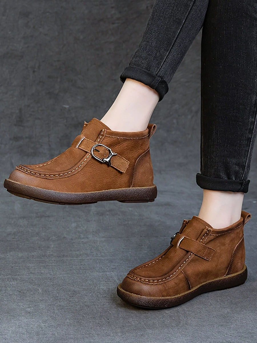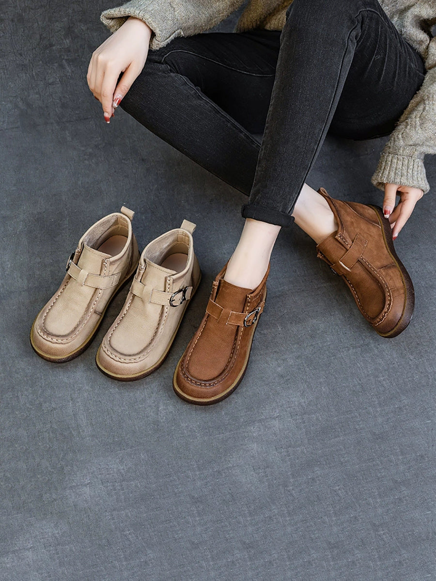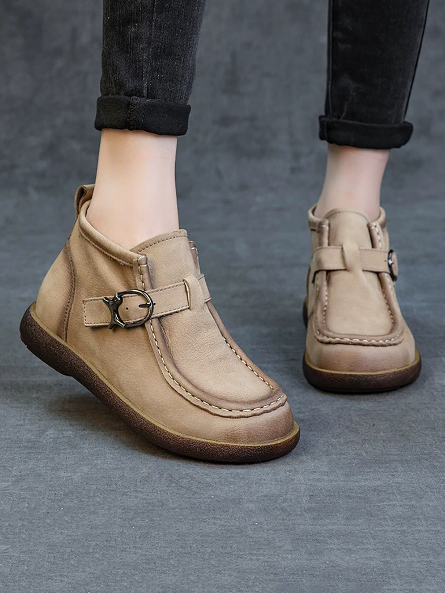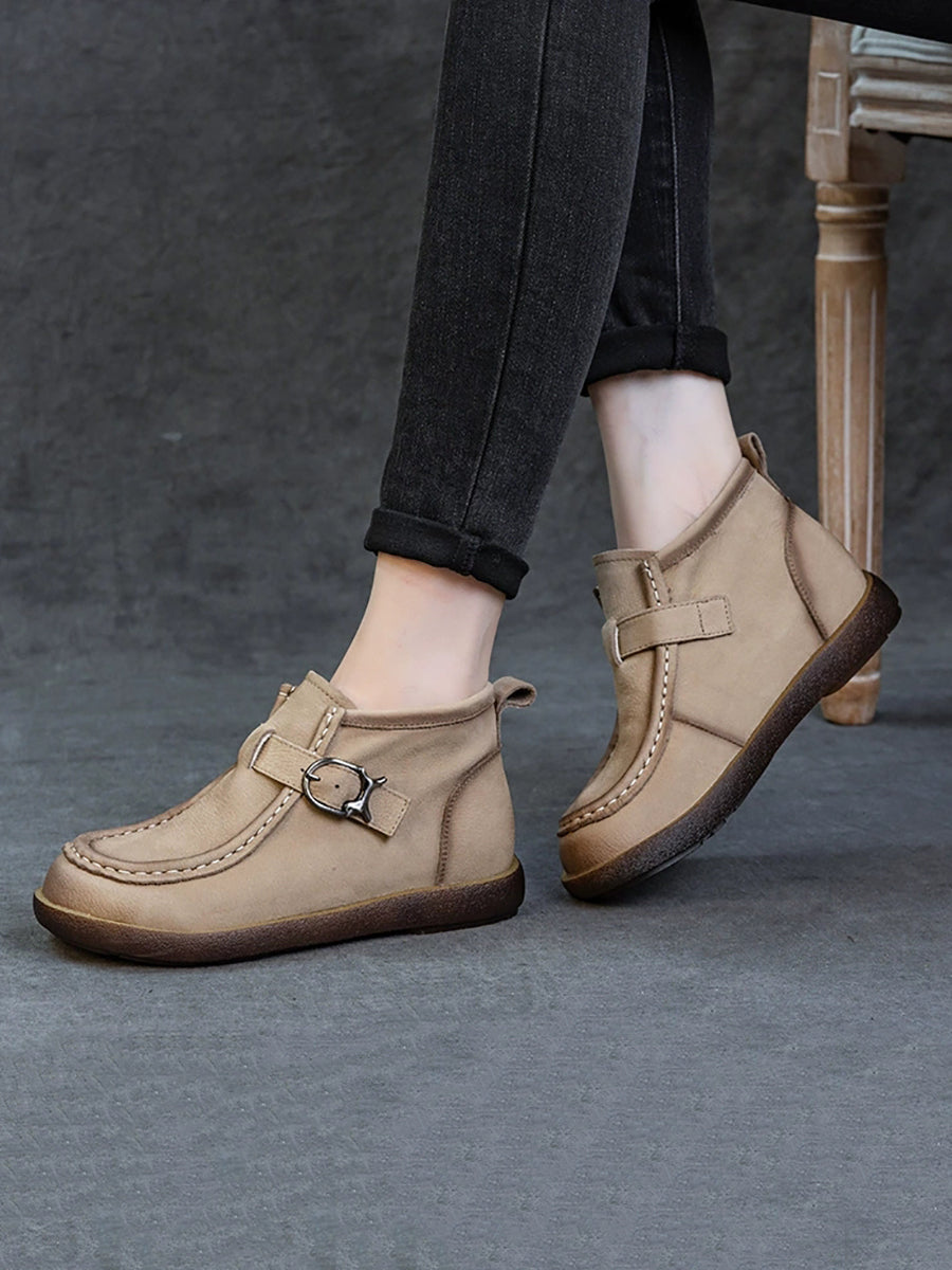 Women Spring Genuine Leather Flat Ankle Boots