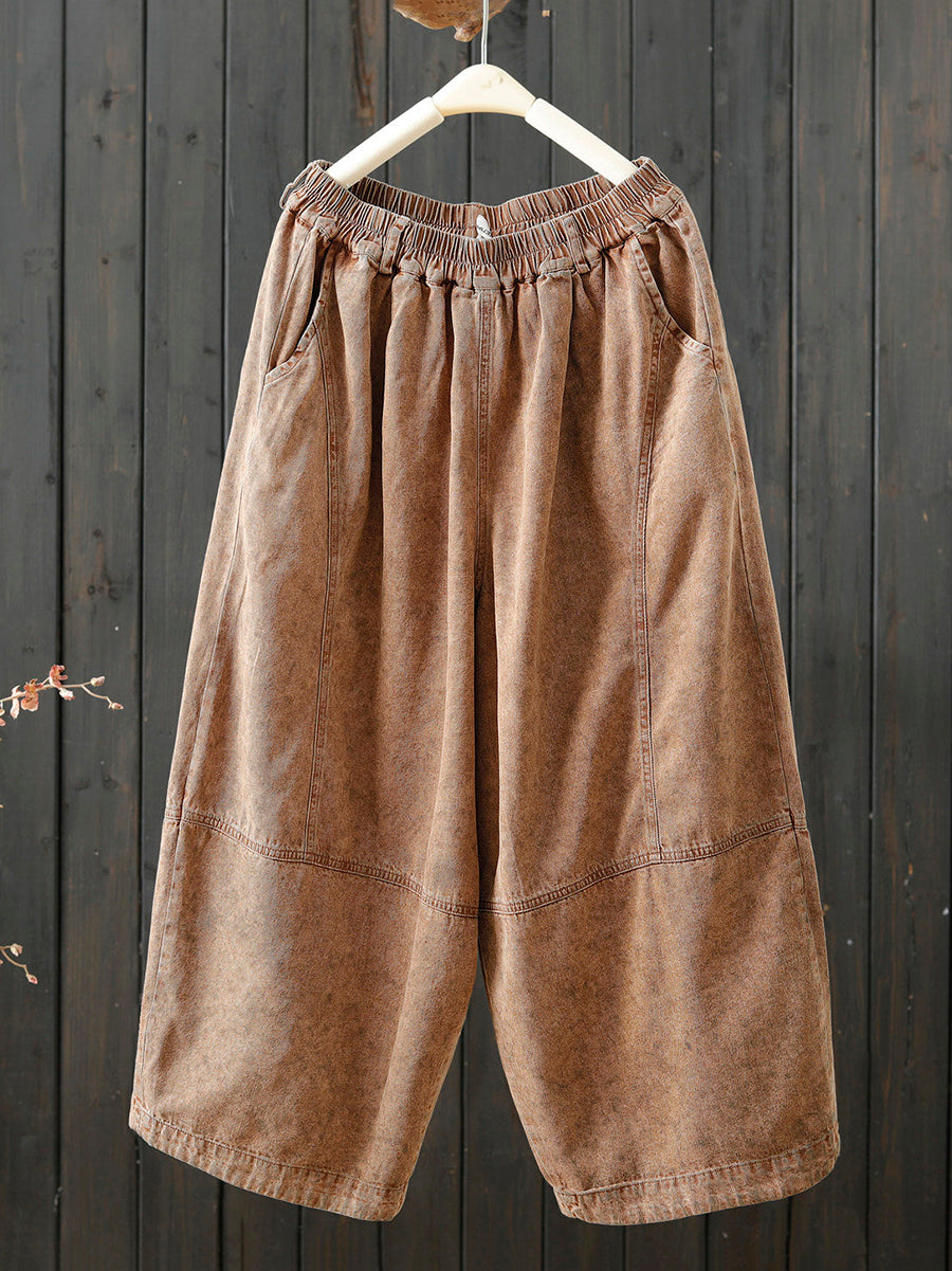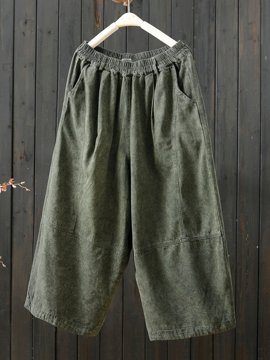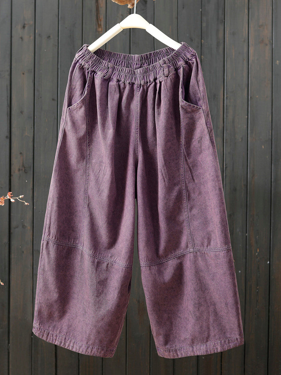Women Spring Retro Pure Color Wide-leg Pants