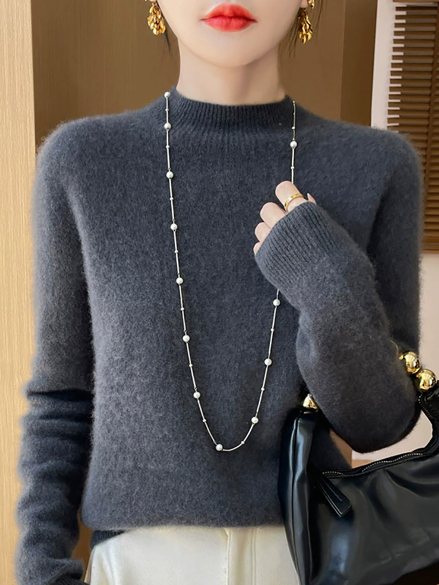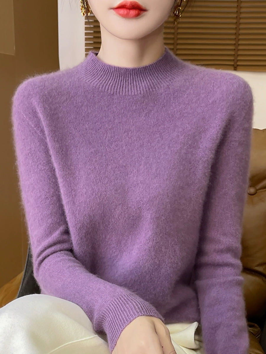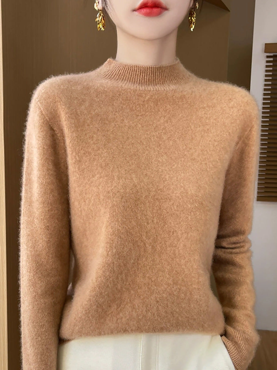 Women Artsy Spring Pure Color Half-turtleneck Sweater