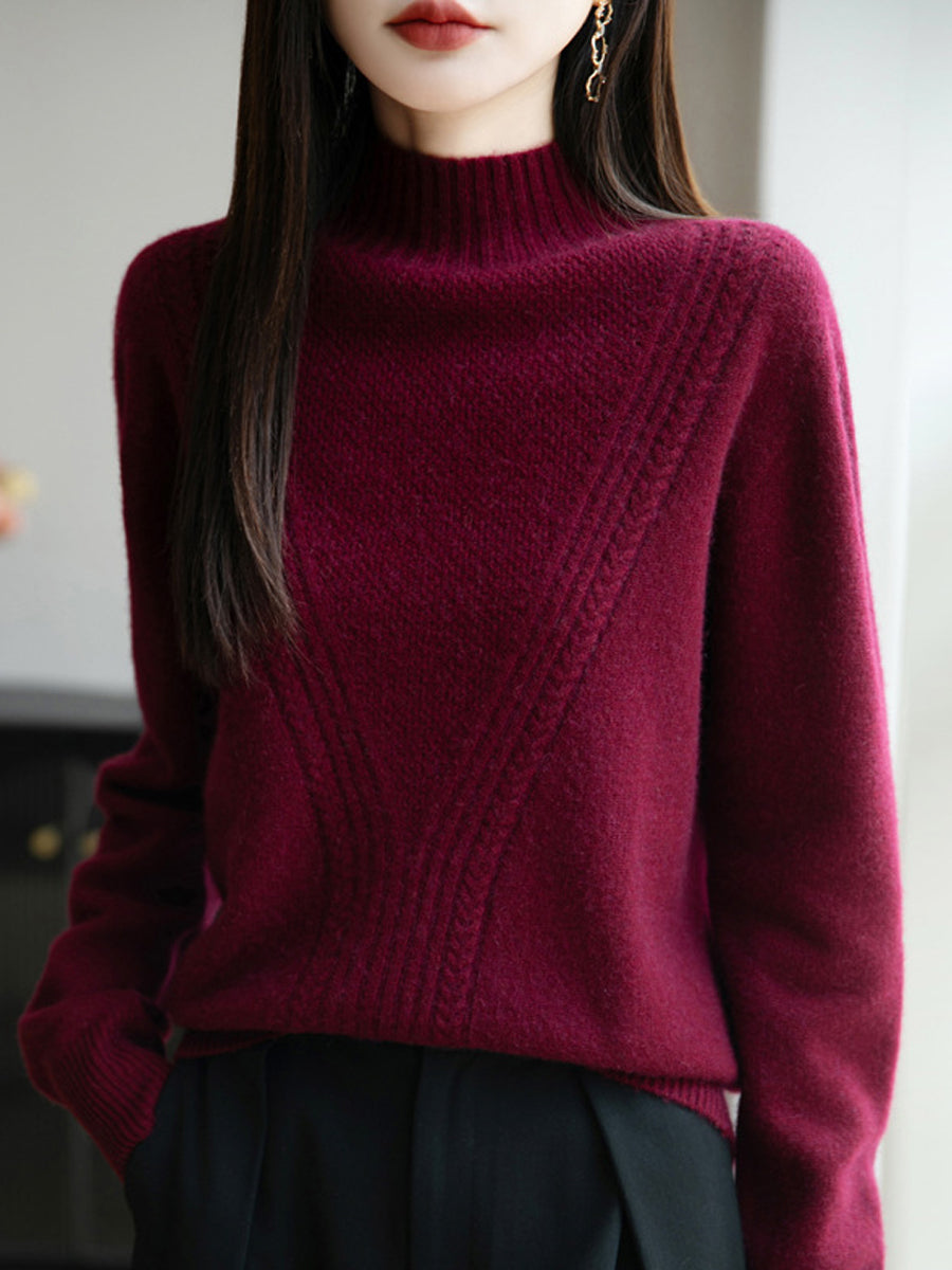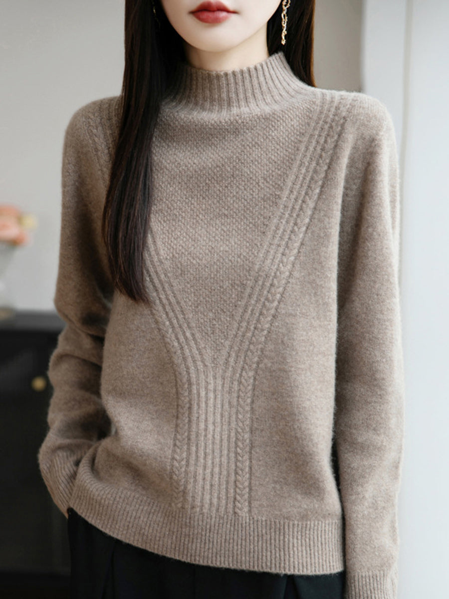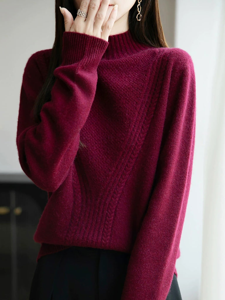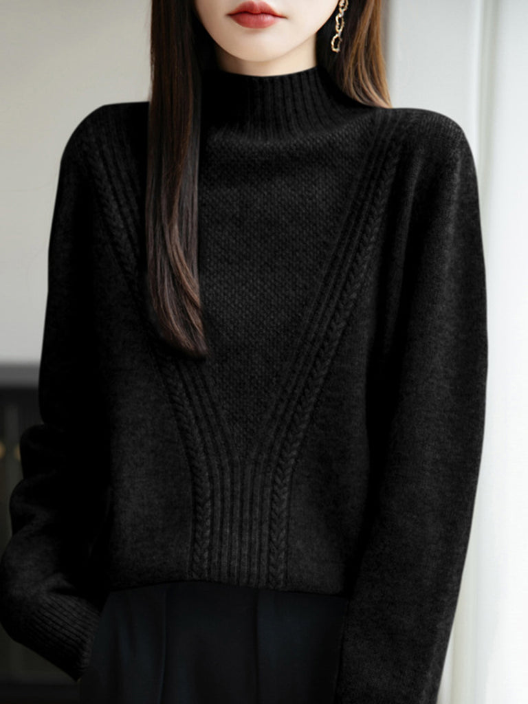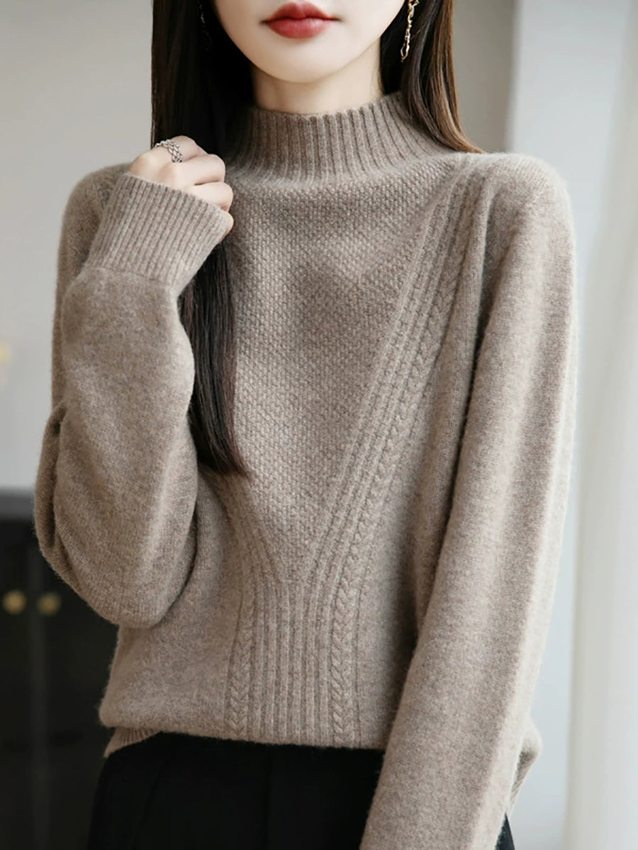 Women Winter Pure Color Half-Turtleneck Sweater