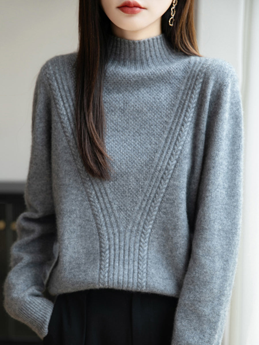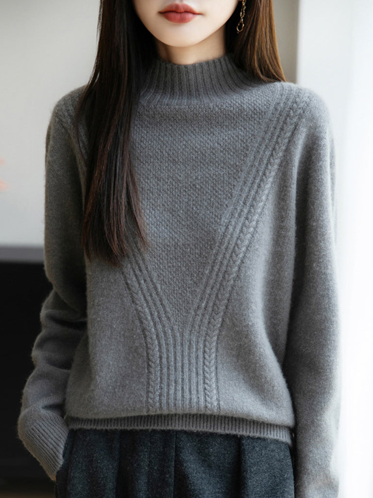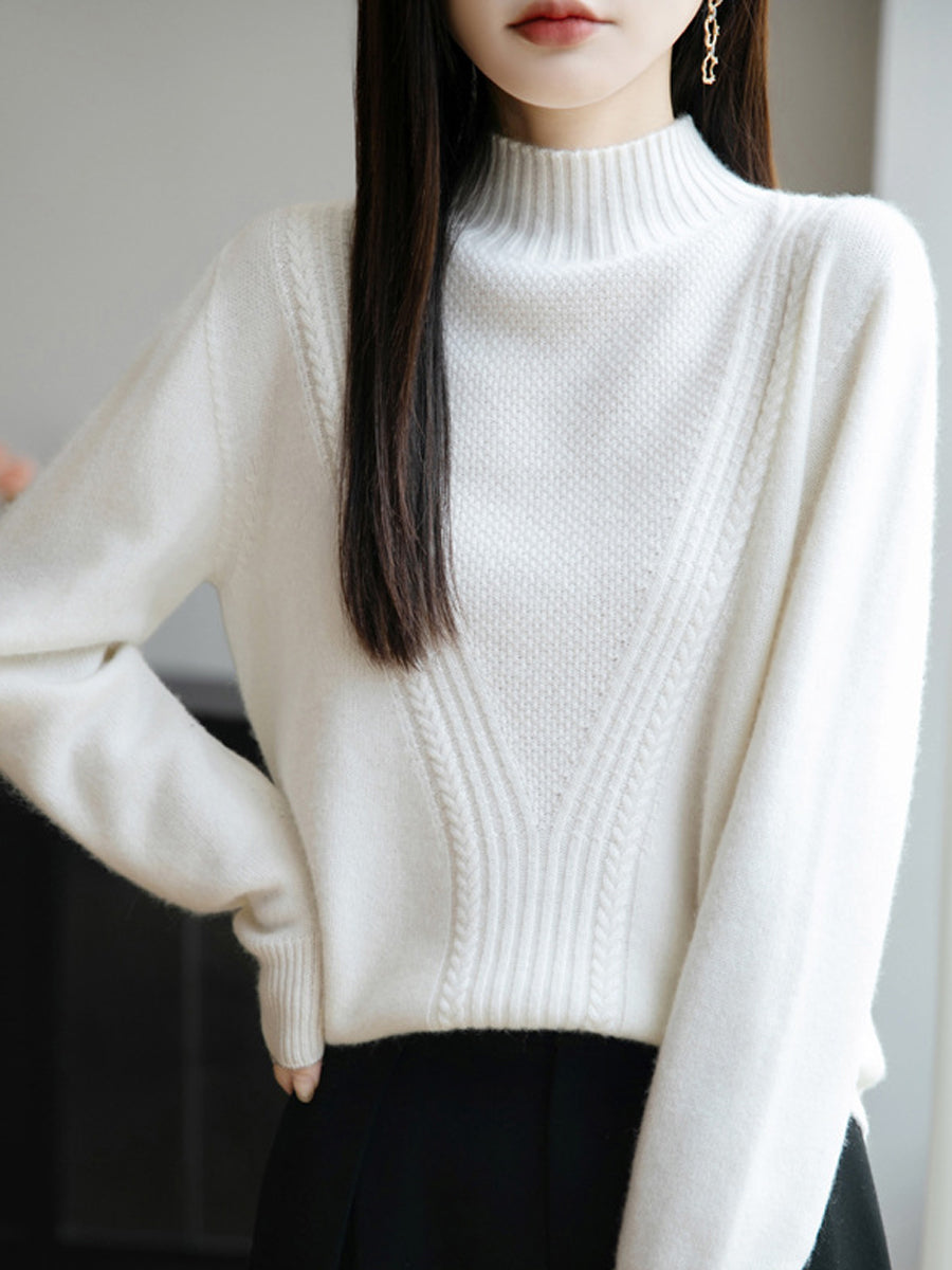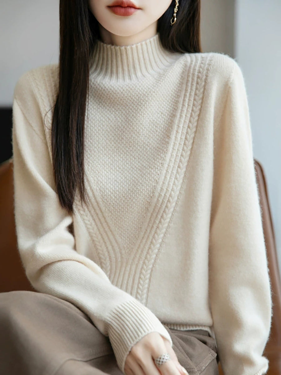 Women Winter Pure Color Half-Turtleneck Sweater