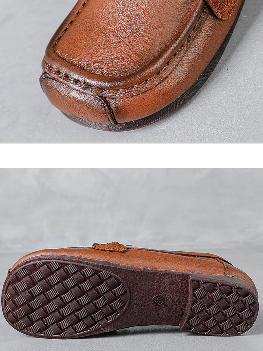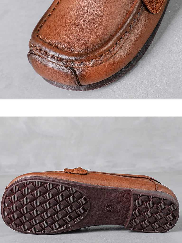 Women Retro Soft Leather Spliced Low Heel Shoes