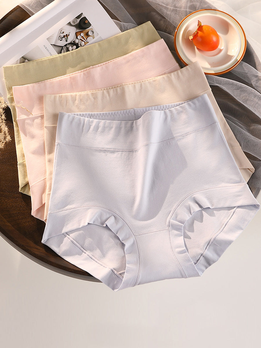 4 Pieces Women Pure Color High Waist Underwear