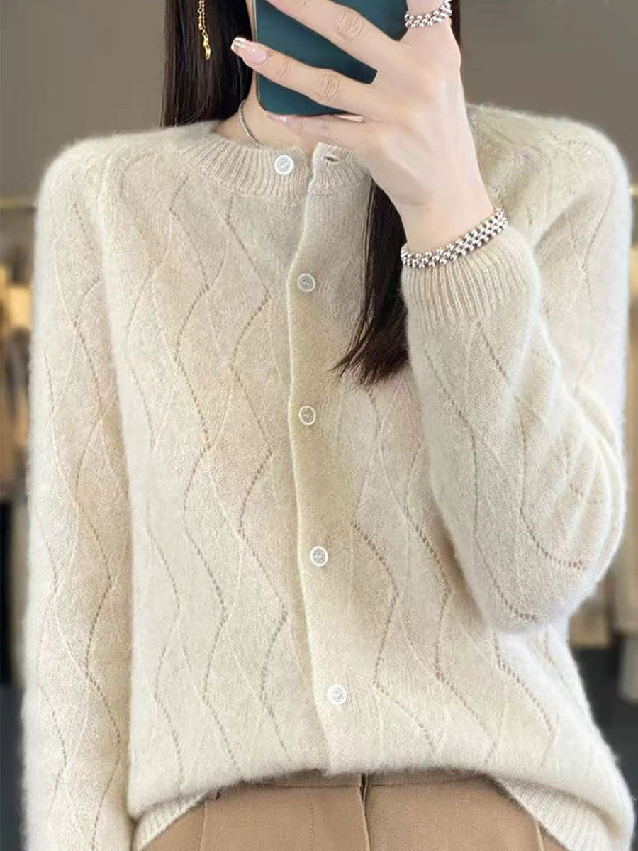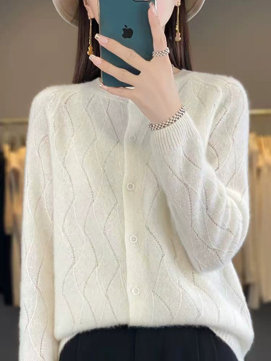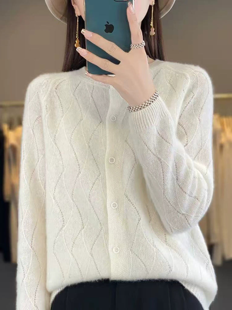 Women Winter Pure Color Knitted O-Neck Cardigan Sweater