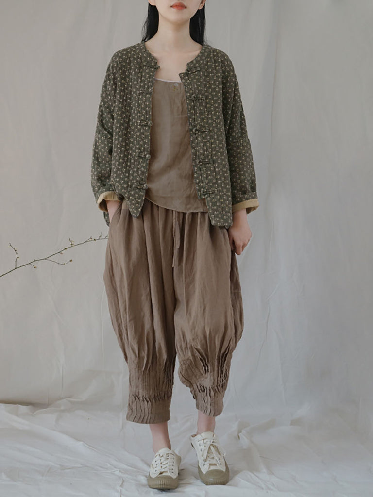 Plus Size Women Ethnic Autumn Floral Button-up Cotton Coat